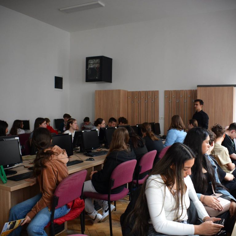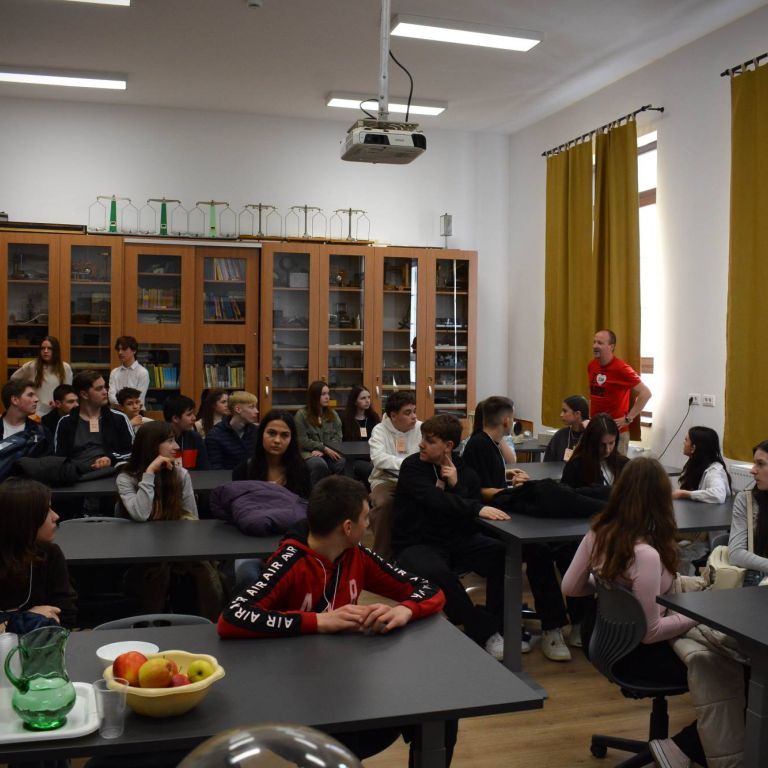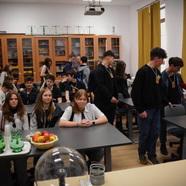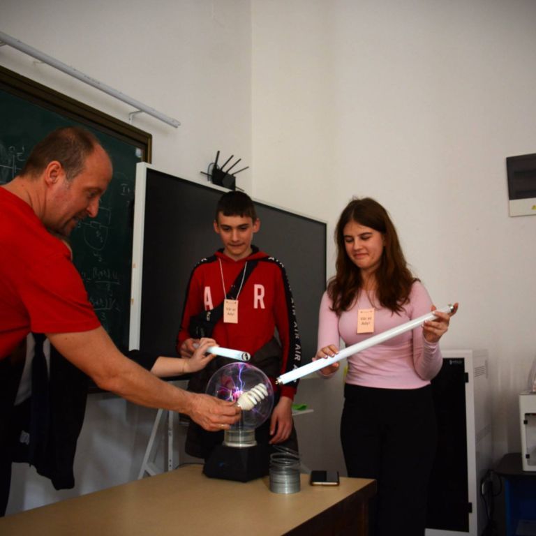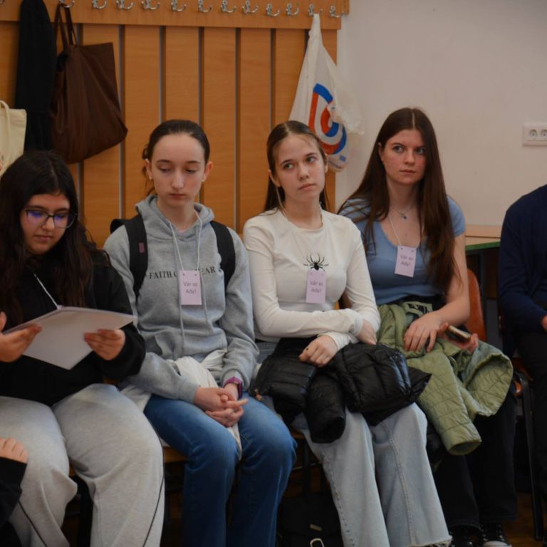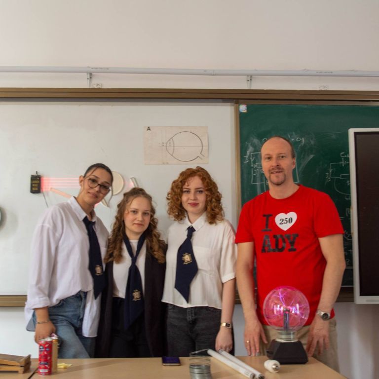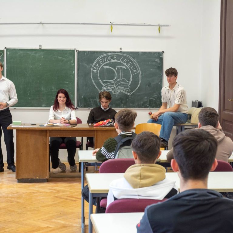 2025. március 14-én rendeztük meg az Ady Endre Elméleti Líceum Nyílt Napját, melyre Nagyvárad iskoláiból és Bihar megye több településéről 325 nyolcadik osztályos diák érkezett. A diákokat Vad Márta igazgató asszony köszöntötte, majd iskolánk tánccsoportjának előadását tekintették meg. Ezt követően kisebb csoportokban a felújított osztálytermeket, a könyvtárat és a szaktermeket látogatták meg, ahol különböző foglalkozásokon vehettek részt. A kémia és fizika laboratóriumban érdekes kísérleteket végezhettek, a nyelvlaborban az iskolában elsajátítható idegennyelv- oktatásról, illetve cserediák- programokról kaphattak információkat. A rajzteremben diákjaink különböző technikákkal készített alkotásait tekinthették meg. A foglalkozások során bepillantást nyertek iskolánk életébe, hogy milyen tevékenységekbe lehet bekapcsolódni. Így bemutatkozott a diáktanács, a zabhegyező animátorok, a vitakör és a színjátszó csoport. Az informatika teremben a robotika világába lehetett bekukkantani, de a suliújság és médiakör csapata is szeretettel várja a leendő kilencedikeseket. Iskolánkban a mozgást kedvelők is megtalálhatják a számukra tetsző mozgásformát, a tornateremben a sportkörökről, illetve tájfutásról hallhattak az érdeklődők. Iskolánk diákjai ismertették a filológia, természettudományok és matematika – informatika szakon való tanulás előnyeit. A pedagógia osztályokban tanuló diákok nagy szeretettel mutatták be, milyen módon készülnek fel a bölcsődés, óvodás és kisiskolás diákok nevelésére. Nagyon színes és élménydús nap volt, és reméljük minél több diáknak keltettük fel az érdeklődését iskolánk iránt. Sok sikert kívánunk a 8. osztályosoknak az előttük álló vizsgákhoz! PS: Nagy szeretettel „Vár az Ady!”