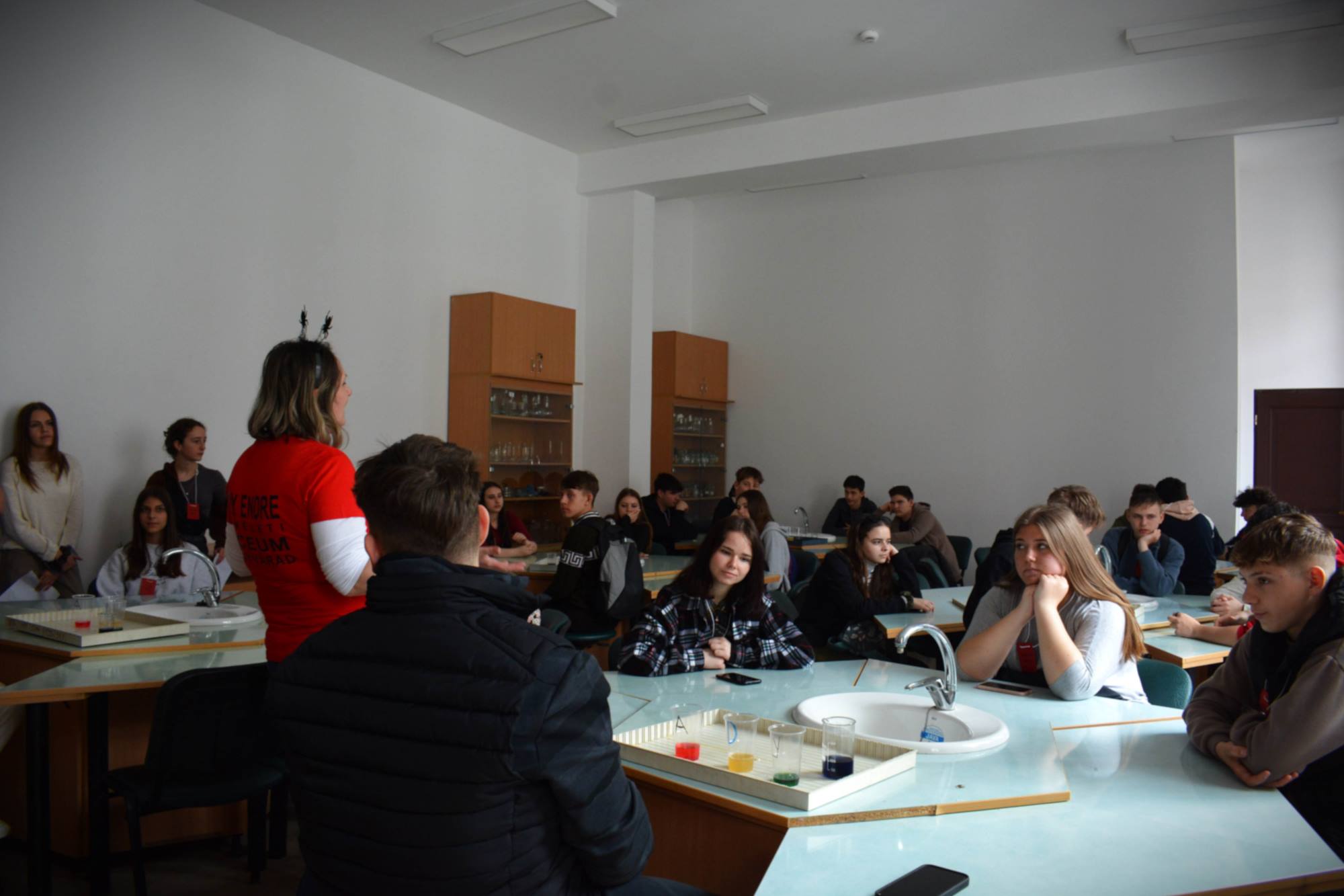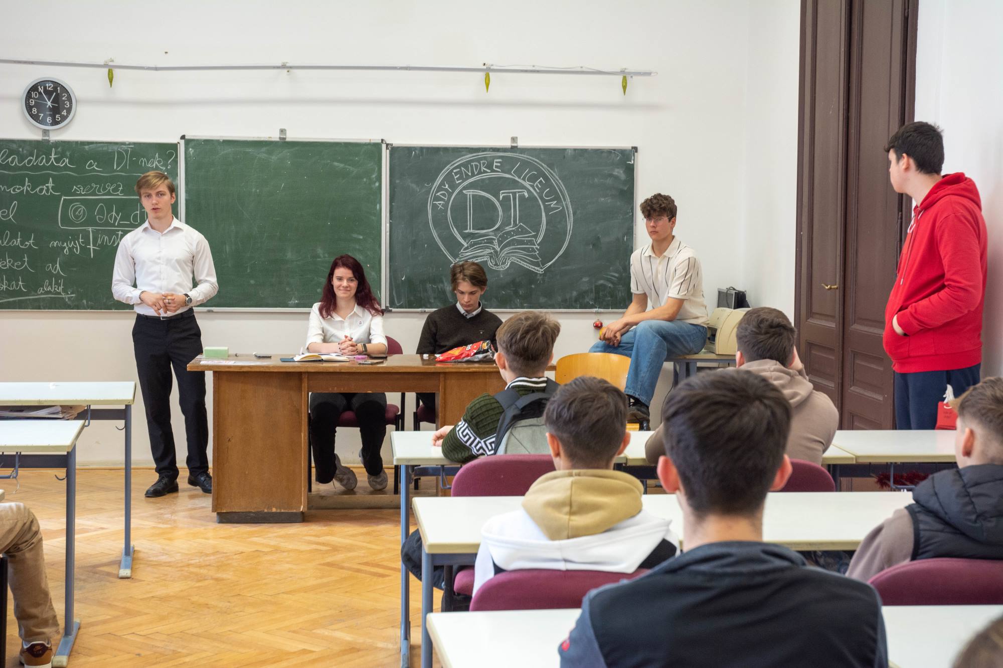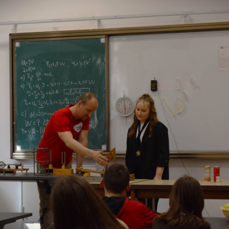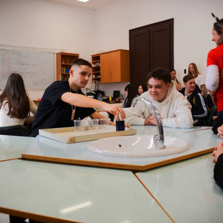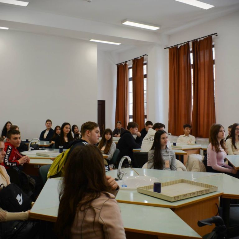 2025. március 14-én rendeztük meg az Ady Endre Elméleti Líceum Nyílt Napját, melyre Nagyvárad iskoláiból és Bihar megye több településéről 325 nyolcadik osztályos diák érkezett. A diákokat Vad Márta igazgató asszony köszöntötte, majd iskolánk tánccsoportjának előadását tekintették meg. Ezt követően kisebb csoportokban a felújított osztálytermeket, a könyvtárat és a szaktermeket látogatták meg, ahol különböző foglalkozásokon vehettek részt. A kémia és fizika laboratóriumban érdekes kísérleteket végezhettek, a nyelvlaborban az iskolában elsajátítható idegennyelv- oktatásról, illetve cserediák- programokról kaphattak információkat. A rajzteremben diákjaink különböző technikákkal készített alkotásait tekinthették meg. A foglalkozások során bepillantást nyertek iskolánk életébe, hogy milyen tevékenységekbe lehet bekapcsolódni. Így bemutatkozott a diáktanács, a zabhegyező animátorok, a vitakör és a színjátszó csoport. Az informatika teremben a robotika világába lehetett bekukkantani, de a suliújság és médiakör csapata is szeretettel várja a leendő kilencedikeseket. Iskolánkban a mozgást kedvelők is megtalálhatják a számukra tetsző mozgásformát, a tornateremben a sportkörökről, illetve tájfutásról hallhattak az érdeklődők. Iskolánk diákjai ismertették a filológia, természettudományok és matematika – informatika szakon való tanulás előnyeit. A pedagógia osztályokban tanuló diákok nagy szeretettel mutatták be, milyen módon készülnek fel a bölcsődés, óvodás és kisiskolás diákok nevelésére. Nagyon színes és élménydús nap volt, és reméljük minél több diáknak keltettük fel az érdeklődését iskolánk iránt. Sok sikert kívánunk a 8. osztályosoknak az előttük álló vizsgákhoz! PS: Nagy szeretettel „Vár az Ady!”