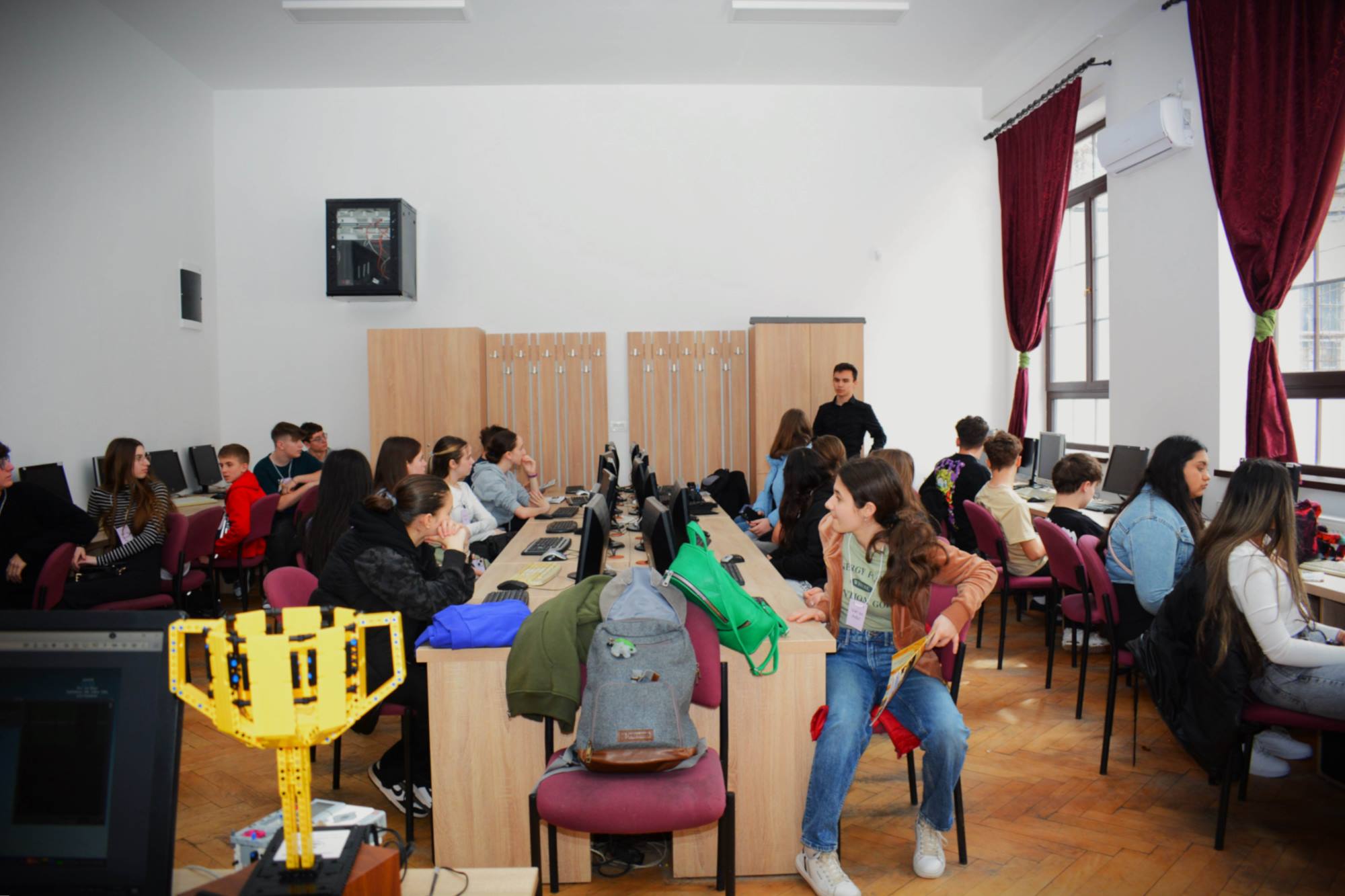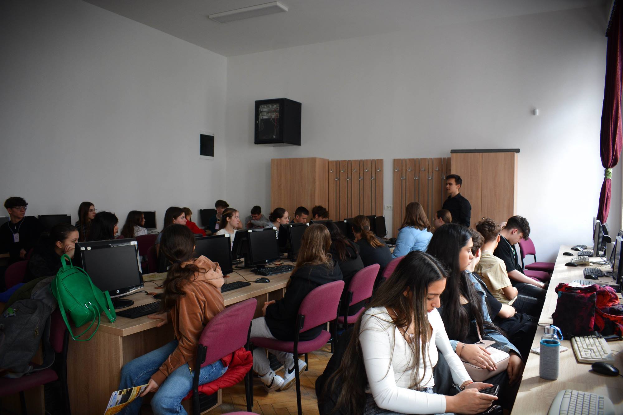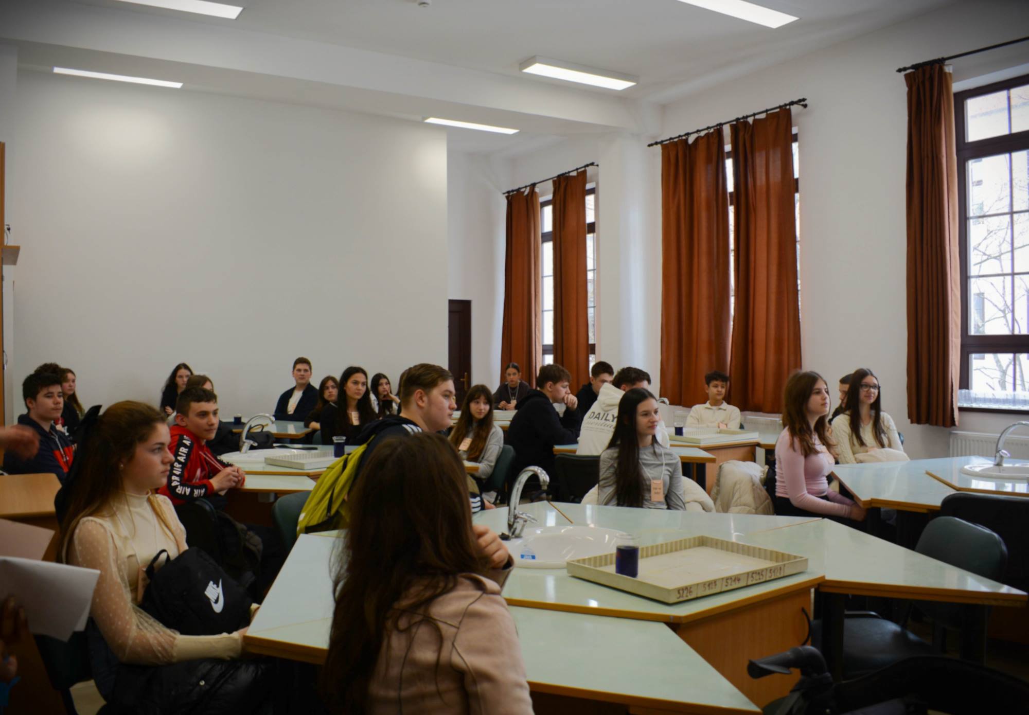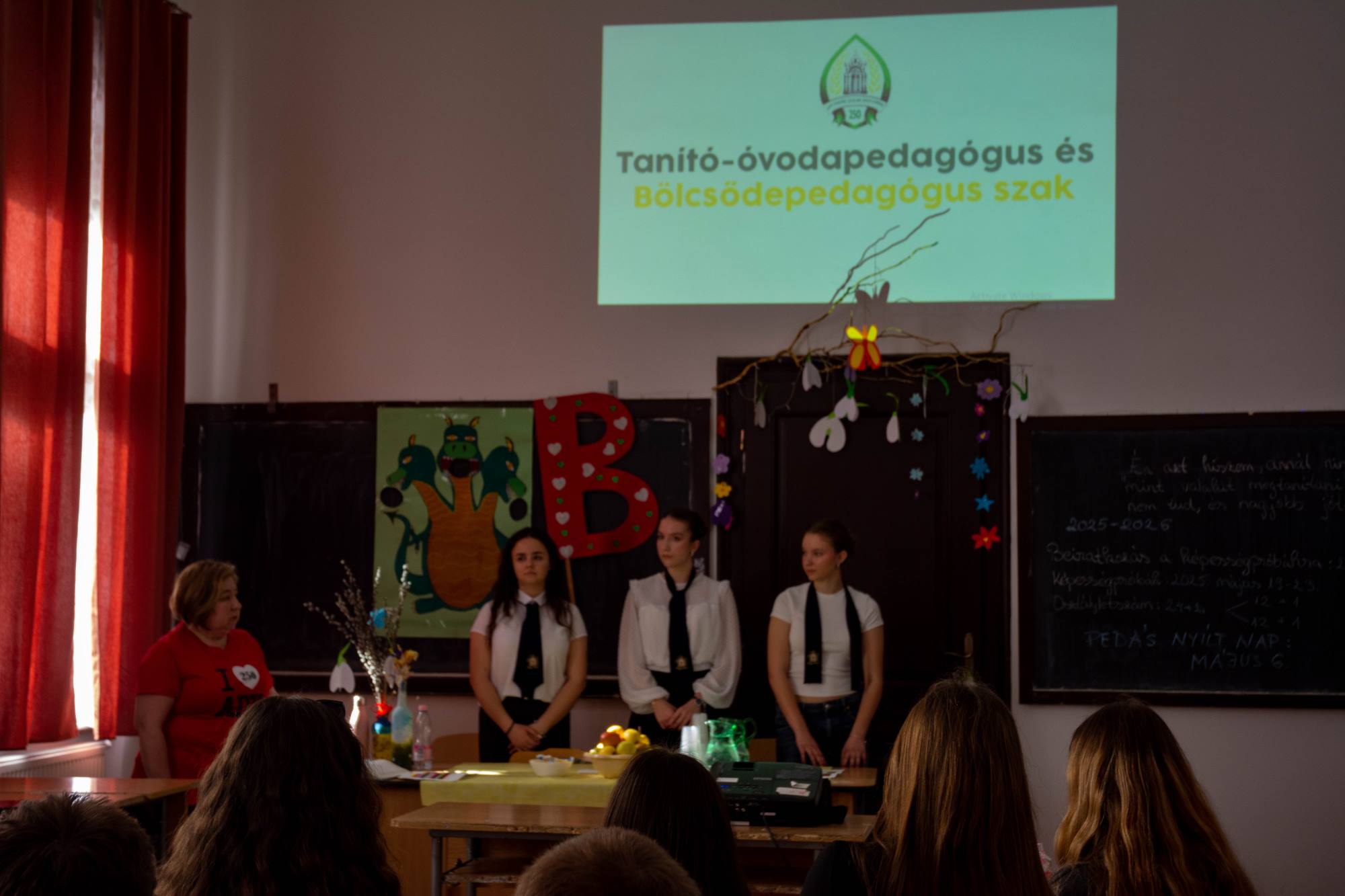 2025. március 14-én rendeztük meg az Ady Endre Elméleti Líceum Nyílt Napját, melyre Nagyvárad iskoláiból és Bihar megye több településéről 325 nyolcadik osztályos diák érkezett. A diákokat Vad Márta igazgató asszony köszöntötte, majd iskolánk tánccsoportjának előadását tekintették meg. Ezt követően kisebb csoportokban a felújított osztálytermeket, a könyvtárat és a szaktermeket látogatták meg, ahol különböző foglalkozásokon vehettek részt. A kémia és fizika laboratóriumban érdekes kísérleteket végezhettek, a nyelvlaborban az iskolában elsajátítható idegennyelv- oktatásról, illetve cserediák- programokról kaphattak információkat. A rajzteremben diákjaink különböző technikákkal készített alkotásait tekinthették meg. A foglalkozások során bepillantást nyertek iskolánk életébe, hogy milyen tevékenységekbe lehet bekapcsolódni. Így bemutatkozott a diáktanács, a zabhegyező animátorok, a vitakör és a színjátszó csoport. Az informatika teremben a robotika világába lehetett bekukkantani, de a suliújság és médiakör csapata is szeretettel várja a leendő kilencedikeseket. Iskolánkban a mozgást kedvelők is megtalálhatják a számukra tetsző mozgásformát, a tornateremben a sportkörökről, illetve tájfutásról hallhattak az érdeklődők. Iskolánk diákjai ismertették a filológia, természettudományok és matematika – informatika szakon való tanulás előnyeit. A pedagógia osztályokban tanuló diákok nagy szeretettel mutatták be, milyen módon készülnek fel a bölcsődés, óvodás és kisiskolás diákok nevelésére. Nagyon színes és élménydús nap volt, és reméljük minél több diáknak keltettük fel az érdeklődését iskolánk iránt. Sok sikert kívánunk a 8. osztályosoknak az előttük álló vizsgákhoz! PS: Nagy szeretettel „Vár az Ady!”