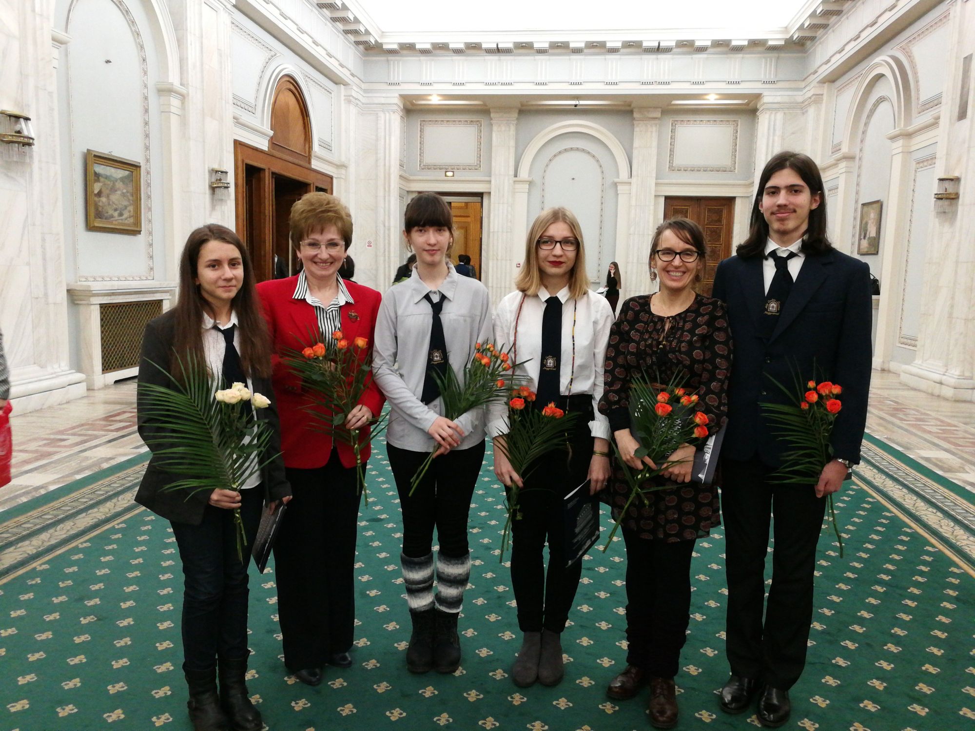 Bukarestben a díjak átadását megelőzően Bíró Rozália képviselő asszony és csapata fogadta a Bihar megyei csapatot finom uzsonnával és ebéddel, valamint egy különleges ajándékkal: körbevezettek bennünket a parlament épületében. A díjátadón azt a 89 iskolát is jutalmazták, amelyek a diákokat felkészülésükben és sikereikben támogatták, bátorították.