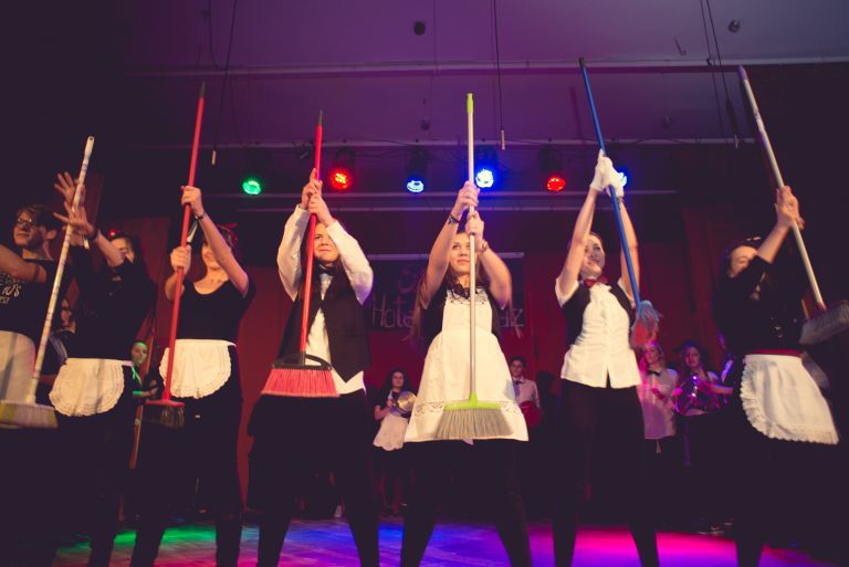 Január 28-án a díszterem adott otthont, a 12.B osztály „B”űnözők című maturandusz műsorának.