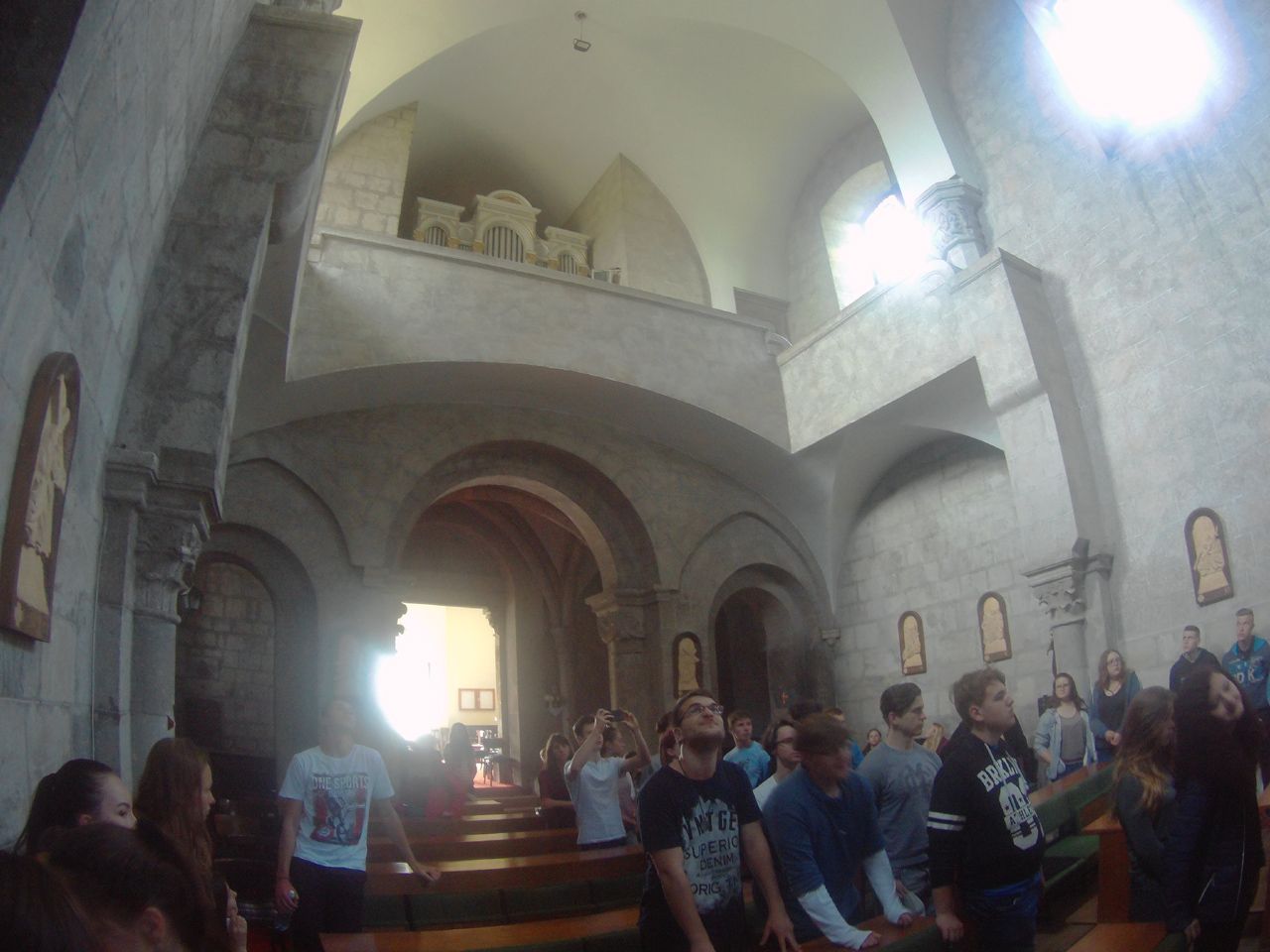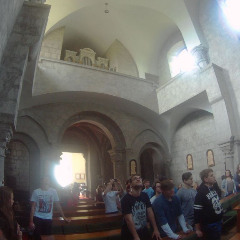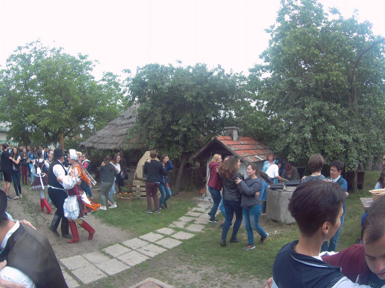 A „séta” első állomása az ipolyszalkai tájház volt. Itt a diákok megismerkedhettek a jellegzetes kéméndi népviselettel, készíthettek kemencébe sült lepényt. A hagyományos kézműves foglalkozások mellett a helyi néptáccsoport tartott bemutatót, amibe valamennyi résztvevő bekapcsolódhatot. Az Ipoly mente után Bény település következett, ami az államalapítás idején István hadainak a gyűlekező helye volt a Koppánnyal vívott csata előtt. Itt a diákok megtekintették a X-XI.sz-ból fennmaradt bényi rotundát, körtemplomot, valamint a XIII.sz-ban épült kéttornyú premontrei templomot. Ezután következett a Kis-Duna egyik holtága mellett található Gúta település. Itt a malommúzeumként működő hajómalmot néztük meg, amit egy 86m hosszú, fából ácsolt cölöpökön álló, fedett fahídon lehetett megközelíteni. A híd Európa leghosszabb, 86m hosszú fahídja. A nap utolsó látnivalója a deáki kéttornyú, 1228-ban épített román stílusú templom volt, Szlovákia legrégibb műemléke. Az itteni bencés rendi szerzetesek használták a Pray Kódexként ismert XIII. századi latin szertartáskönyvet, amelyben a Halotti beszéd, legkorábbi összefüggő magyar nyelvemlékünk is található. Az első nap Udvardon zárult, ahol, miután elfoglaltuk a szállást a helyi kollégiumban, megnéztük a Szomszédaink, a magyarok című filmet.