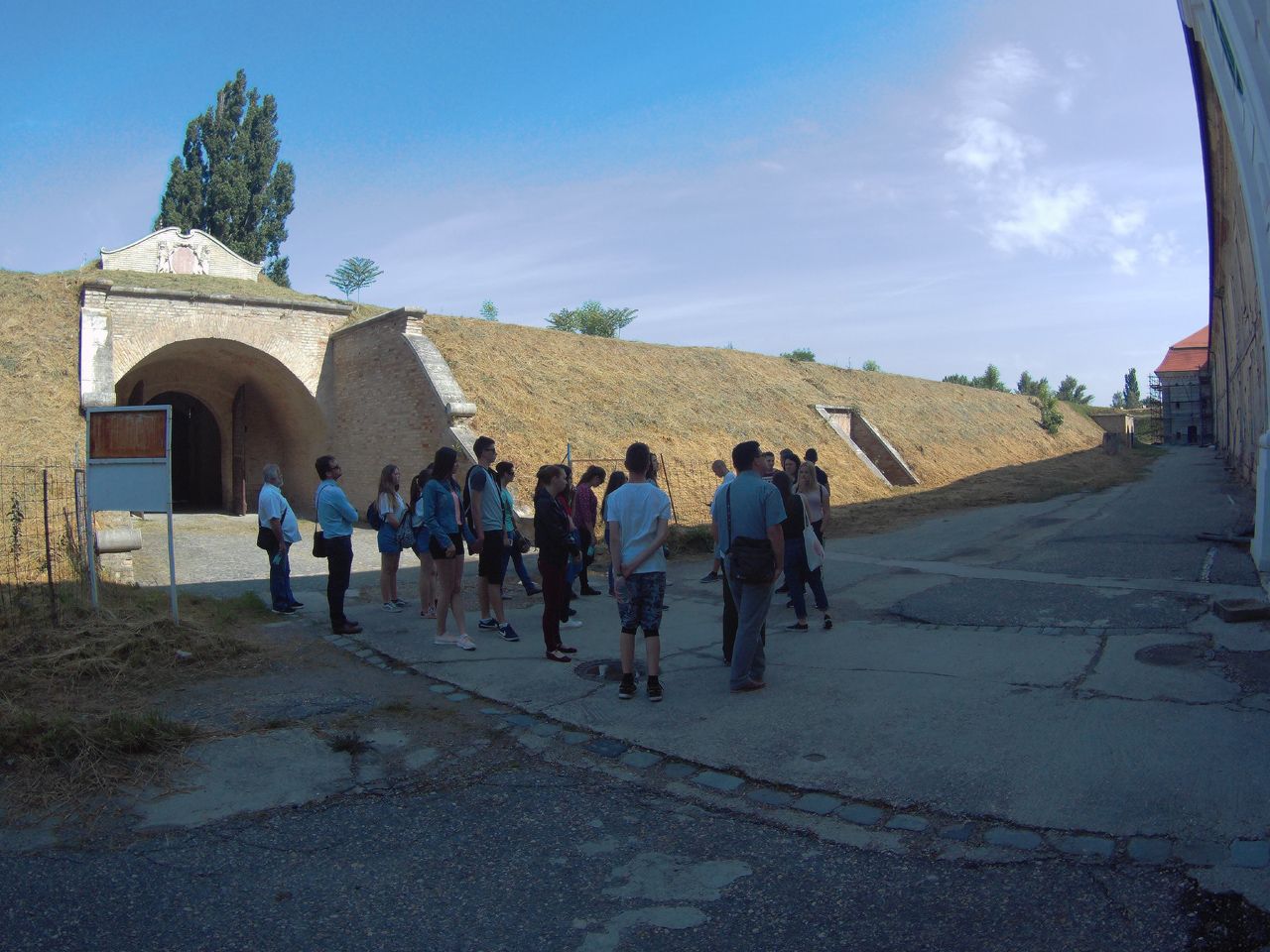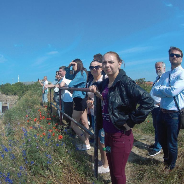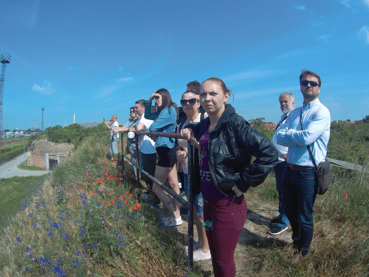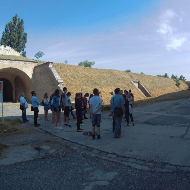 Vasárnap reggel az Udvardon található Kitelepítettek emlékművénél Hunyadi Péter, a kirándulás idegenvezetője tartott érdekes előadást. Elég lehangoló volt hallani, hogy milyen sötét korszakai is vannak a történelemnek. Budapest felé megálltunk Révkomáromnál, ahol végigjártuk az egész erődrendszert. Megnéztük az Európai udvart, majd a város két jeles személyiségének, Klapka Györgynek és Jókai Mórnak a szobrait koszorúztuk meg.
