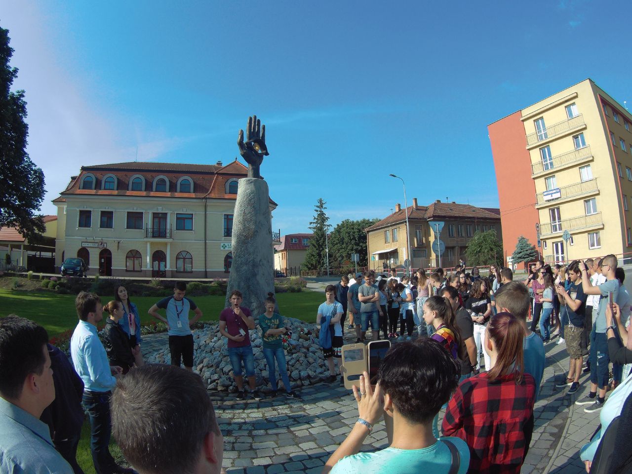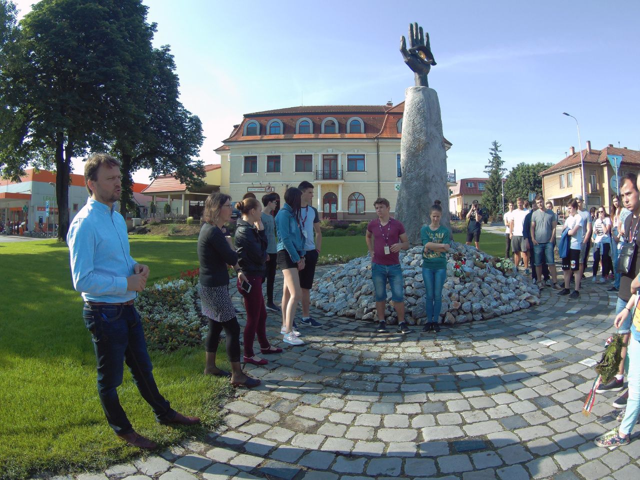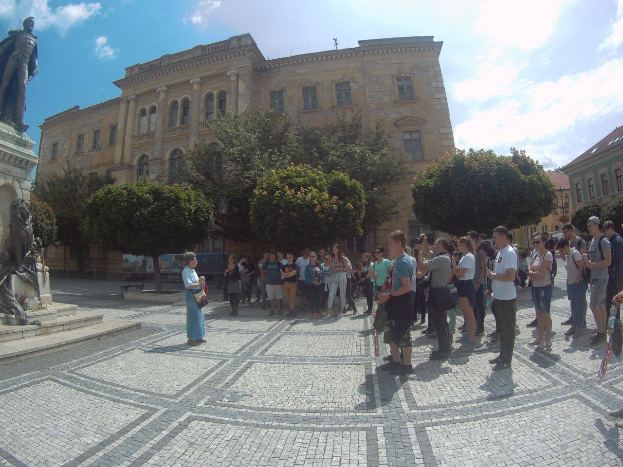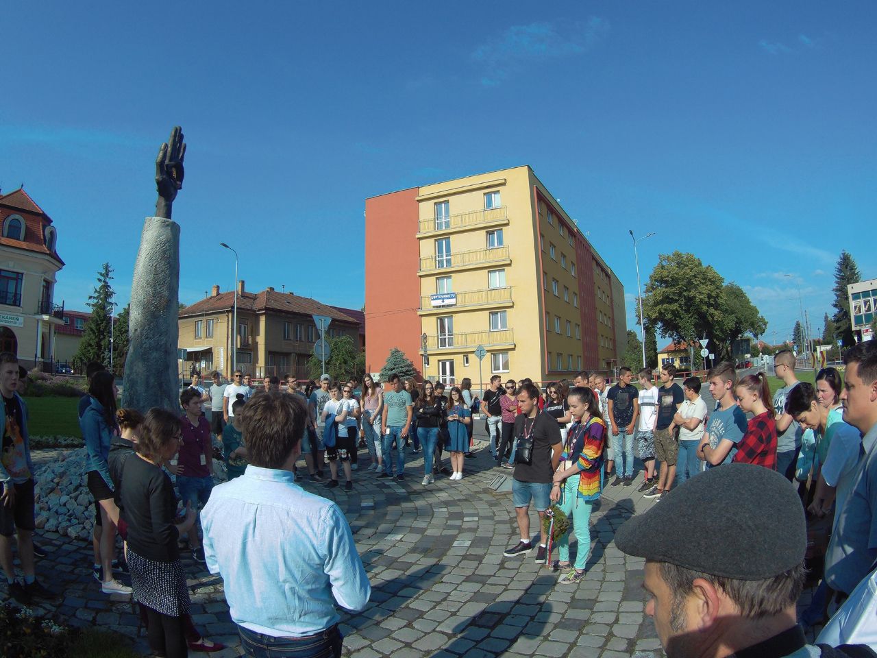 Vasárnap reggel az Udvardon található Kitelepítettek emlékművénél Hunyadi Péter, a kirándulás idegenvezetője tartott érdekes előadást. Elég lehangoló volt hallani, hogy milyen sötét korszakai is vannak a történelemnek. Budapest felé megálltunk Révkomáromnál, ahol végigjártuk az egész erődrendszert. Megnéztük az Európai udvart, majd a város két jeles személyiségének, Klapka Györgynek és Jókai Mórnak a szobrait koszorúztuk meg.