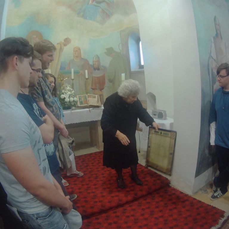 Második nap ellátogattunk Alsódobokra, ahol Eszterházy János , felvidéki magyar mártír politikus életútjával ismerkedtünk meg. A Szent Kereszt Felmagasztalása kápolnában közösen megkoszorúztuk a tragikus sorsú magyar államférfi sírhelyét. A kirándulás Nyitrán folytatódott, ahol a helyi várban lépésről lépésre lehetett végigkövetni a történelmi változásokat Könyves Kálmán korától egészen a Habsburg uralomig. A vár megúszta a várrombolást, és napjainkban püspöki székhelyként szolgál. A helyi református lelkész bemutatta a nyitrai református templom kalandos történetét, építésétől egészen napjainkig. Nyitrától nem messze emelkednek a csitári hegyek, ahol Kodály Zoltán népdalgyűjtő és zeneszerző gyűjtötte és tette világszerte népszerűvé A csitári hegyek alatt című népdalt. A helyi lakosok nagyon kedvesen fogadtak bennünket. Csitártól már szabad szemmel is látható volt az egyik hegytetőn a gímesi várrom. Nem gondoltuk volna, de közel egy óra alatt felkapaszkodtunk a várromhoz. A pazar tájkép, ami a szemünk előtt elterült, minden fáradságot megért. Udvard felé megálltunk és megkoszorúztuk a vezekényi csata helyszínén épített emlékművet. A napot Udvardon igazi, autentikus táncházzal zártuk.