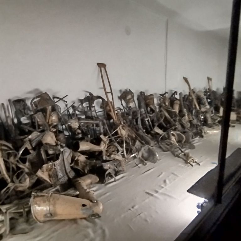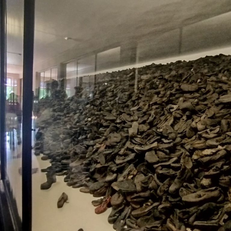 Szomorú, gyászos helyszín ez, hisz itt 1,1 millió embert gázosítottak el, majdnem fél millió magyar zsidót, köztük 3o ezer váradit is megöltek. Megrendülten és szomorúságtól áthatva jártuk végig barakokat, néztük meg a halál falát, a krematóriumot, a gázkamrát, a illem- és tisztálkodóhelyeket, az akasztófa helyét és a sok megrendítő fényképet, a megmaradt emberi hajak, cipők, szemüvegek, bőröndök tömegét. Ennek fényében átértékelődik a saját gondjaink, problémáink, hiányaink nagysága és a szabad élet ajándéka.