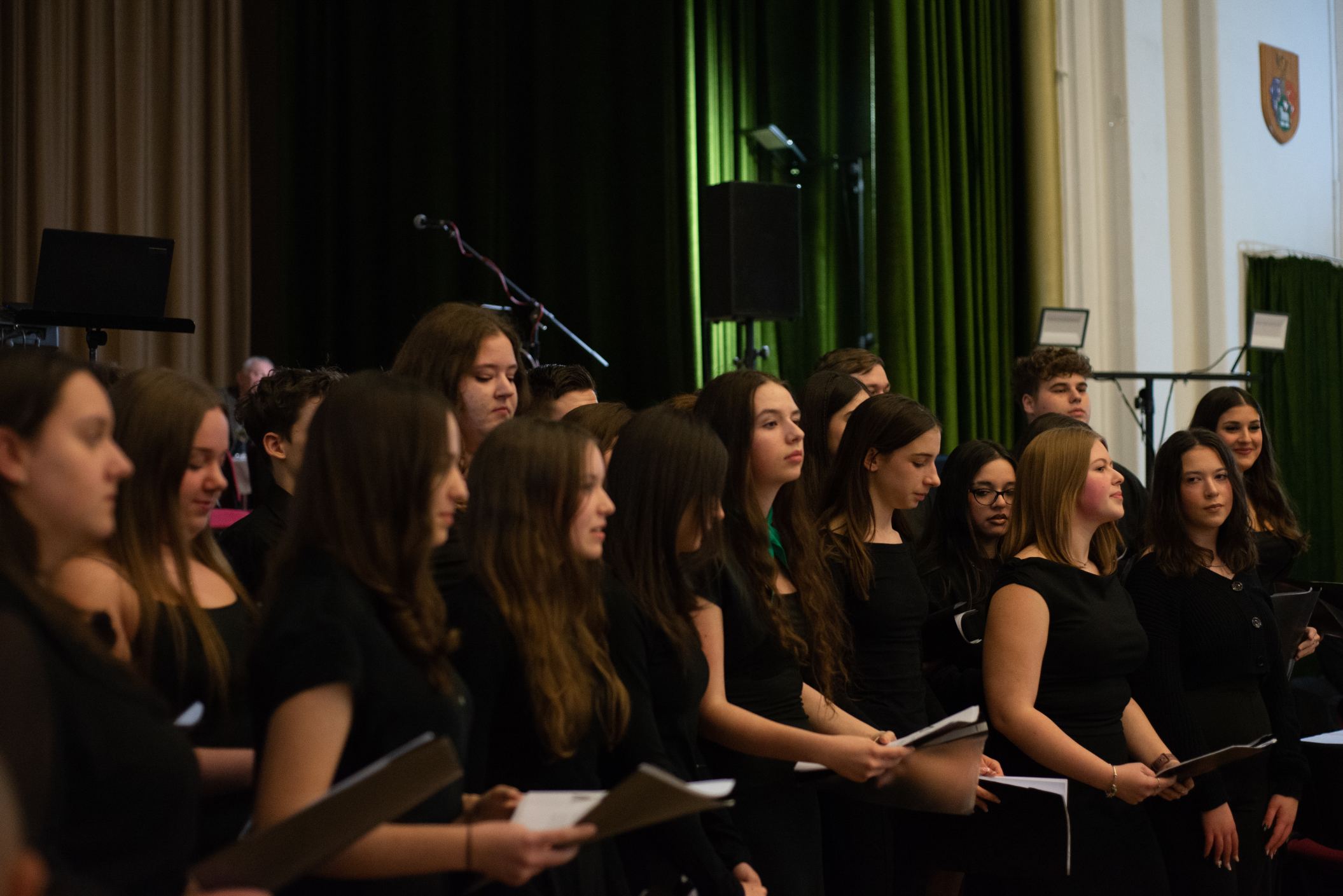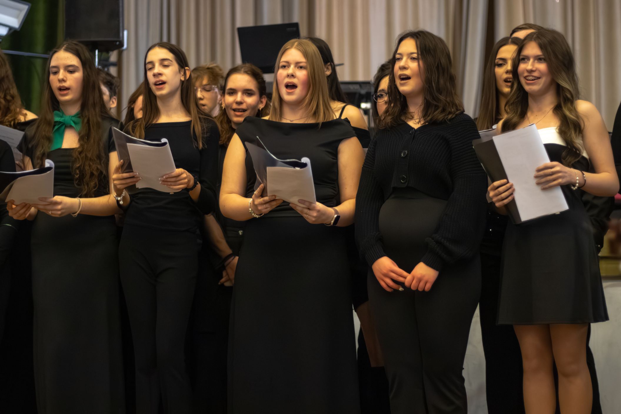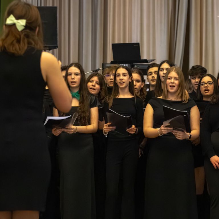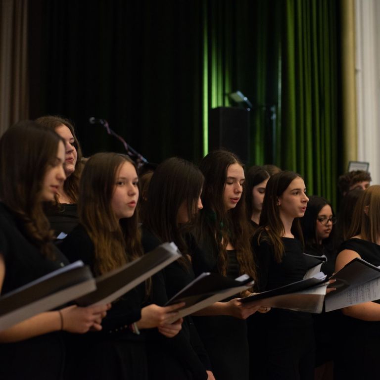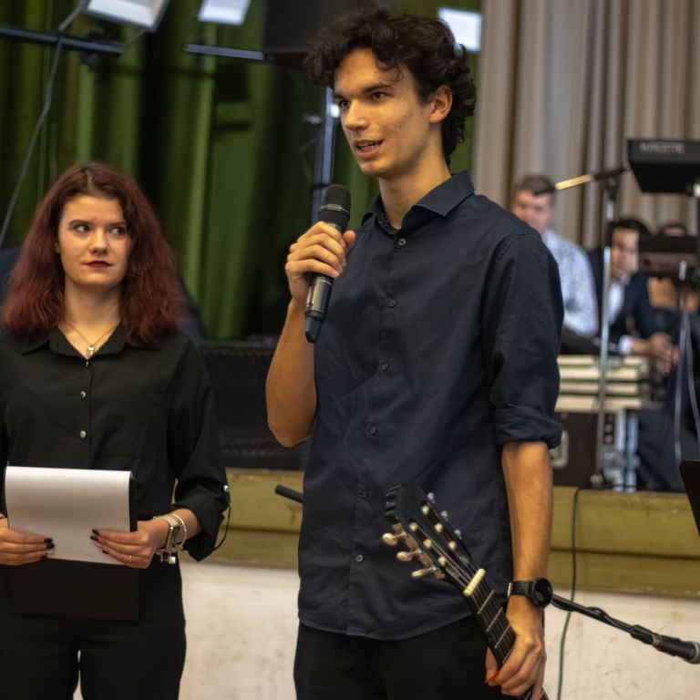 A műsorvezetői feladatokat két diák, Szalai Bernadett Anita és Szekrényes Kristóf Zsolt látta el. Az est hangulatát az iskola kórusa alapozta meg ezután. A Galambos-Szendrei Mónika és Csepregi Imola tanárnők által felkészített fiatalok zsidó énekeket adtak elő.
