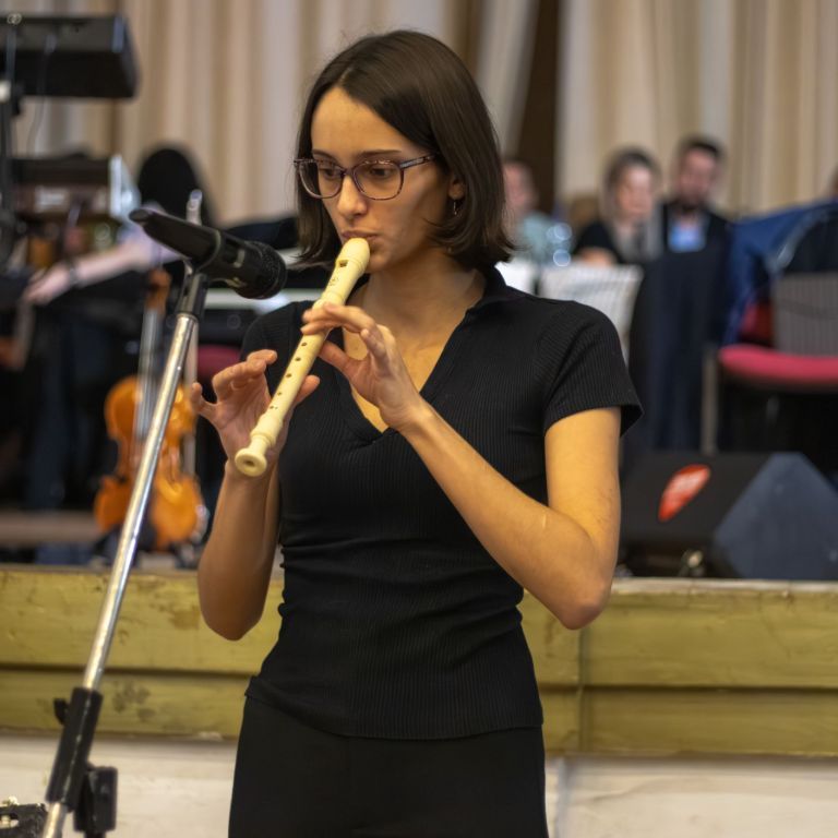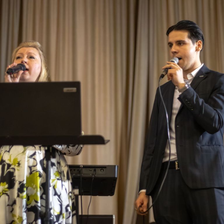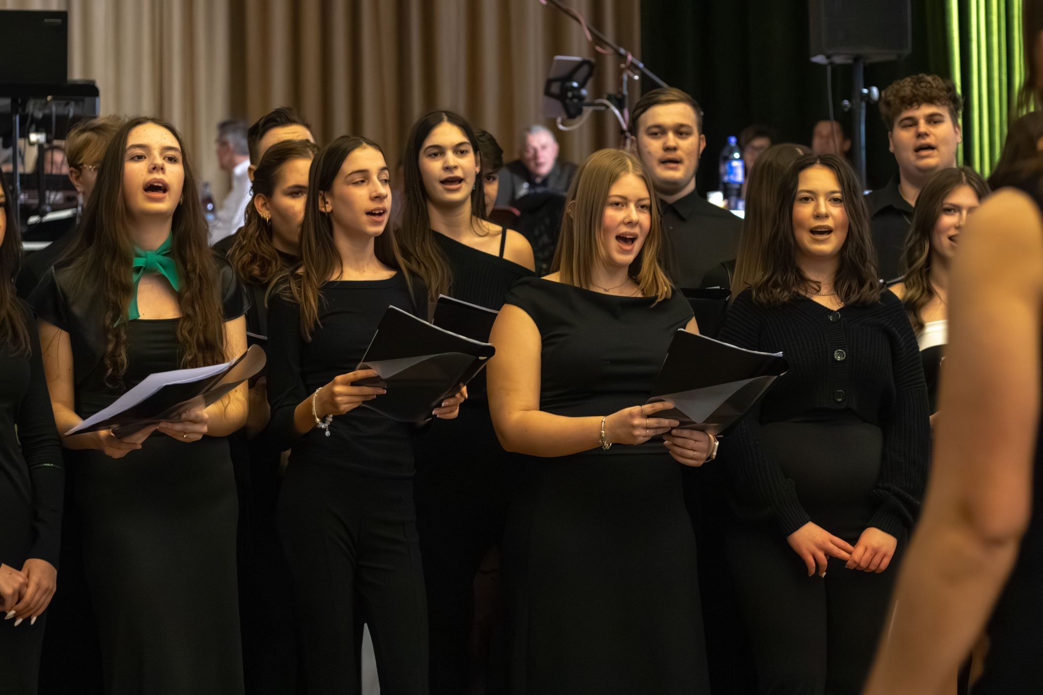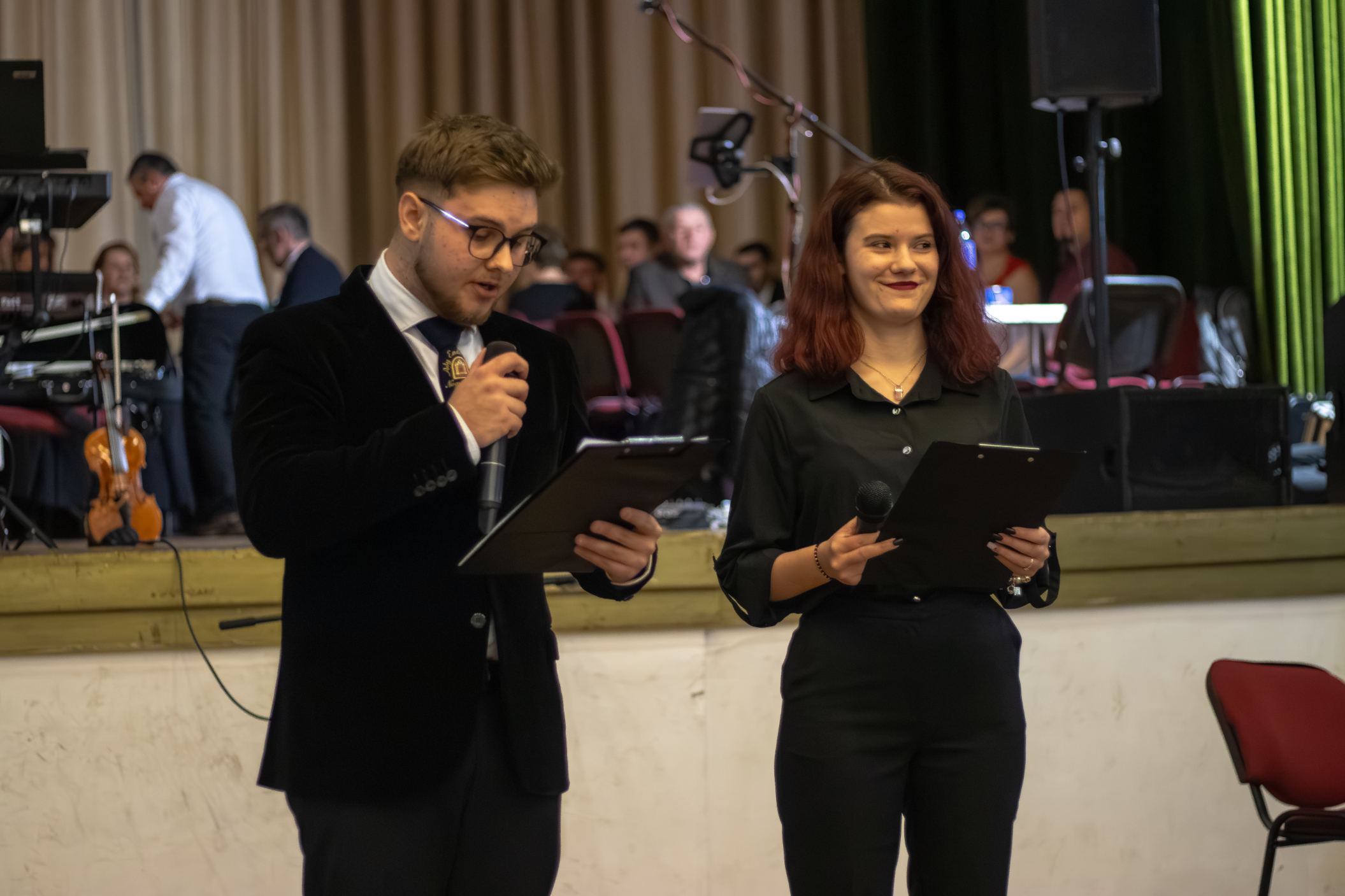 A műsorvezetői feladatokat két diák, Szalai Bernadett Anita és Szekrényes Kristóf Zsolt látta el. Az est hangulatát az iskola kórusa alapozta meg ezután. A Galambos-Szendrei Mónika és Csepregi Imola tanárnők által felkészített fiatalok zsidó énekeket adtak elő.