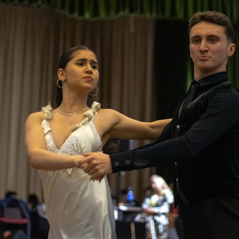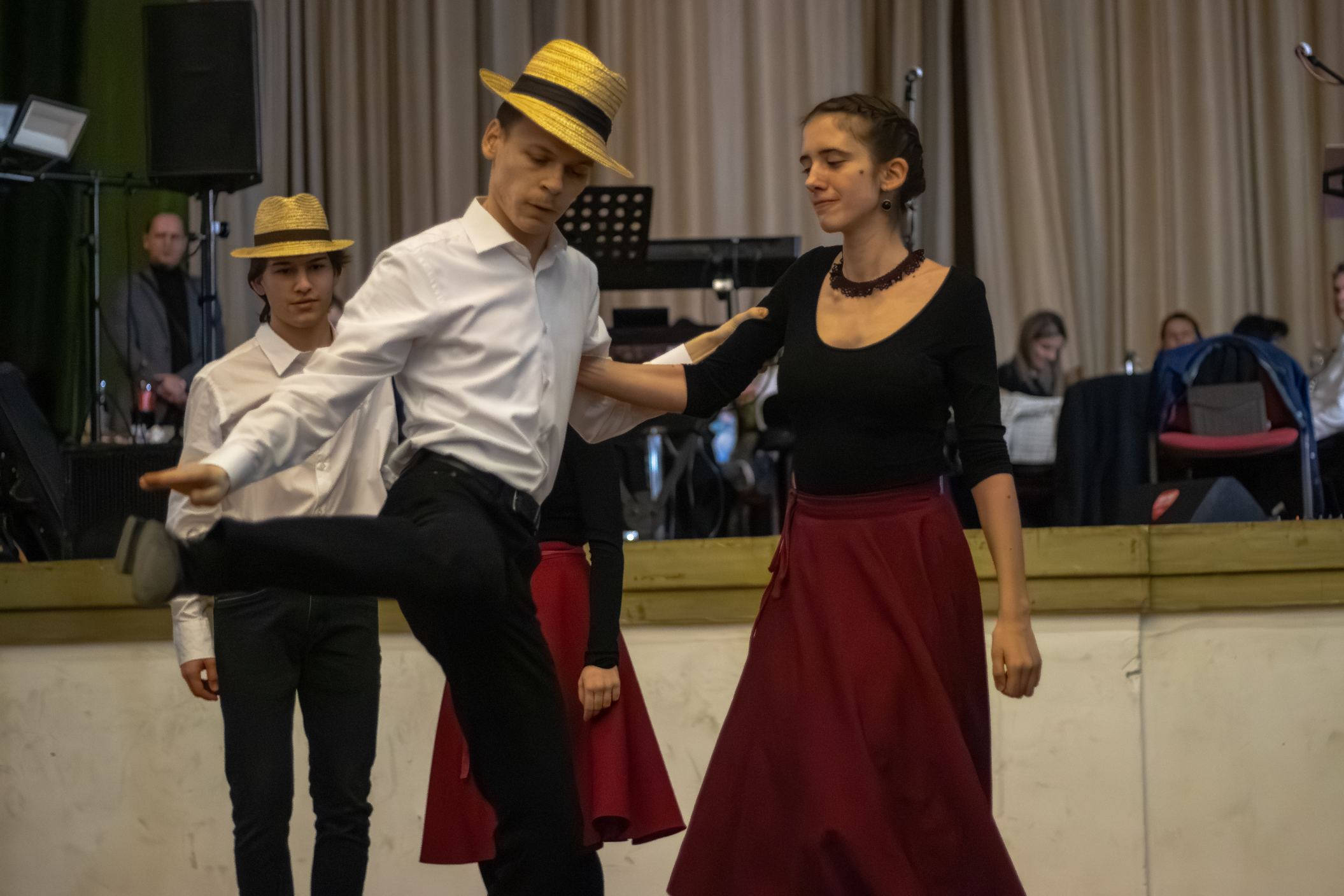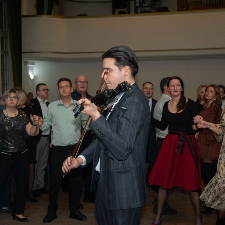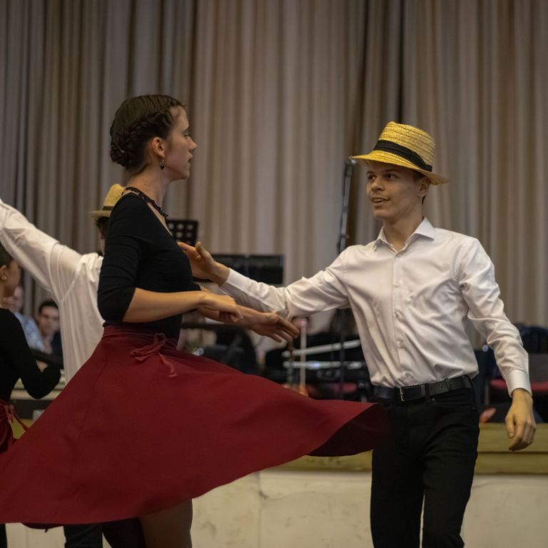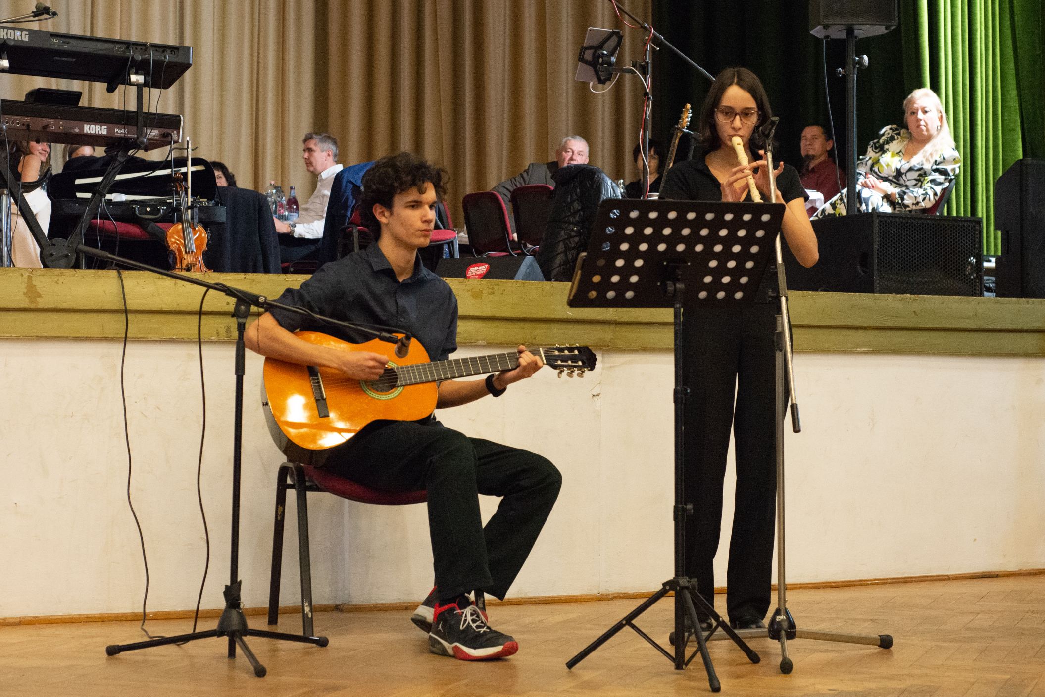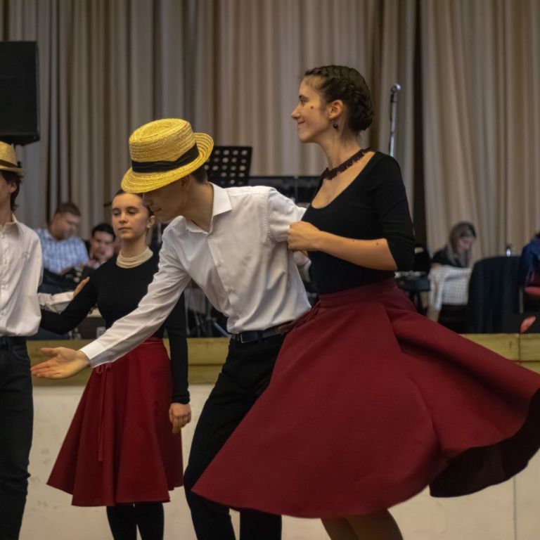 Szintén zenei produkcióval készült Mészáros Petra (fuvola) és Sziráczki Tamás (gitár), felkészítőjük Kajántó Judit tanárnő. A suli Holdvirág néptánccsoportja mezőségi táncokat mutatott be, majd a Feeling Dance Táncklub tehetséges táncosai léptek fel. A nyitótánc után a Sanzon együttes zenélt, miközben értékes nyereményeket lehetett nyerni tombolán.
