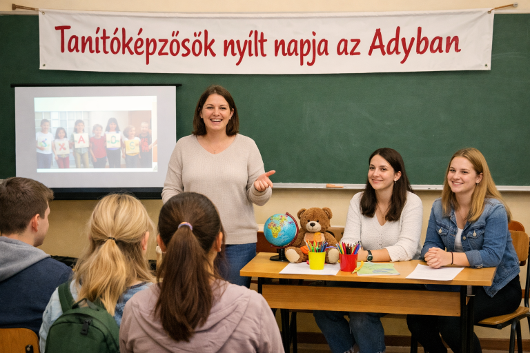 Április 22-én, szerdán, 11.30 órától kerül sor a Tanítóképzősök nyílt napjára az Adyban. Szeretnénk megismertetni az érdeklődő nyolcadikos diákokkal az Ady-líceumban működő tanítóképzős osztályok, pontosabban a tanító, valamint óvoda és bölcsődepedagógus-képző csoportok tevékenységét. Interaktív formában mutatjuk be az elmúlt évek munkáját és az eddig elkészített módszertani anyagokat. Ugyanakkor lehetőség nyílik elbeszélgetni a képzőbe járó diákokkal és a gyakorlatokat vezető pedagógusokkal.