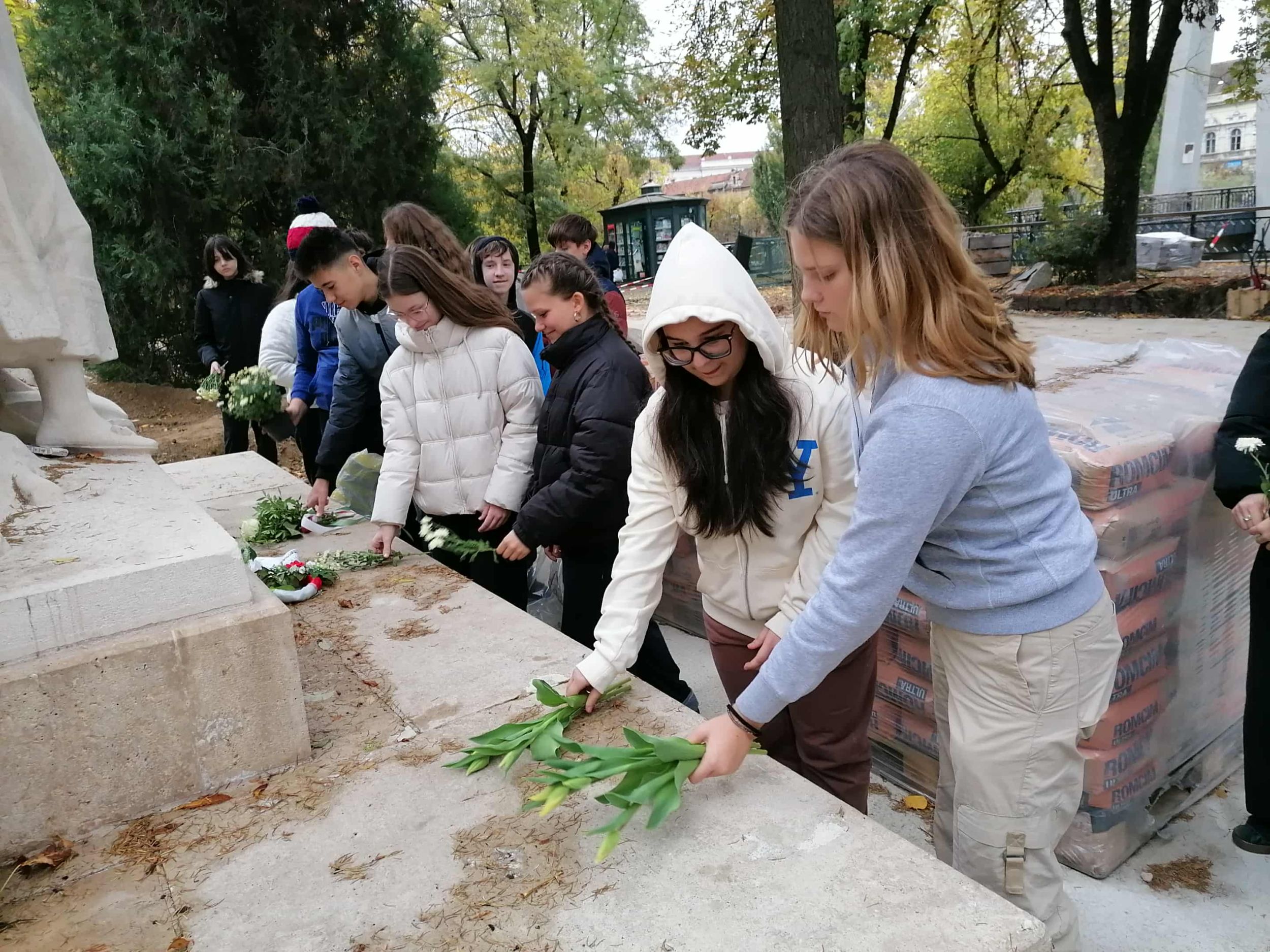 A VIII. A osztály diákjai és történelemtanáruk, Apáti Timea, a mártír szobránál elhelyezett virágokkal és főhajtással tisztelegtek a Bihar megyei vértanú emléke előtt. A diákok felidészték Szacsvay Imre életének és pályafutásának főbb mozzanatait, majd elhelyezték az emlékezés virágait a szobor talapzatánál. Szacsvay Imre részt vett a függetlenségi nyilatkozat megszerkesztésében, ő olvasta fel és a neve ott szerepel a dokumentum aláírói között is. Emiatt írta róla később egy váradi költő, Katona Mihály: „Egy tollvonás volt bűne”. A szabadságharc bukása után a császári hatóságok perbe fogták, a fővád ellene a függetlenségi nyilatkozat fogalmazása és aláírása, egyéb vádak a felségsértés és a lázadás volt. Kötél általi halálra ítélték. Kivégzésére 1849. október 24-én reggel került sor.