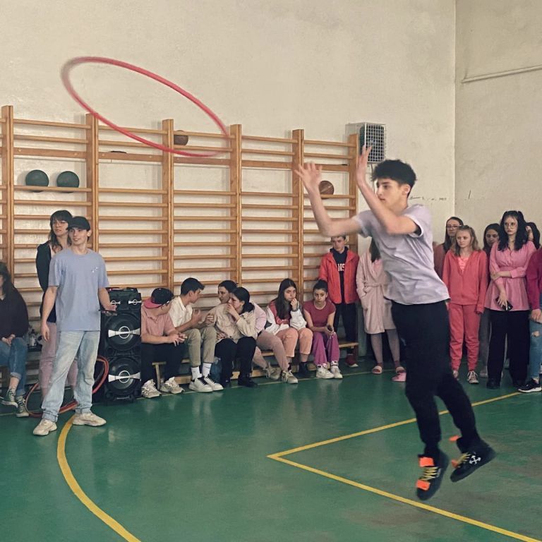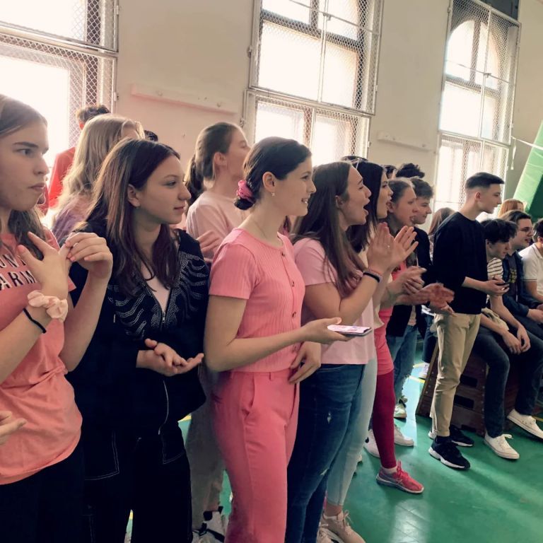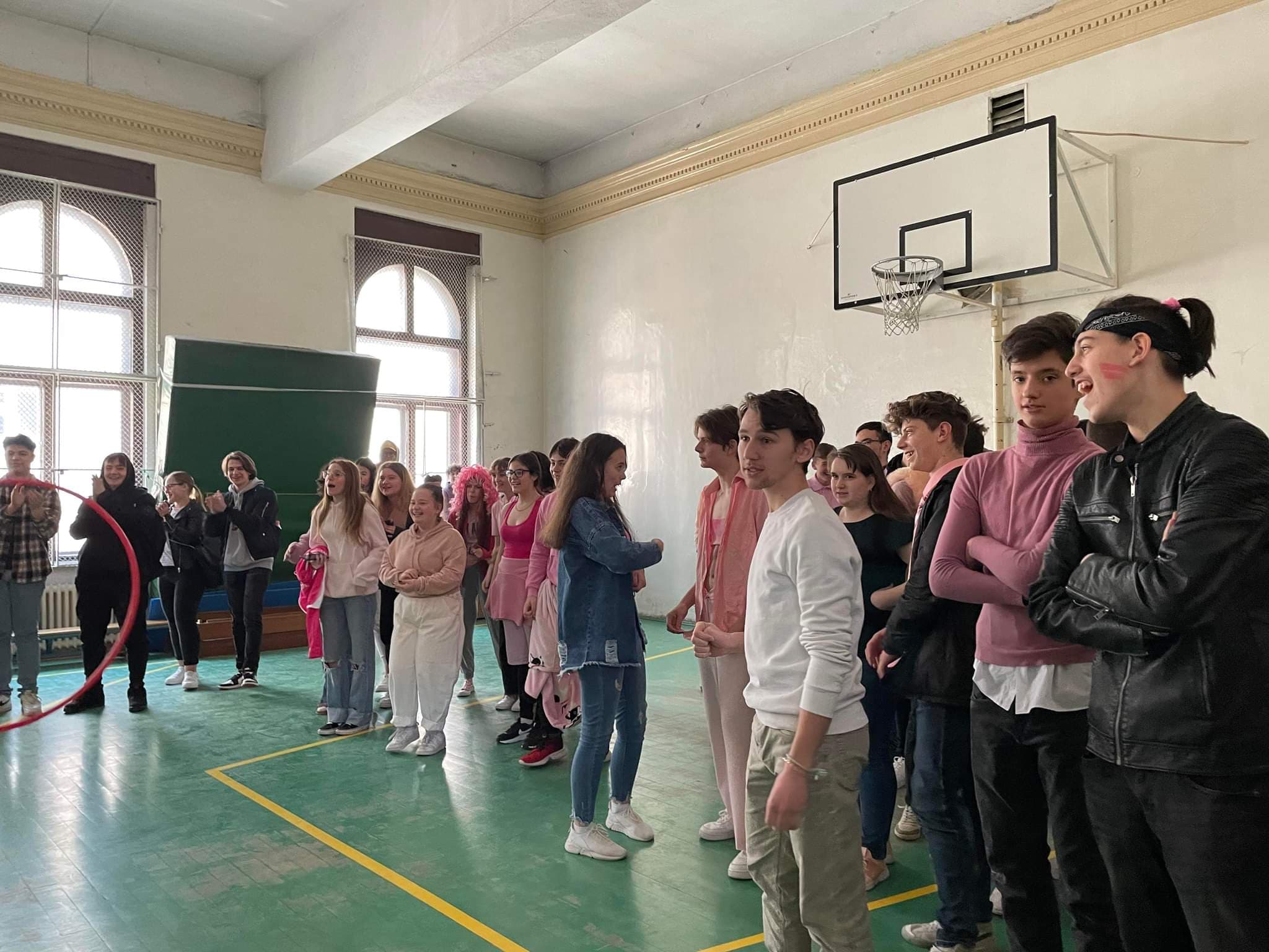 Március 29., kedd volt a gólyahét második napja. A kilencedikesek rózsaszínbe öltözve jöttek iskolába; ki fürdőköpenyt, ki báli ruhát, ki pizsamát húzott. A játék a tornateremben zajlott, az illető gólyáknak hulahoppkarikákat kellett egymás nyakába dobniuk - örök klasszikus. A nyertes a 9.E osztály lett tizenkét telitalálattal.