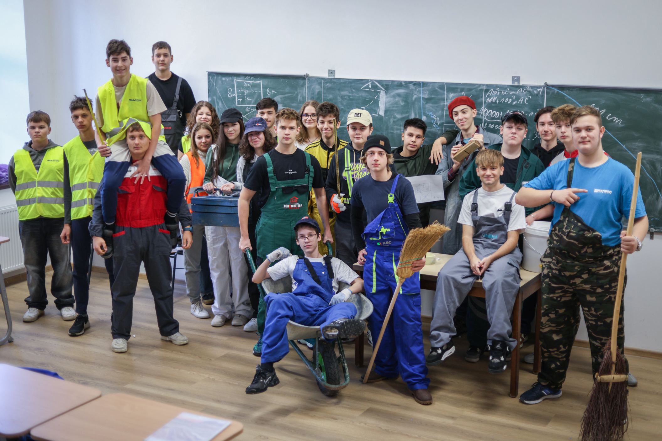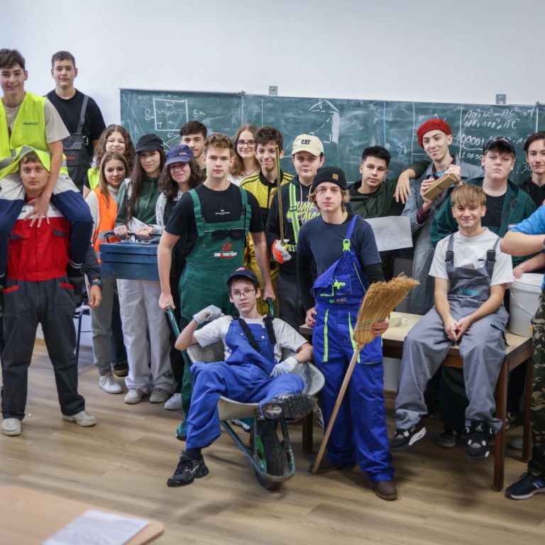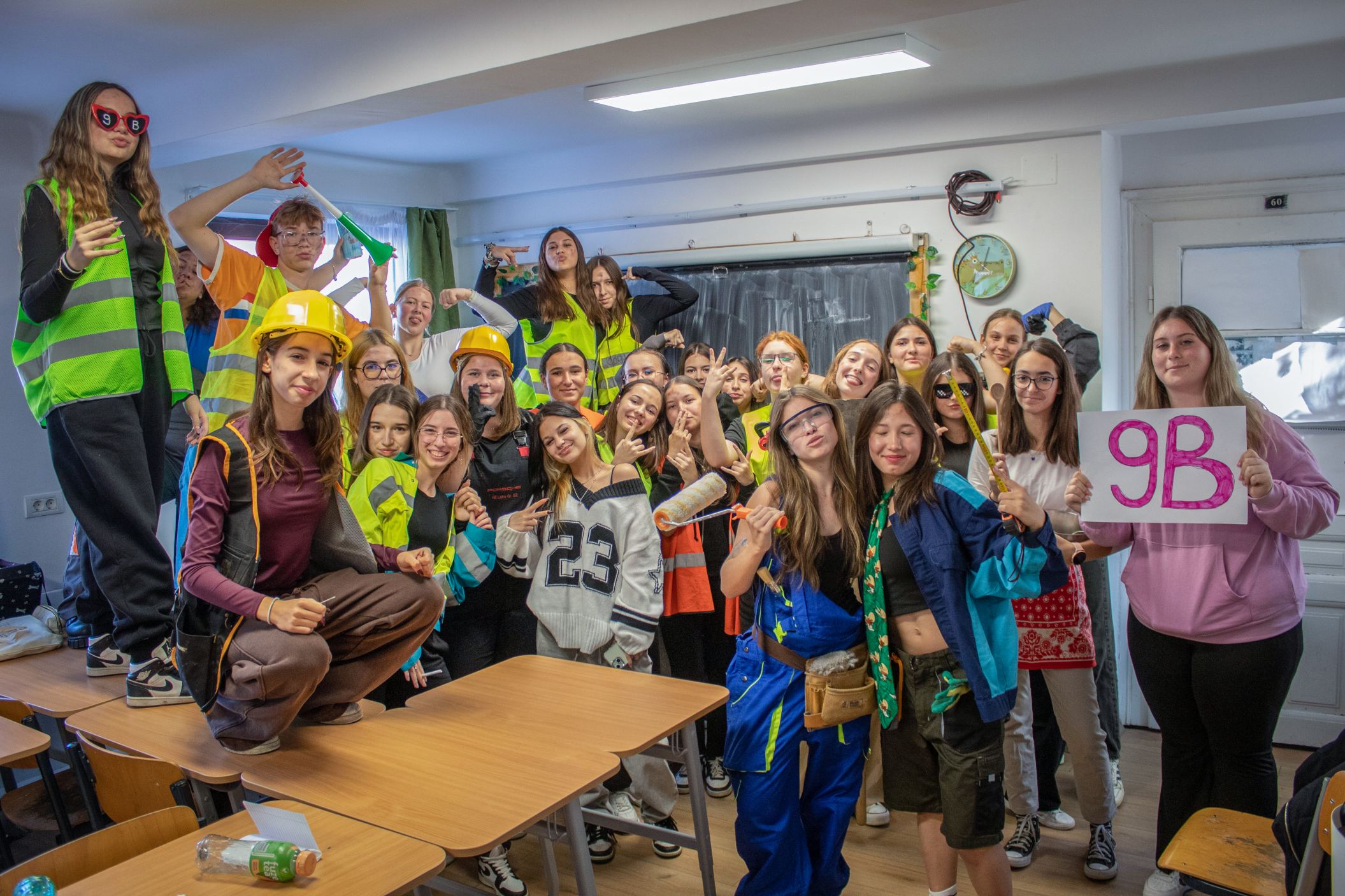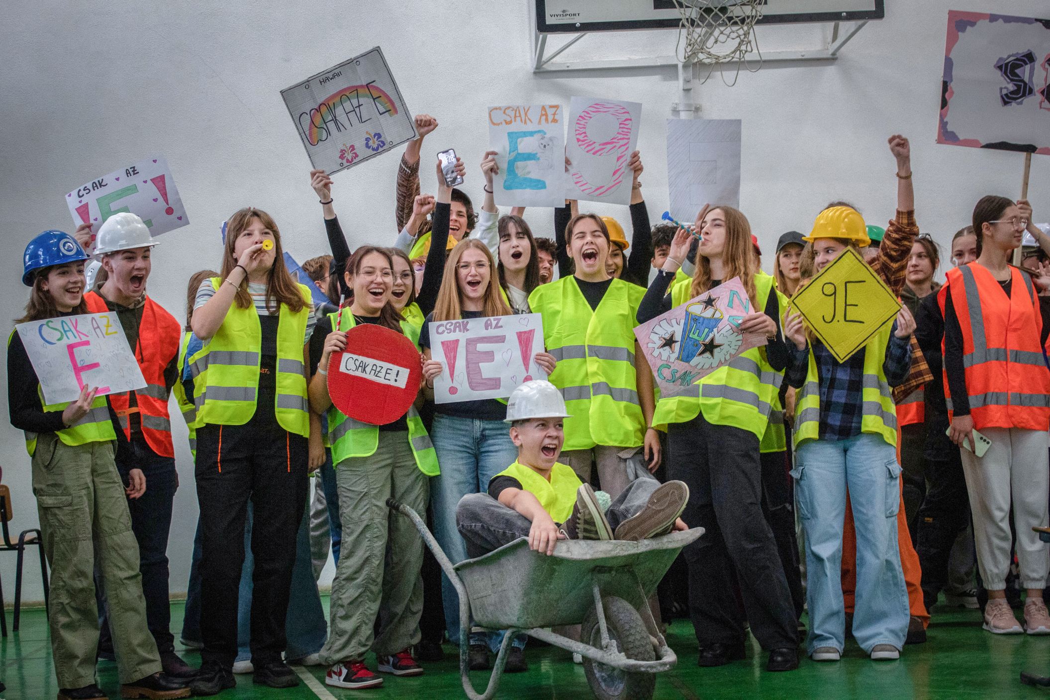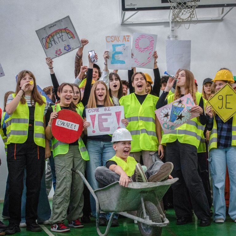 A gólyahét második napjának feladataként a gólyák munkásoknak öltözve, iskolatáska nélkül jöttek suliba. Ma is bebizonyosodott, hogy a gólyáink mennyire kreatívak, jobbnál jobb jelmezekkel és kreatív előadásokkal fogadtak minket, amikor beléptünk az osztályaikba. A suli folyosóin "santierbe" öltözött kilencedikesek buliztak. A mai nagyjátékon ismét 6 bátor jelentkező vett részt, és szék-foglalót játszottak. A hangulat fergeteges volt.