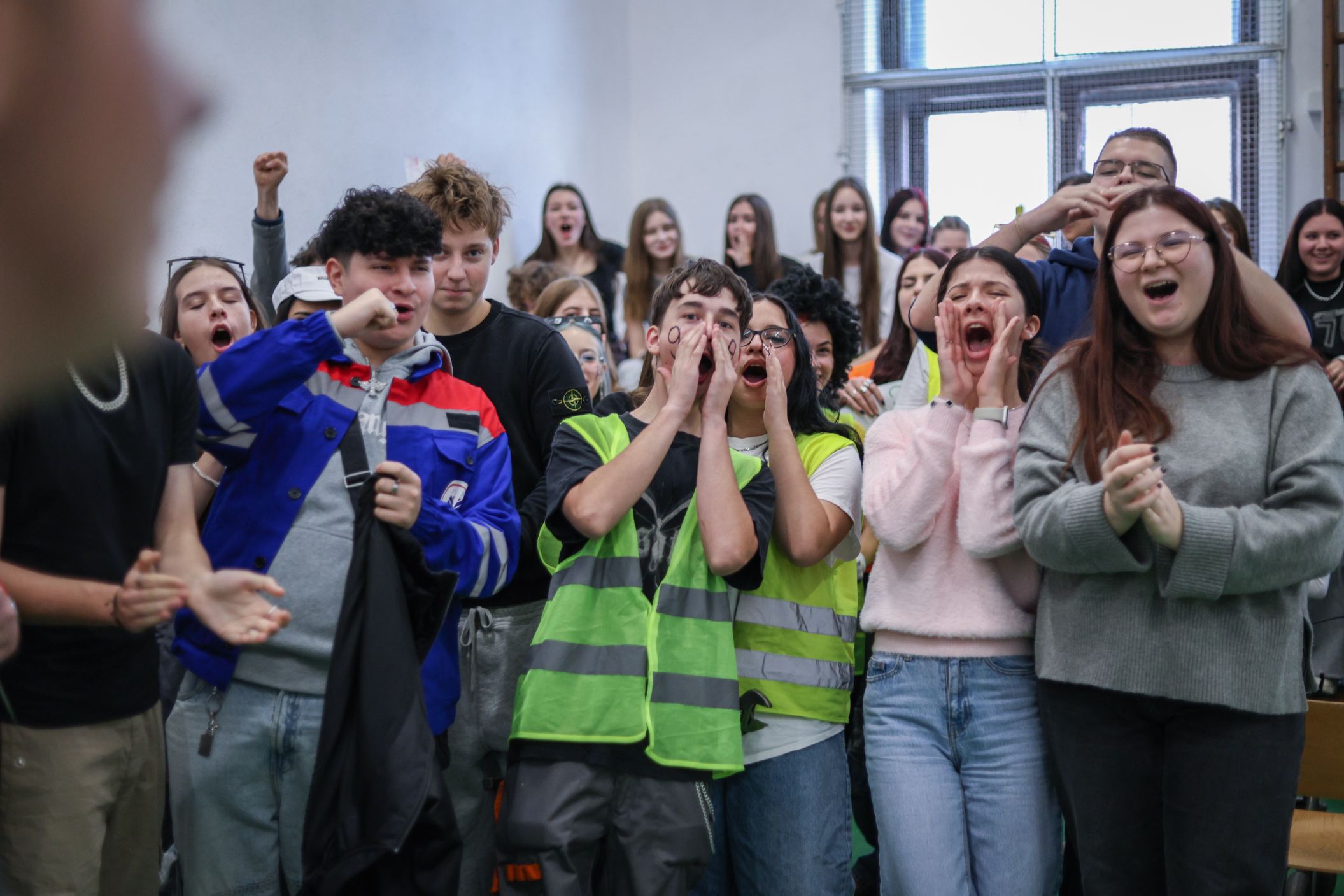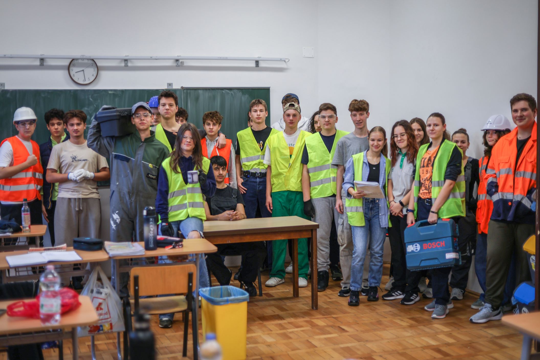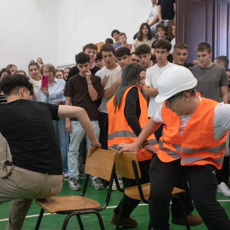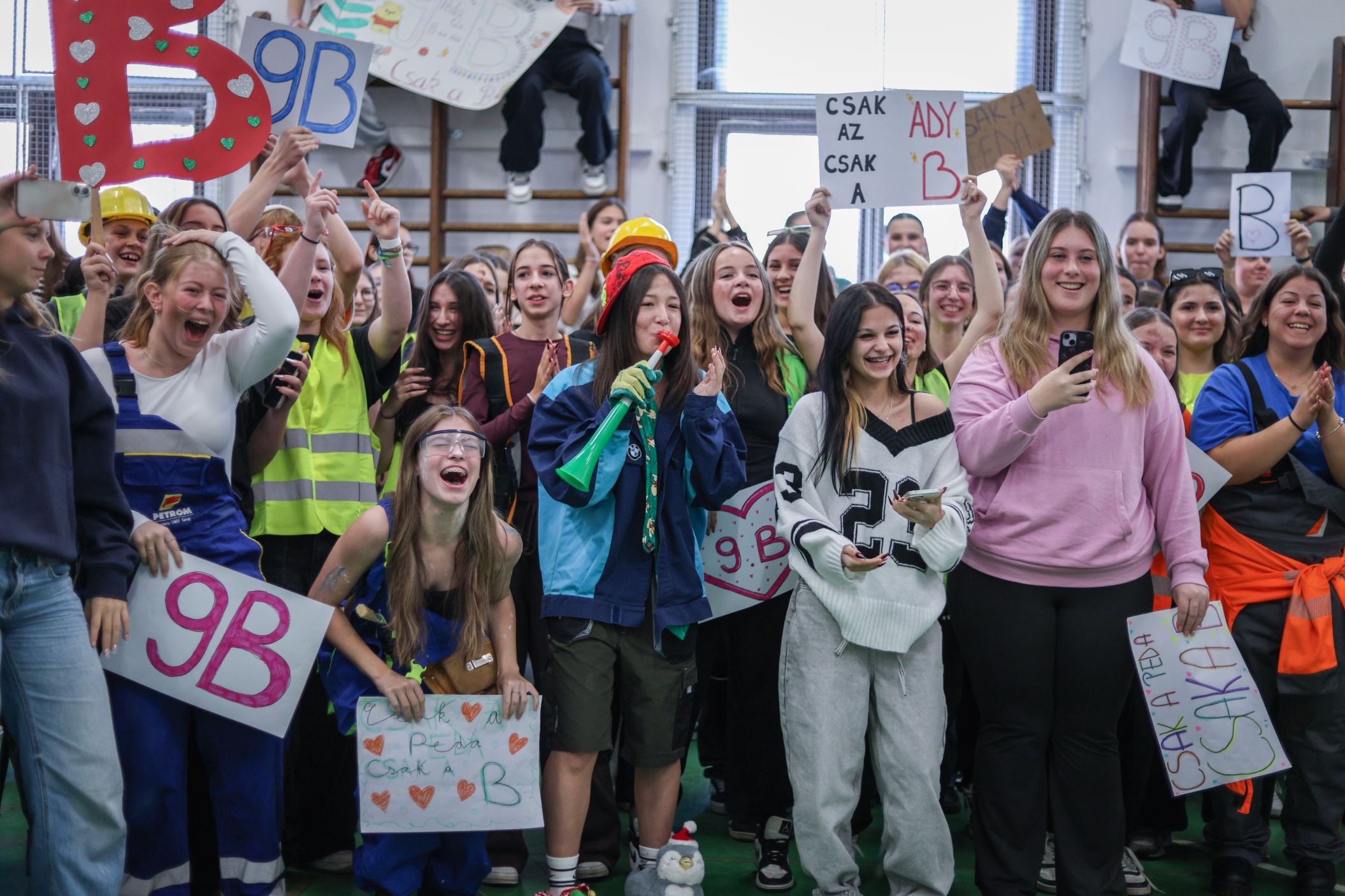 A gólyahét második napjának feladataként a gólyák munkásoknak öltözve, iskolatáska nélkül jöttek suliba. Ma is bebizonyosodott, hogy a gólyáink mennyire kreatívak, jobbnál jobb jelmezekkel és kreatív előadásokkal fogadtak minket, amikor beléptünk az osztályaikba. A suli folyosóin "santierbe" öltözött kilencedikesek buliztak. A mai nagyjátékon ismét 6 bátor jelentkező vett részt, és szék-foglalót játszottak. A hangulat fergeteges volt.