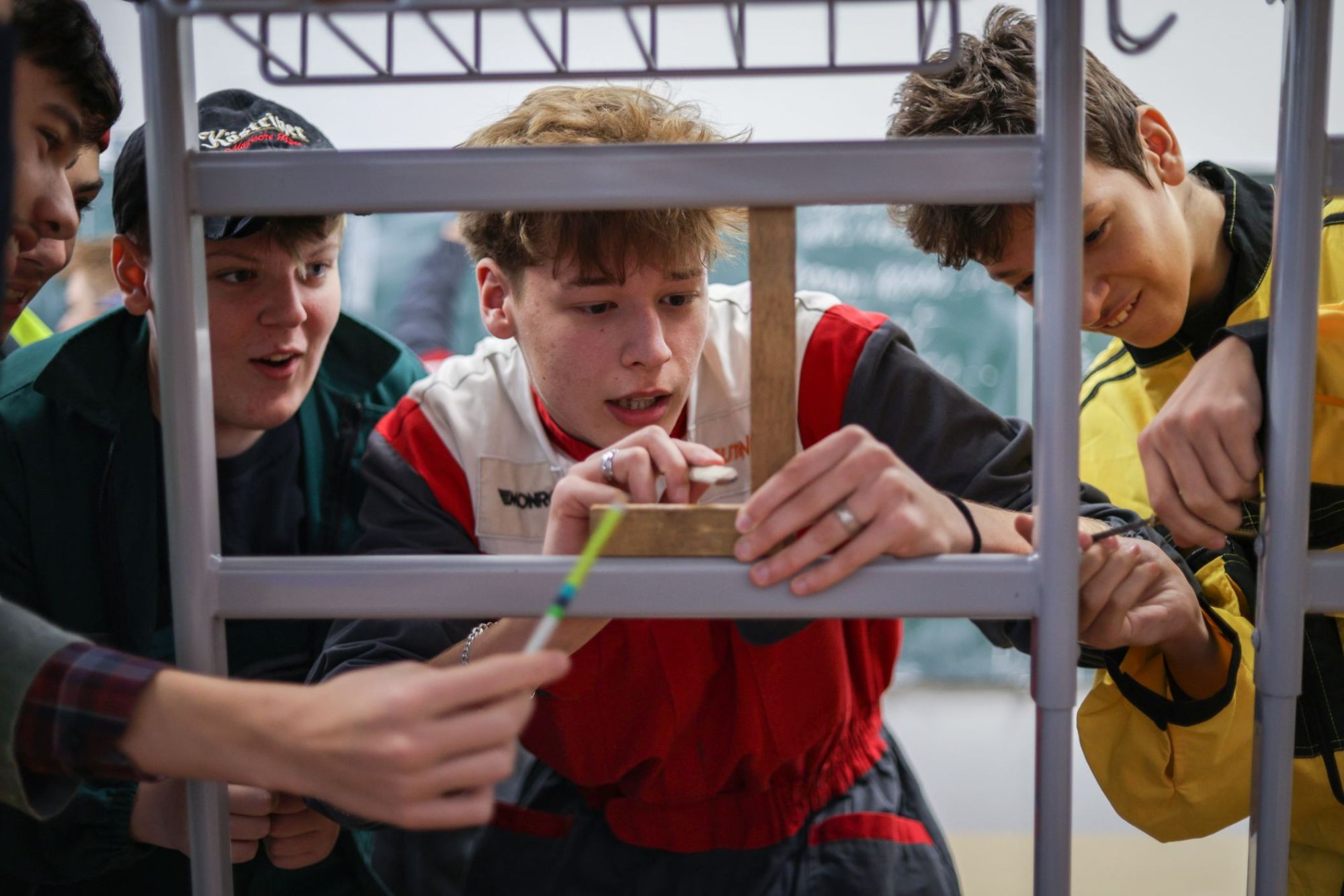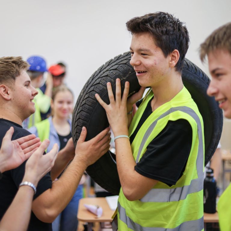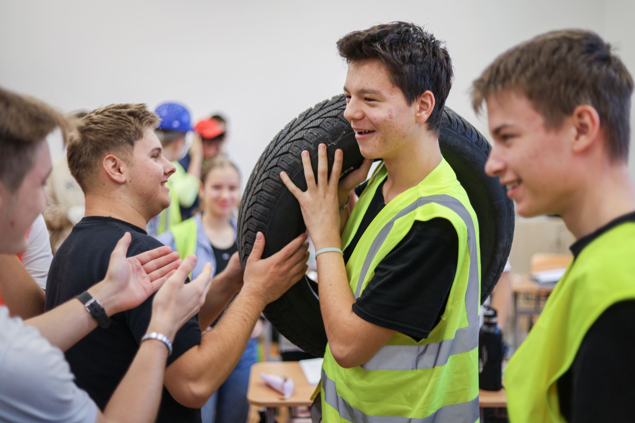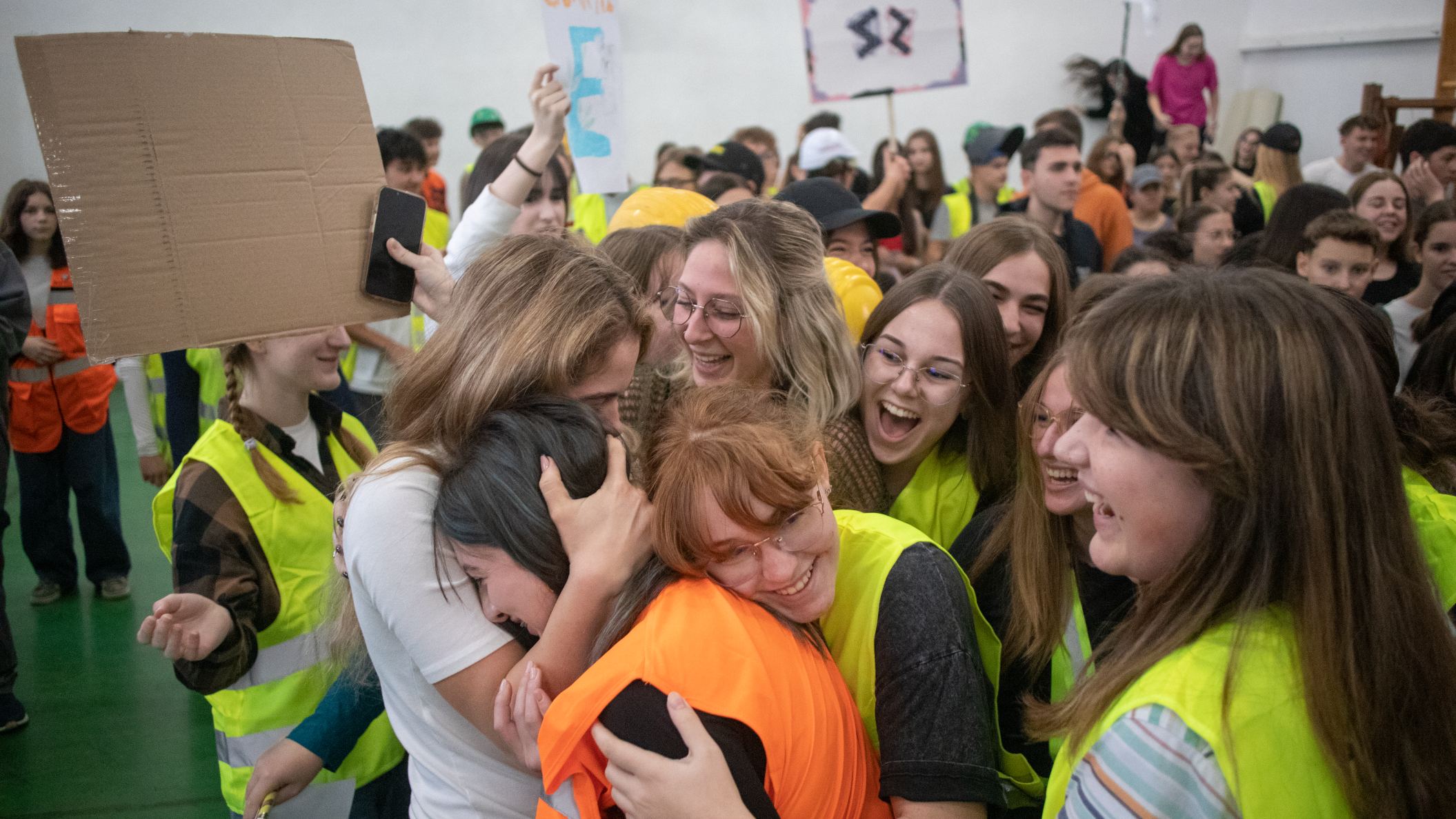 A gólyahét második napjának feladataként a gólyák munkásoknak öltözve, iskolatáska nélkül jöttek suliba. Ma is bebizonyosodott, hogy a gólyáink mennyire kreatívak, jobbnál jobb jelmezekkel és kreatív előadásokkal fogadtak minket, amikor beléptünk az osztályaikba. A suli folyosóin "santierbe" öltözött kilencedikesek buliztak. A mai nagyjátékon ismét 6 bátor jelentkező vett részt, és szék-foglalót játszottak. A hangulat fergeteges volt.