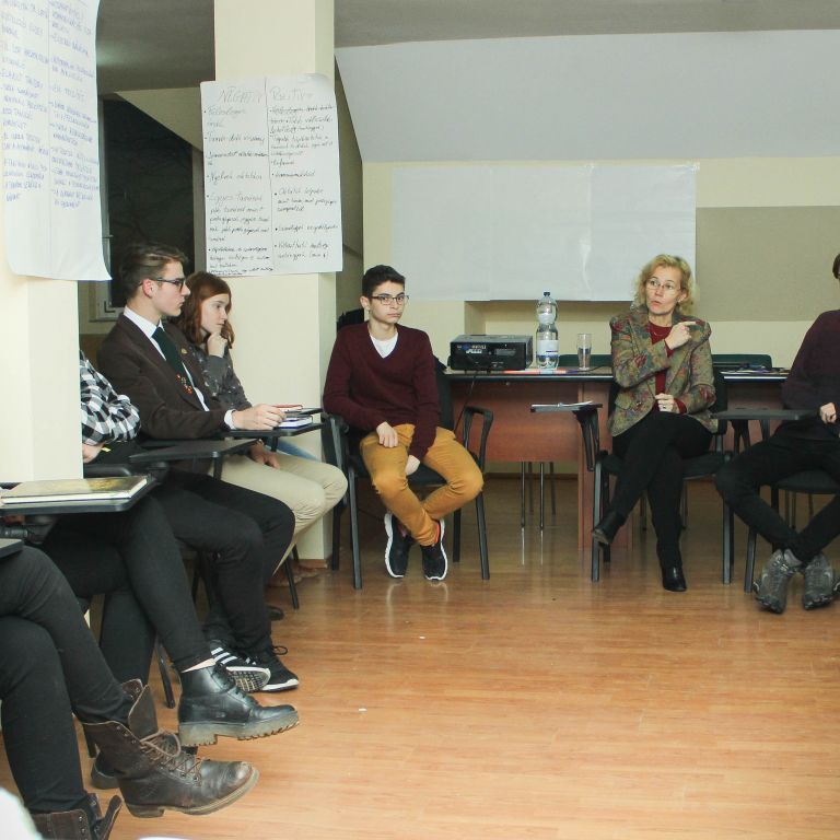 Délután 5 órakor Bíró Rozália képviselő asszony tartott előadást a kommunikációról, elméleti és tapasztalati tanácsokat osztott meg a diákokkal a különféle csoportokkal való kapcsolat építéséről, fenntartásáról. Ezt követően munkapályájára hivatkozva bemutatta, hogyan lehet ezeket a kapcsolatokat megfelelő külső és belső kommunikációval kamatoztatni egy ügy elérésének érdekében.