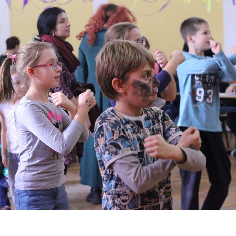 A játékos délelőttre ellátogató több mint 100 gyereket különböző kézműves tevékenységek, arcfestés, sok játék és tánc várta.