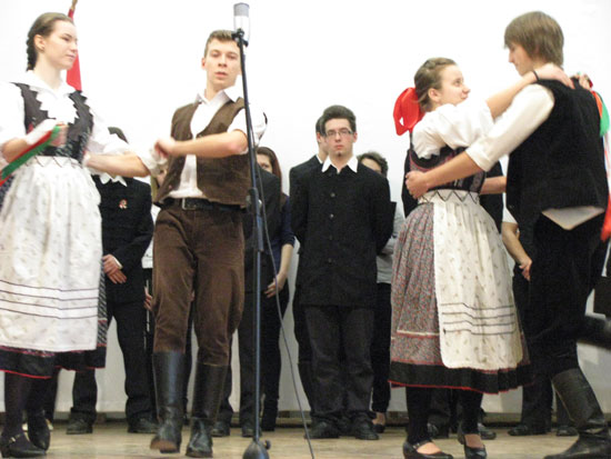 A zenés-verses összeállításban felelevenítették a 12 pont, a Nemzeti dal születését, a márciusi ifjak lelkesedését Petőfi Sándor, Vajda János, Vörösmarty Mihály, Czuczor Gergely, Juhász Gyula verseivel. A forradalmi hangulatot Kossuth Lajos toborzó beszéde valamint az iskola néptáncosainak előadása fokozta.