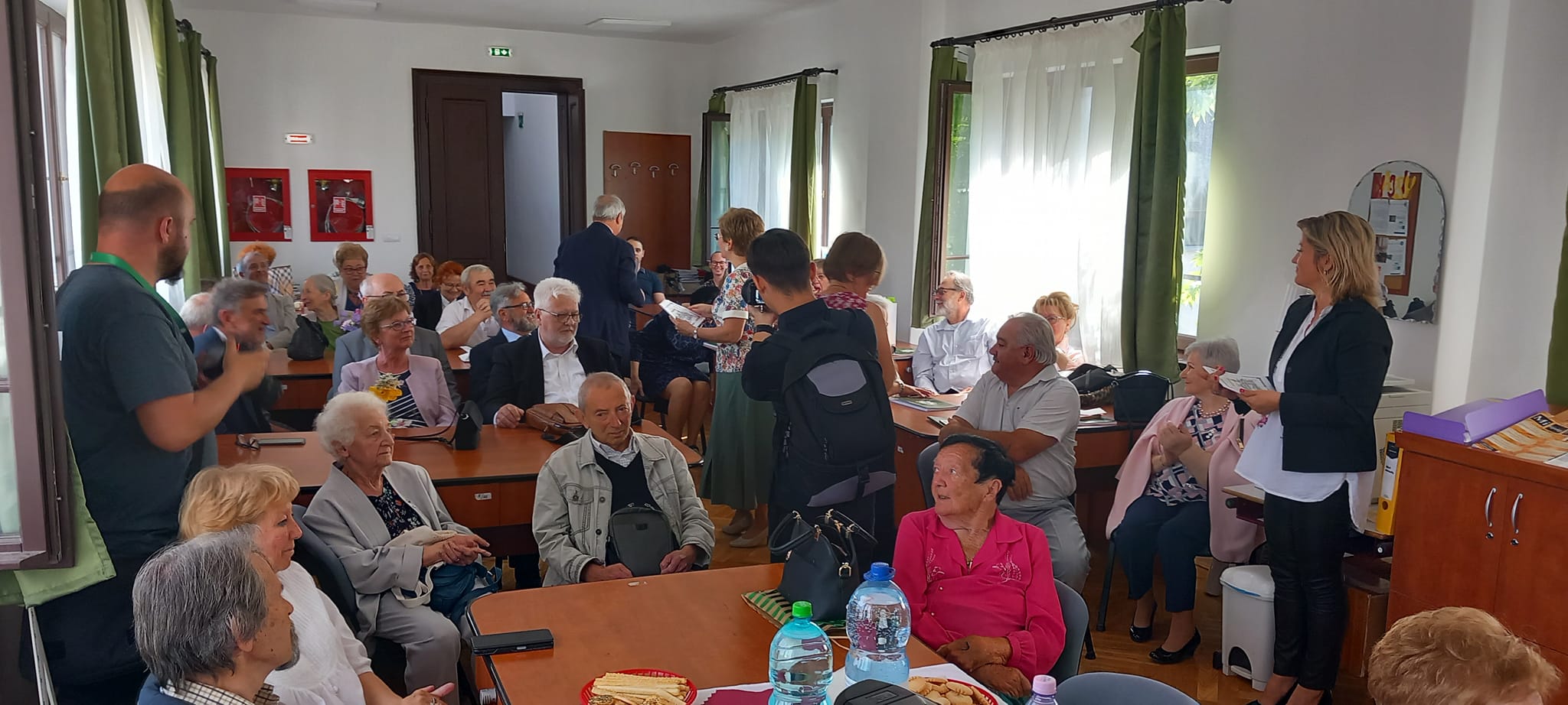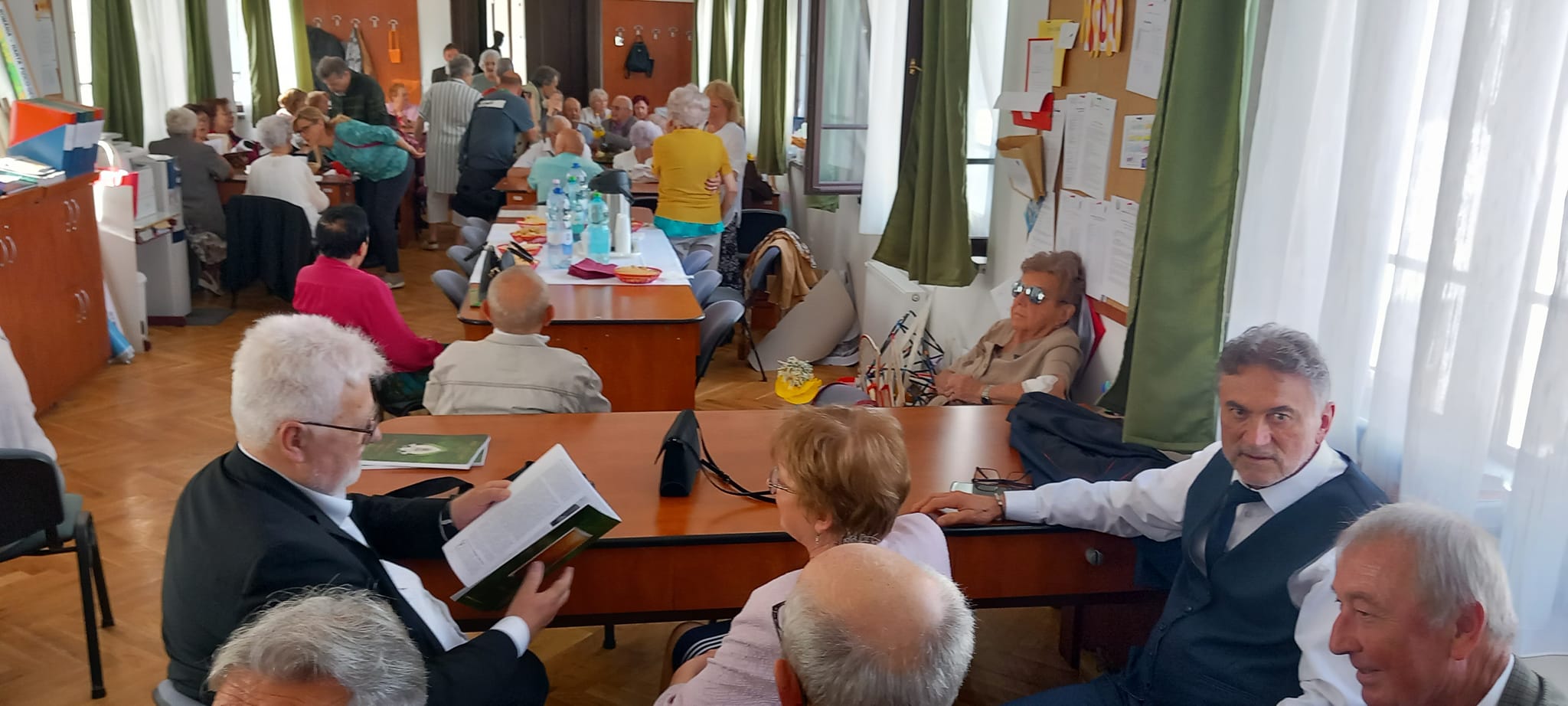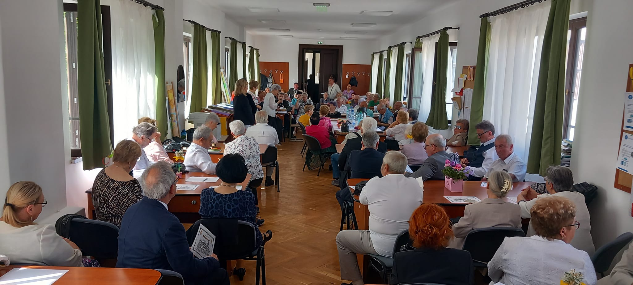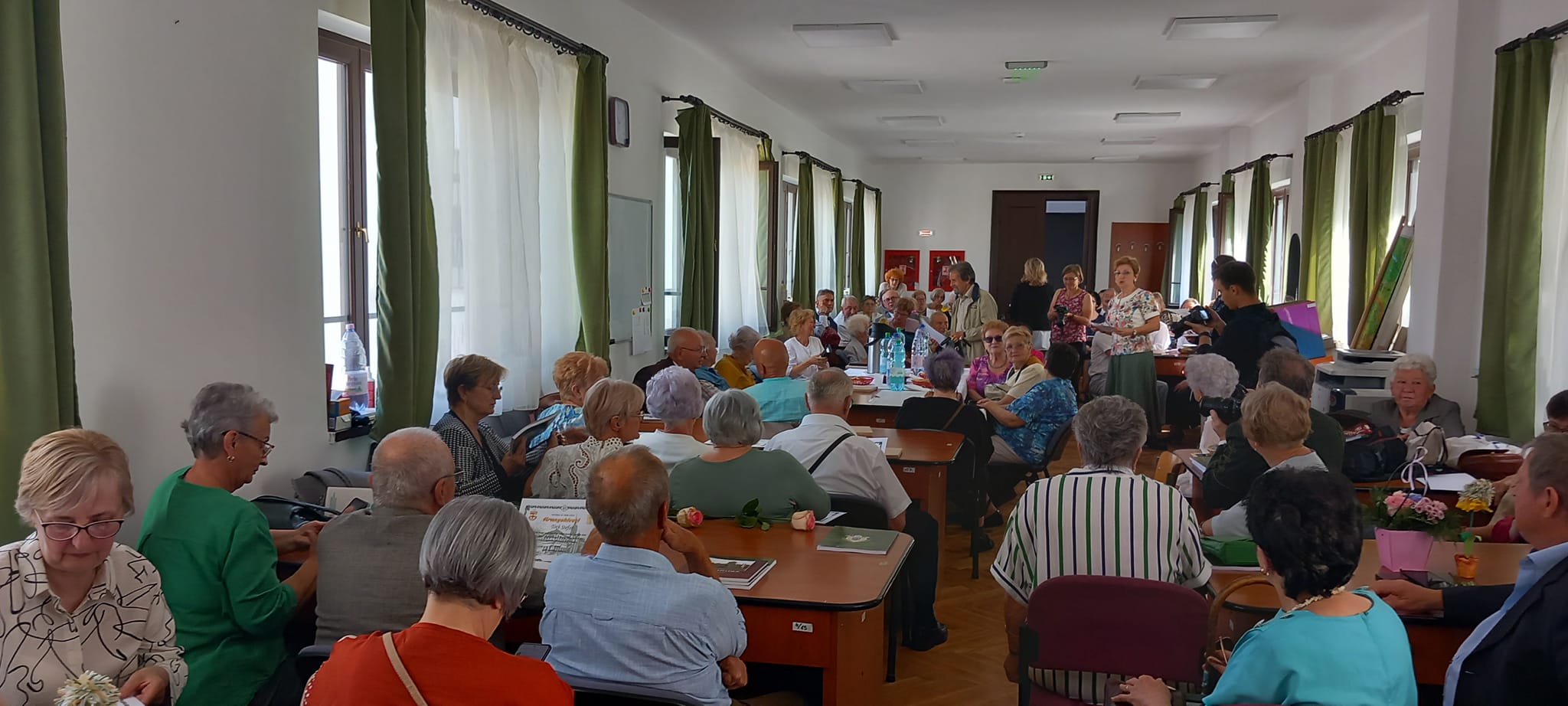 A kapusfülke melletti lépcsőnél mostani diákok igazították kedvesen útba az érkezőket, amit mindenki hálásan megköszönt, hiszen amúgy is könnyű eltévedni az iskola falai közt, jelenleg pedig a korszerűsítés miatt még inkább. A dísztermet még néhány hónapig nem lehet használni, ezért az ünnepelteket két csoportra osztották a szervezők: nagyobb részüket a tanáriba invitálták, a többieket pedig egy földszinti osztályterem felé kalauzolták.