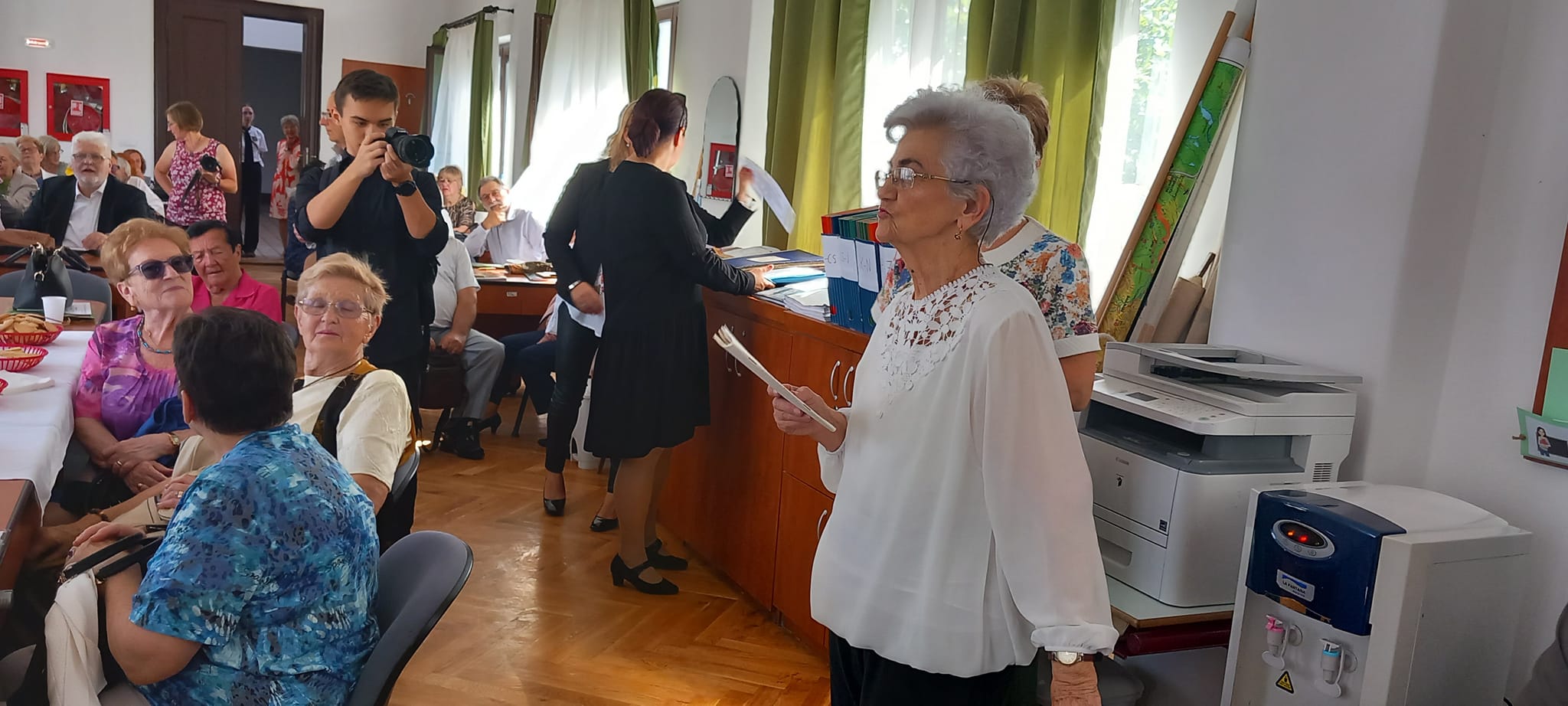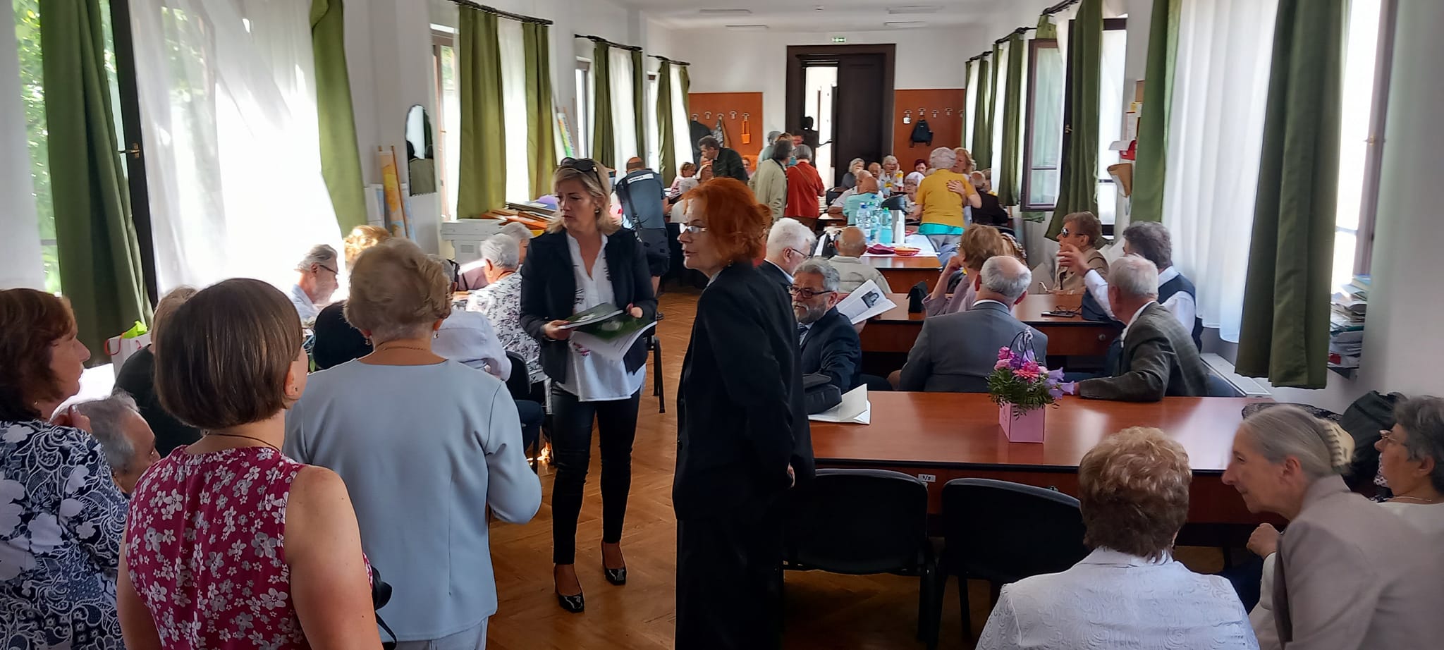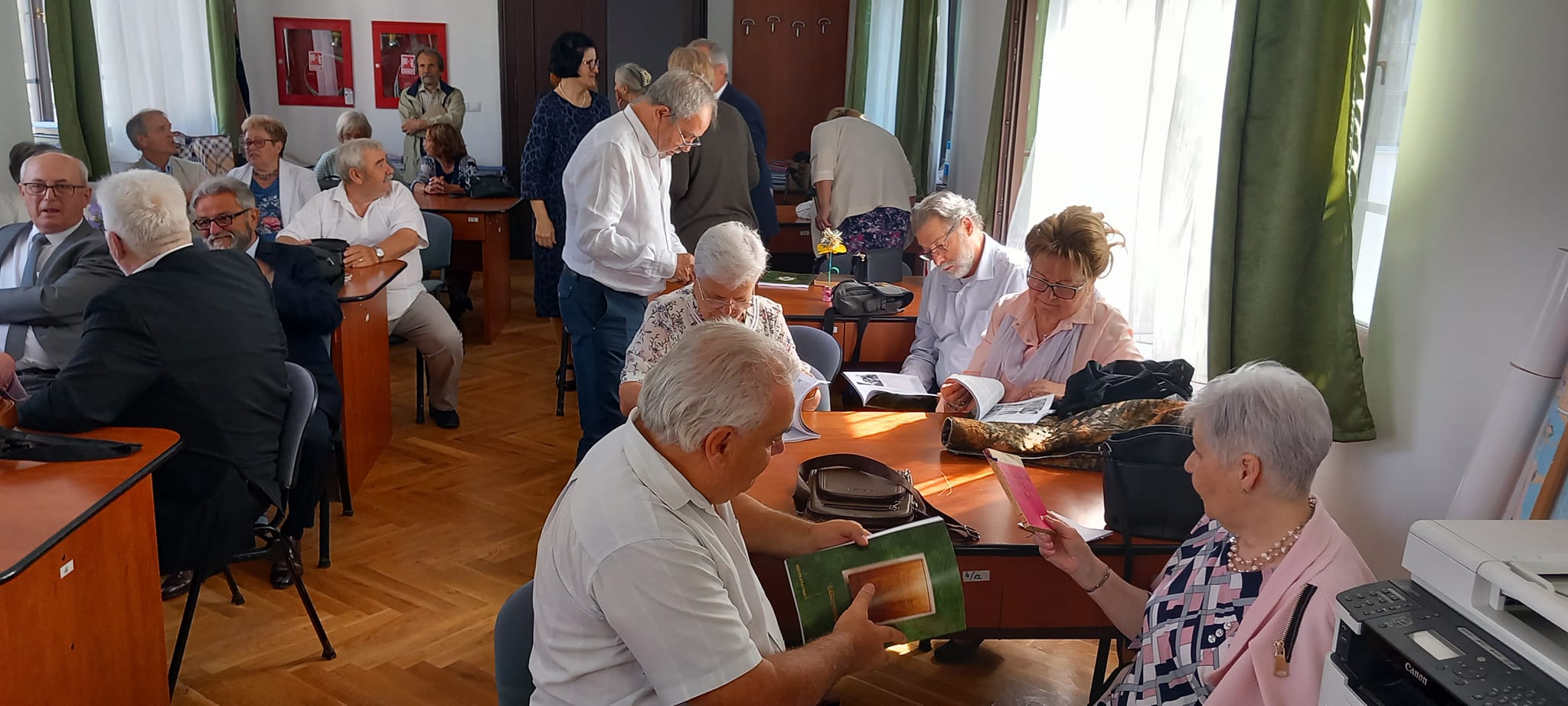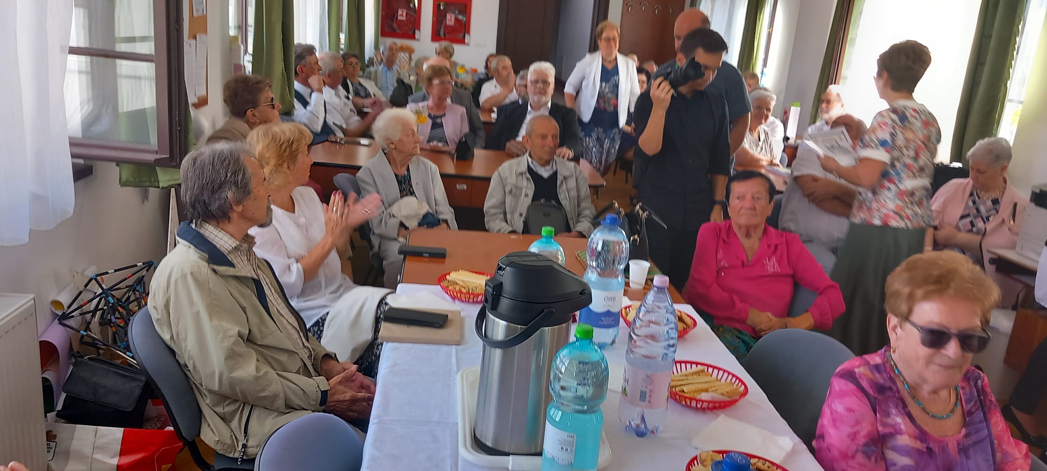 A kapusfülke melletti lépcsőnél mostani diákok igazították kedvesen útba az érkezőket, amit mindenki hálásan megköszönt, hiszen amúgy is könnyű eltévedni az iskola falai közt, jelenleg pedig a korszerűsítés miatt még inkább. A dísztermet még néhány hónapig nem lehet használni, ezért az ünnepelteket két csoportra osztották a szervezők: nagyobb részüket a tanáriba invitálták, a többieket pedig egy földszinti osztályterem felé kalauzolták.