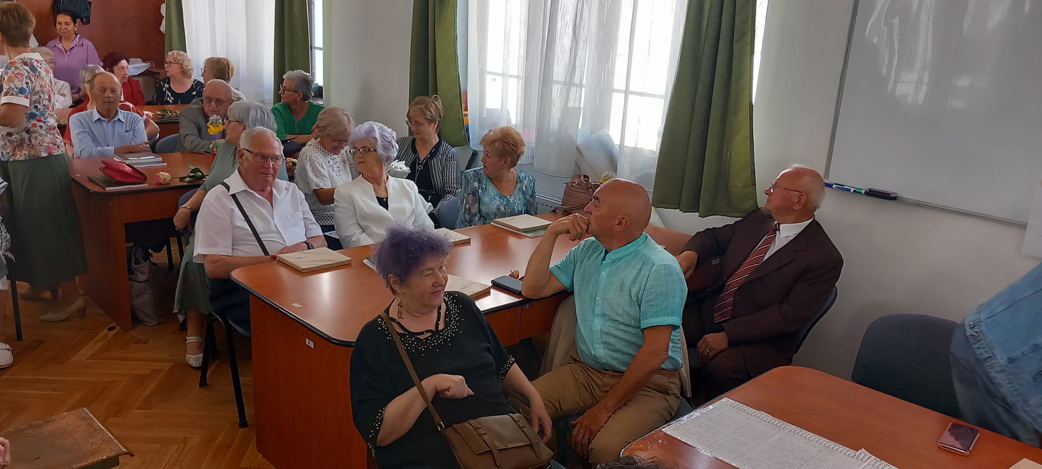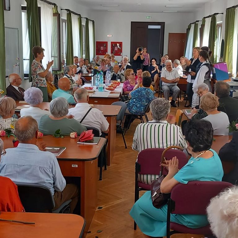 Az iskolában zajló felújítási munkálatok miatt az idén a megszokottnál is különlegesebbnek és emlékezetesebbnek bizonyultak az Ady Endre Elméleti Líceumban minden májusban hagyományosan megrendezett 50, 60 és 70 éves érettségi találkozók szombaton. A volt osztálytársak már az épület előtt örömmel üdvözölték egymást, és az első csoportképek el is készültek a bejárati ajtó előtt.
