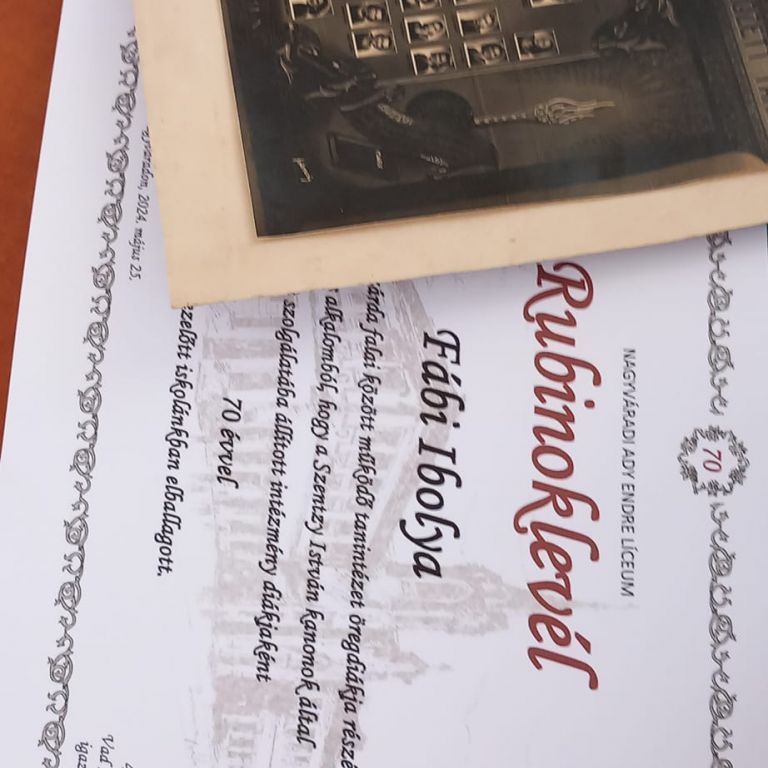 A 70. érettségi találkozójukat tartók közül Fábi Ibolya osztotta meg gondolatait az egybegyűltekkel, majd Buna Boglárka zenetanárnő, igazgatóhelyettes és Csepregi Abigél Fruzsina diák bűvölték el énekhangjukkal hallgatóságukat. Az arany-, gyémánt- és rubinoklevelek átadása után további nosztalgiázással, régi emlékek felelevenítésével folytatódott a 32. Festum Varadinum utórendezvénye.