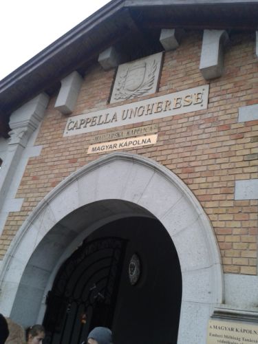 Az első nap reggelén egy magyar kápolnát látogattak meg Visintiniben, melynek koszorúi az évente odalátogató magyarok emlékezésének nyomát őrzik.