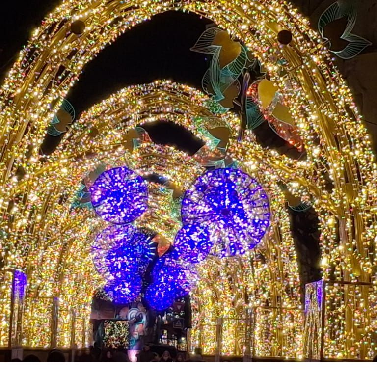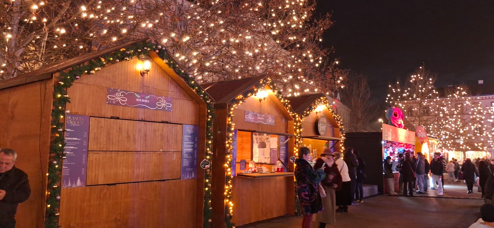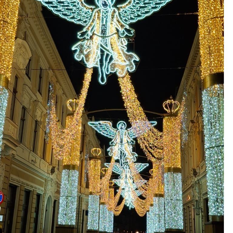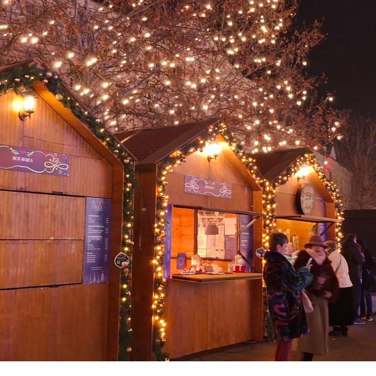 A múzeumlátogatás után egy órát töltöttünk a kolozsvári adventi vásárban. Megcsodáltuk a hangulatos kis faházikókat, hallgattuk a színpadon felcsendülő ünnepi dalokat és apró ajándékokat vásároltunk. Lenyűgöztek bennünket a Mátyás-szobor körüli téren elhelyezett ünnepi fényinstallációk, valamint a környező sétálóutcák karácsonyi fénybe öltözött látványa.
