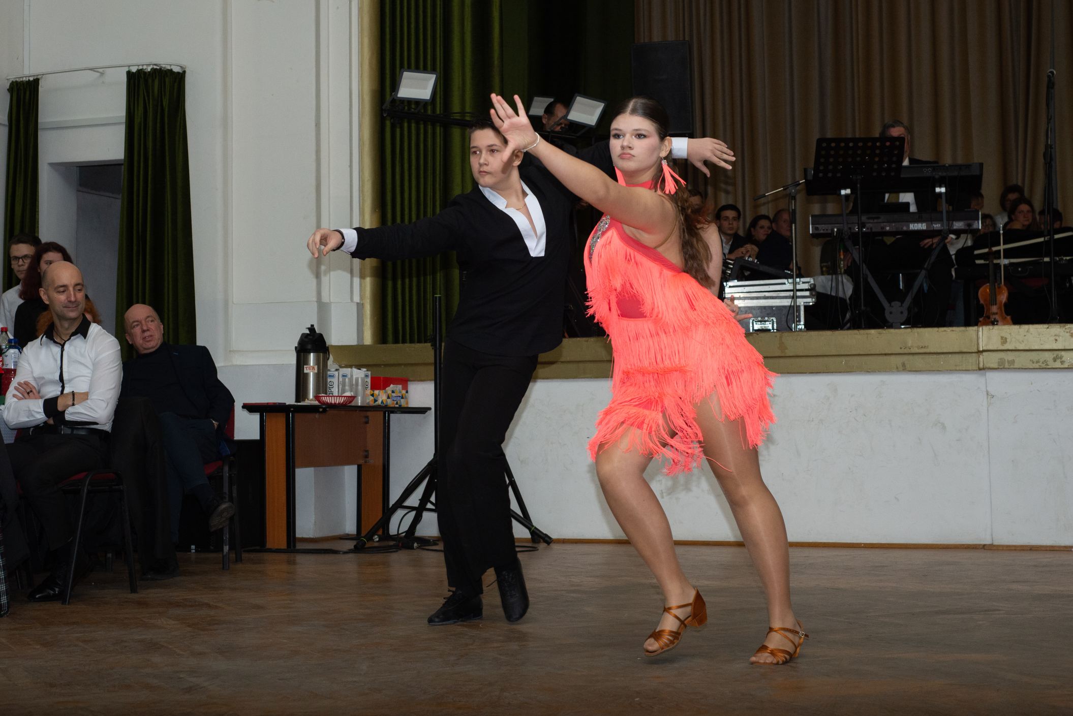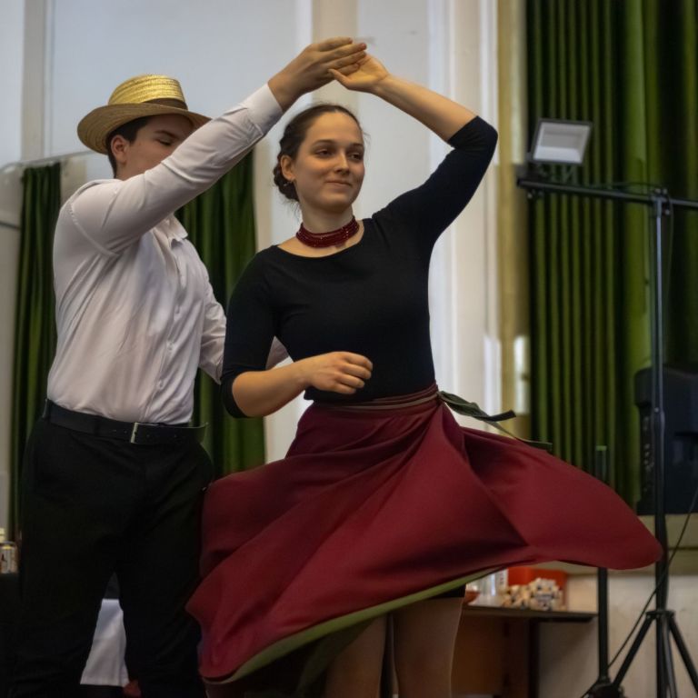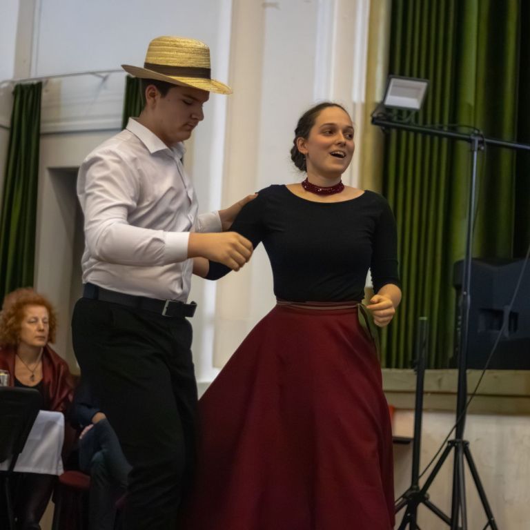 Szintén zenei produkcióval készült Mészáros Petra (fuvola) és Sziráczki Tamás (gitár), felkészítőjük Kajántó Judit tanárnő. A suli Holdvirág néptánccsoportja mezőségi táncokat mutatott be, majd a Feeling Dance Táncklub tehetséges táncosai léptek fel. A nyitótánc után a Sanzon együttes zenélt, miközben értékes nyereményeket lehetett nyerni tombolán.