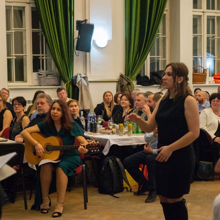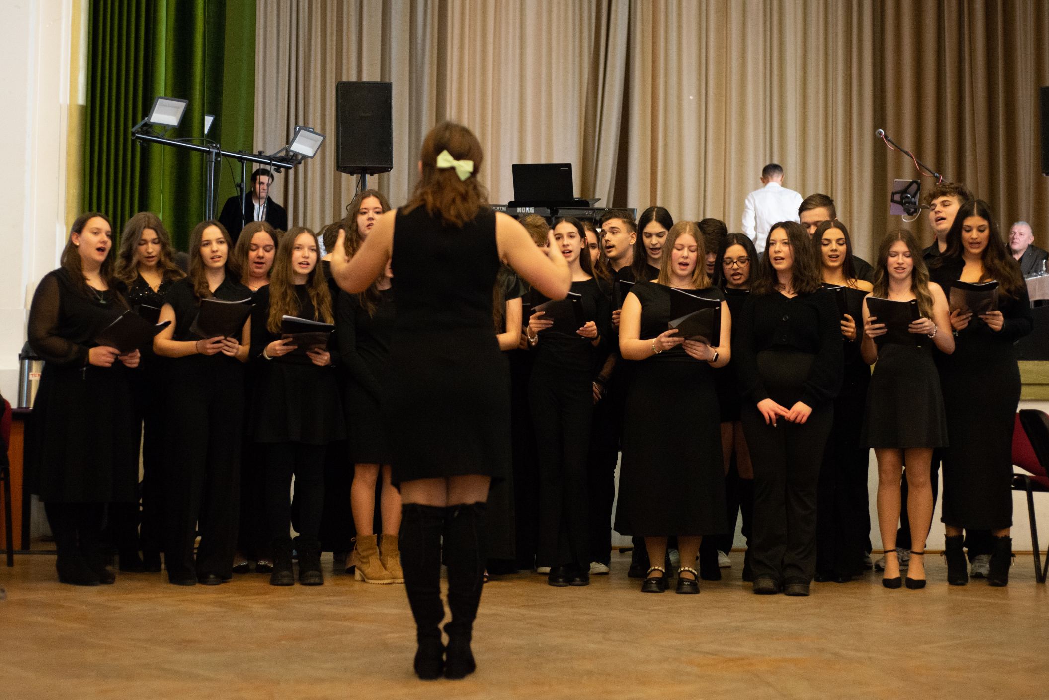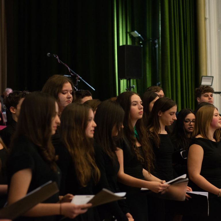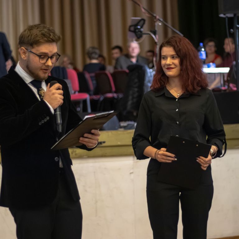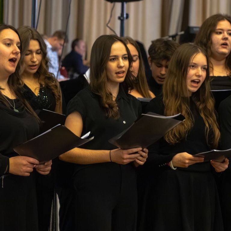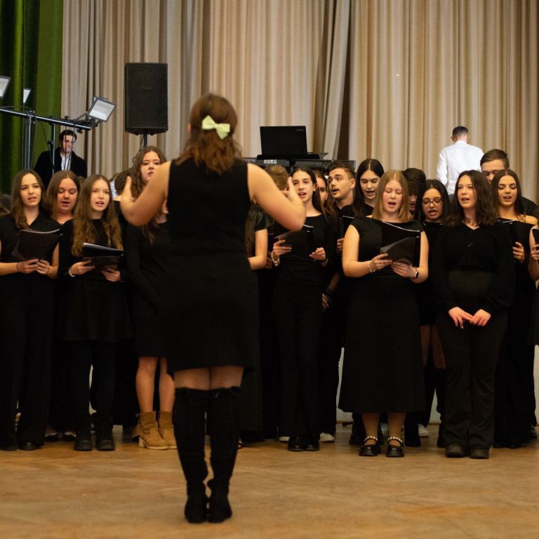 A műsorvezetői feladatokat két diák, Szalai Bernadett Anita és Szekrényes Kristóf Zsolt látta el. Az est hangulatát az iskola kórusa alapozta meg ezután. A Galambos-Szendrei Mónika és Csepregi Imola tanárnők által felkészített fiatalok zsidó énekeket adtak elő.
