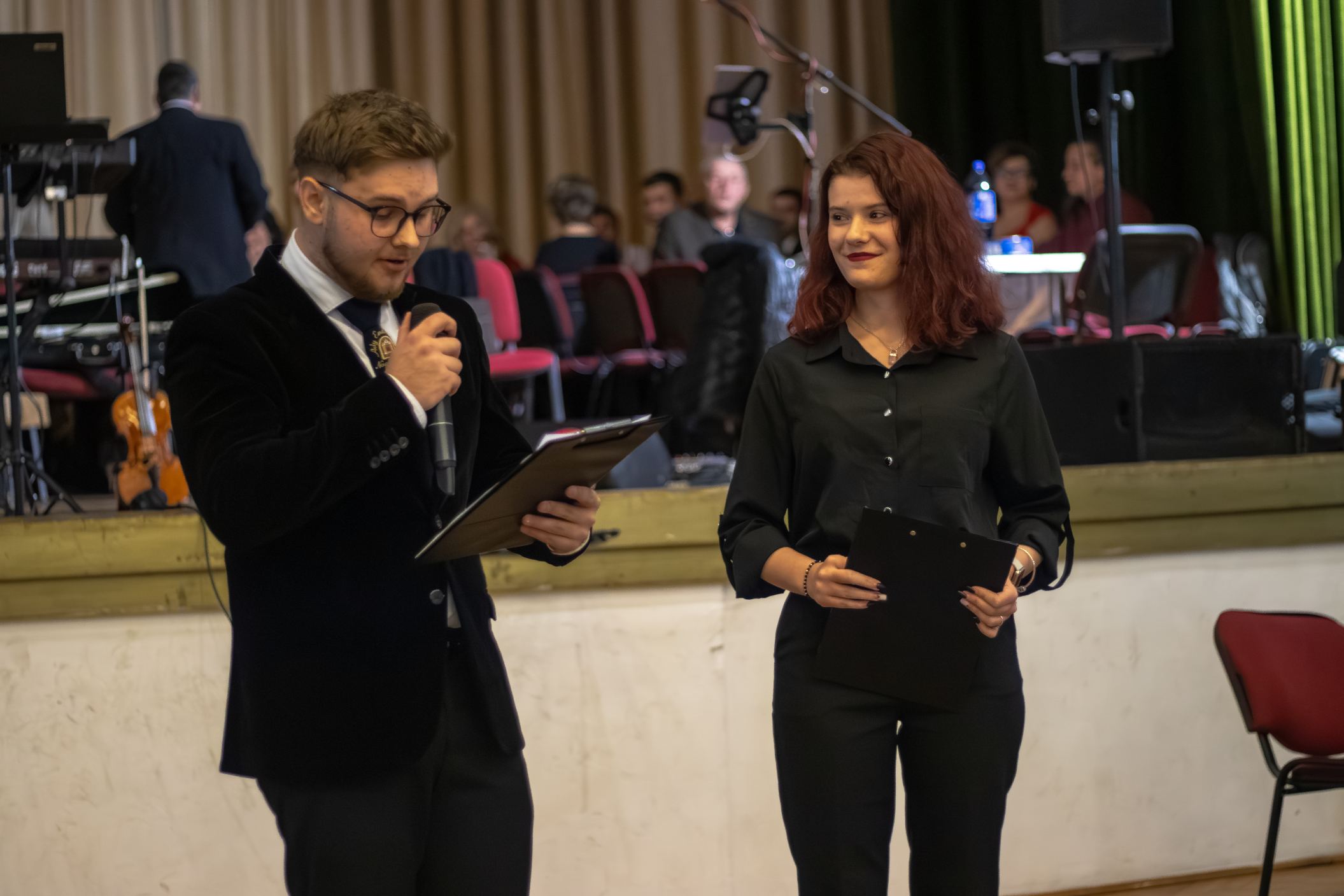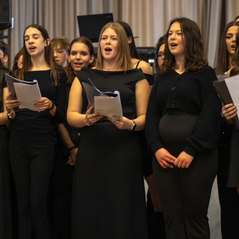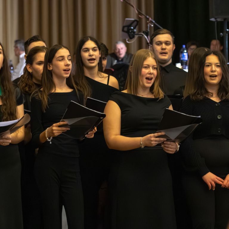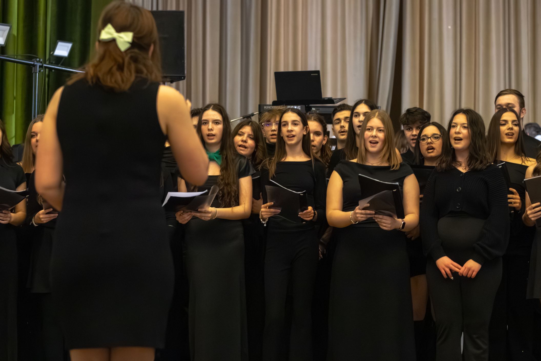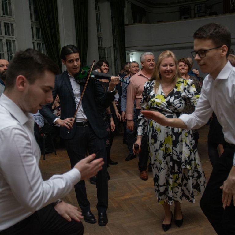 A műsorvezetői feladatokat két diák, Szalai Bernadett Anita és Szekrényes Kristóf Zsolt látta el. Az est hangulatát az iskola kórusa alapozta meg ezután. A Galambos-Szendrei Mónika és Csepregi Imola tanárnők által felkészített fiatalok zsidó énekeket adtak elő.