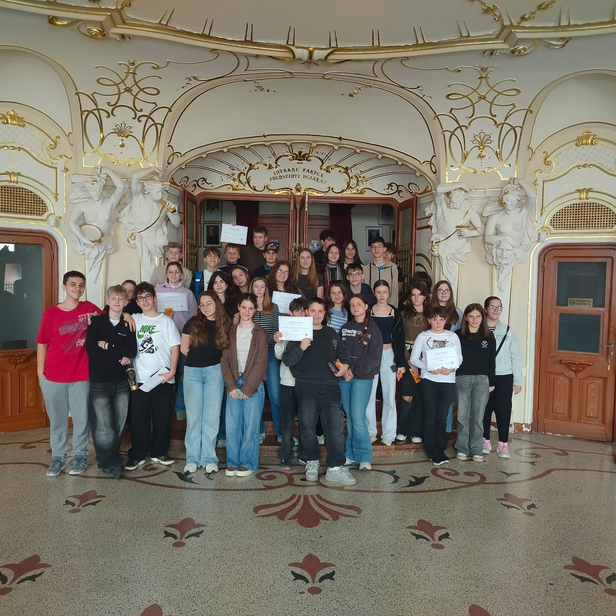 A tegnapi nap folyamán interaktív játékra hívtuk a velünk egykorú generációt a Szigligeti színházba. Célunk az volt, hogy megismertessük és közelebb hozzuk azt a kulturális szentélyt, amit a színház képvisel városunk szívében. Ezért egy kincskereső játékot szerveztünk, amelyen a város több iskoláját – a német tannyelvű Friedrich Schiller líceumot, a Művészeti Líceumot, a Szacsvay Imre Általános Iskolát, a Lorántffy Zsuzsanna Református Gimnáziumot, az Ady Endre Elméleti Líceumot – is meg tudtuk szólítani. Természetesen óriási köszönet illeti a színház vezetését, hisz nélkülük nem sikerült volna megvalósítani a tevékenységet. Jó volt veletek, köszönjük!