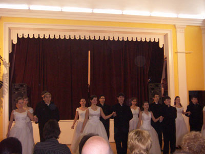 2oo7. február 17-én került sor a szülők és tanárok közös báljára, amelyet, az előző évek hagyományához híven, a diákok előadása nyitott meg. Az iskola tánccsoportjának elegáns palotása után a IX.-X.-esek Reggel hétkor című darabja következett.