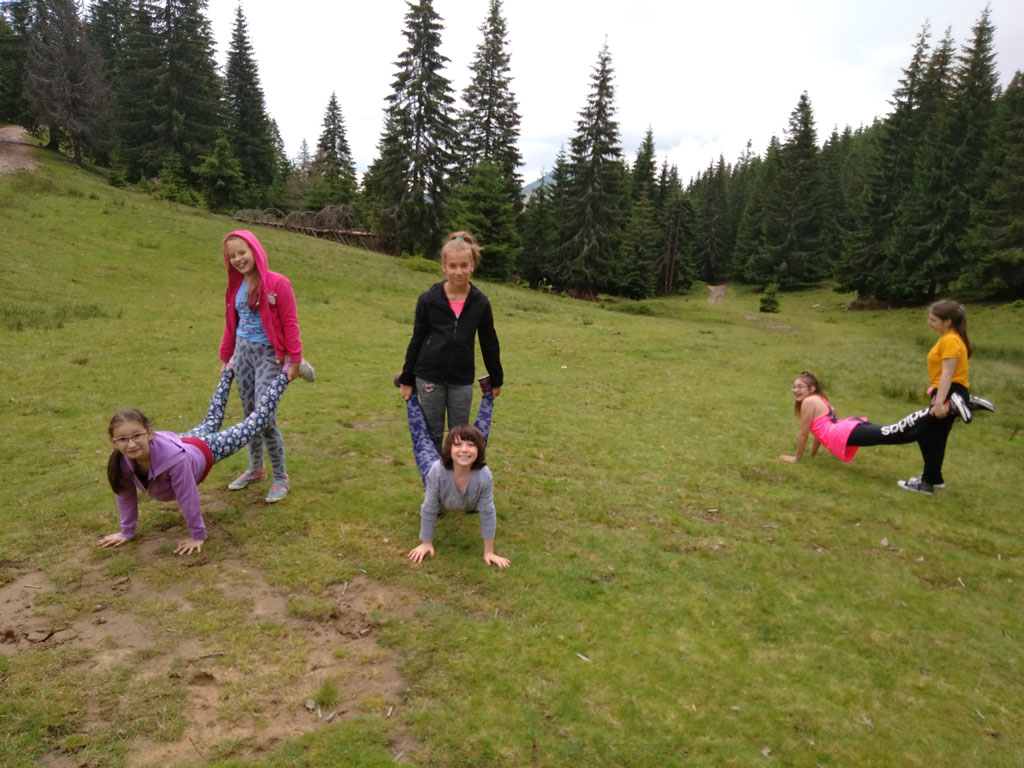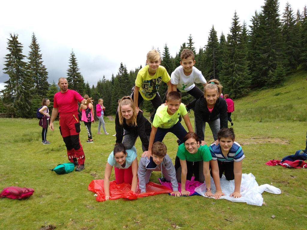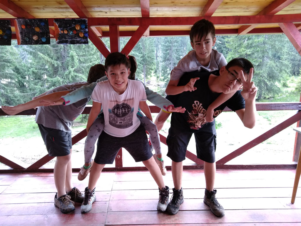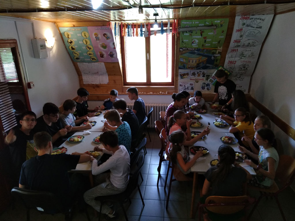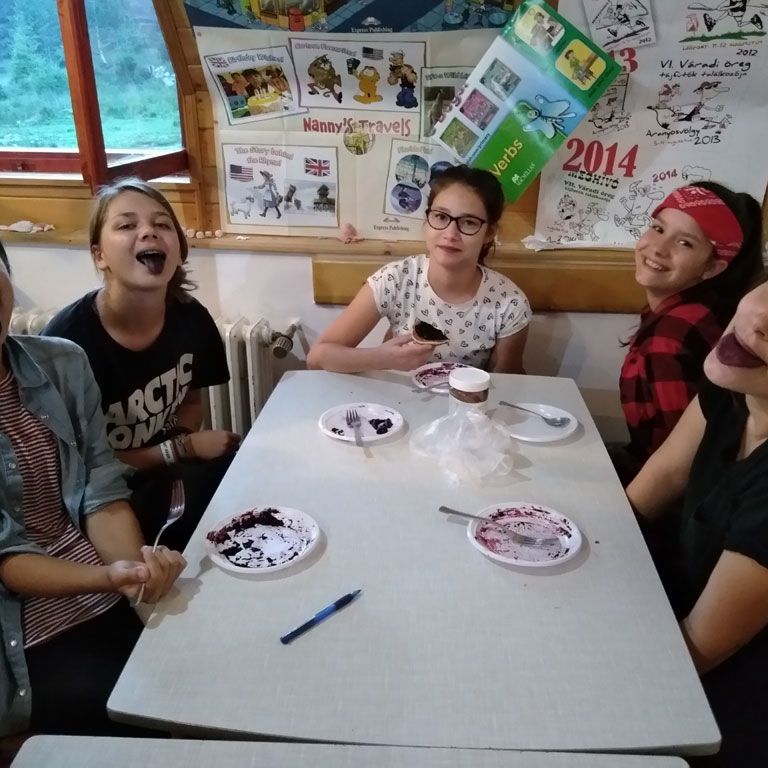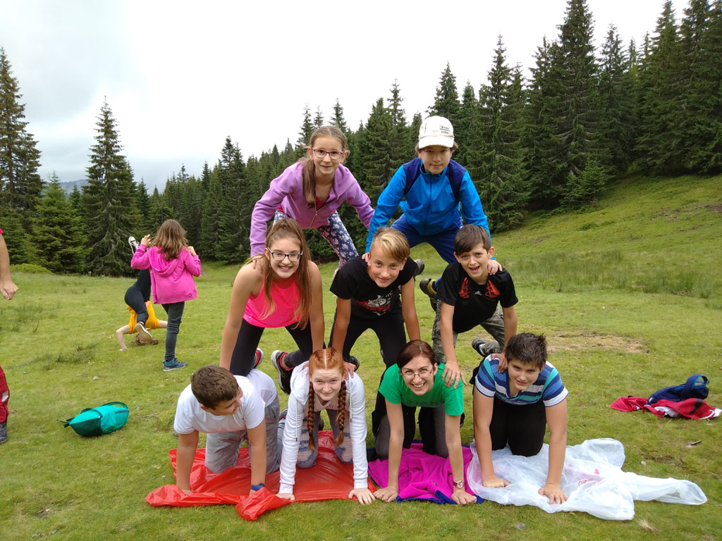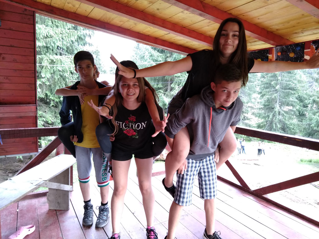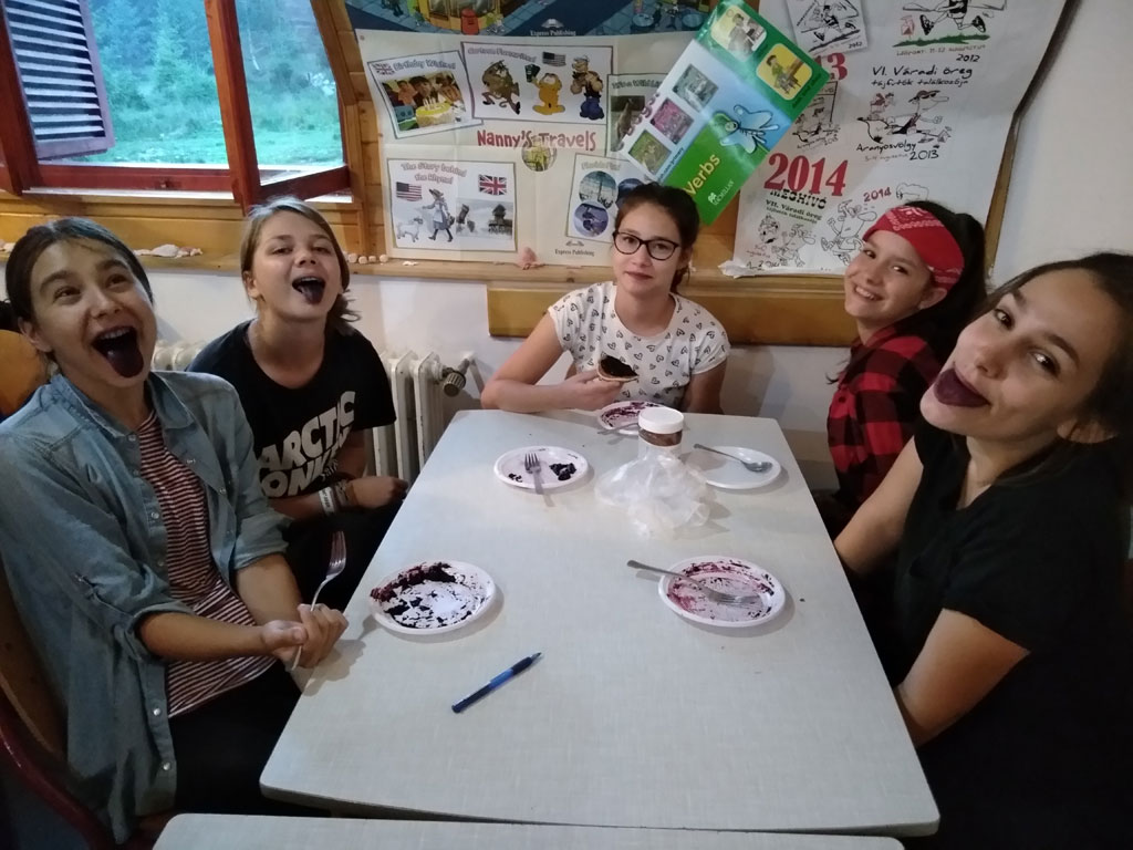 Amikor senki sem morcos, mert éppen kezdődik az angolóra, olyankor a tanár is lelkesen fog hozzá a naphoz. Egyik ötlet szüli a másikat, és észre sem veszed, hogy eltelt a nap, és még nem ültél le pihenni. Mindig akad egy hang, aki megkérdezi: “és ez után mit fogunk csinálni" vagy “és mikor lesz …”? És jutott idő mindenre! Építettünk emberpiramist a Rozsdánál, megnéztük Aranyoslápost madártávlatból, szerveztünk áfonyaszedő -versenyt, az áfonyából főztünk finom lekvárt, amit az áhított amerikai palacsintára csorgattunk, sokat gyalogoltunk, csapatot építettünk, megtanultunk tájékozódni az erdőben a turistajelzés alapján, és azt is, hogy néha az okostelefon segít, ha eltévednénk, megismertük a hegyimentők szerepét, és elcsodálkoztunk a munkájuk iránt mutatott alázaton, gyakoroltuk a mentést, megtanultuk, hogy a két napos esős idő pont jó ok egy társasjáték-maratonhoz, énekeltünk, táncoltunk (a fiúk is!), jókat ettünk, és sokat tanultunk. Volt, aki a munkalapoknak örült inkább, volt, aki a logikai feladatok kihívásainak, voltak, akik a történelem rejtelmeire voltak kíváncsiak, másokat a tudományok vagy éppen a művészet kötött le. Mindenki talált ínyére valót, és ez igy volt kerek.