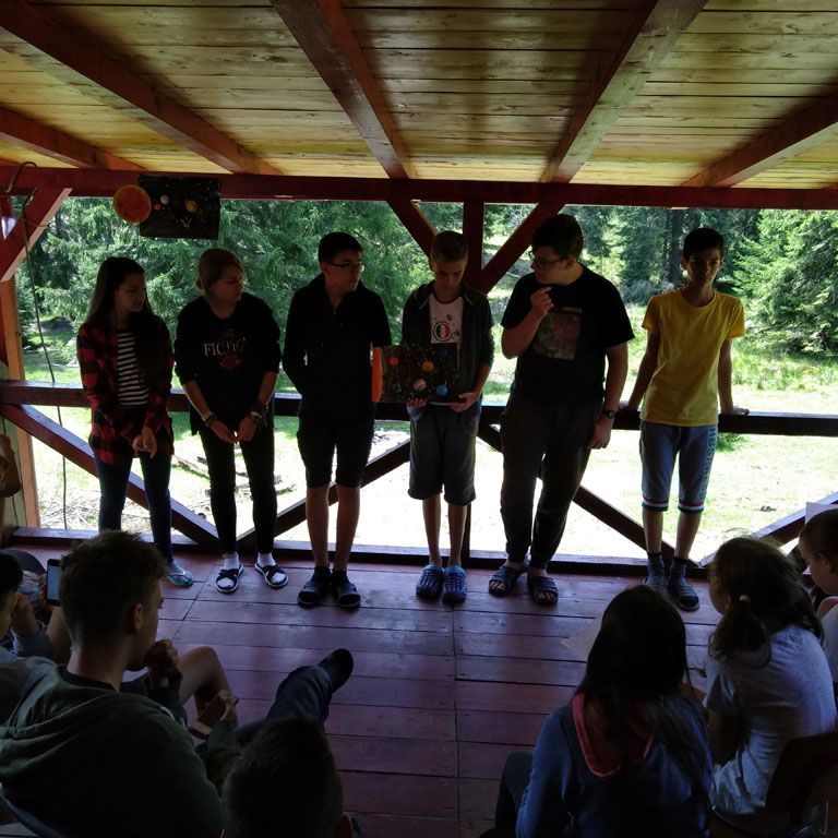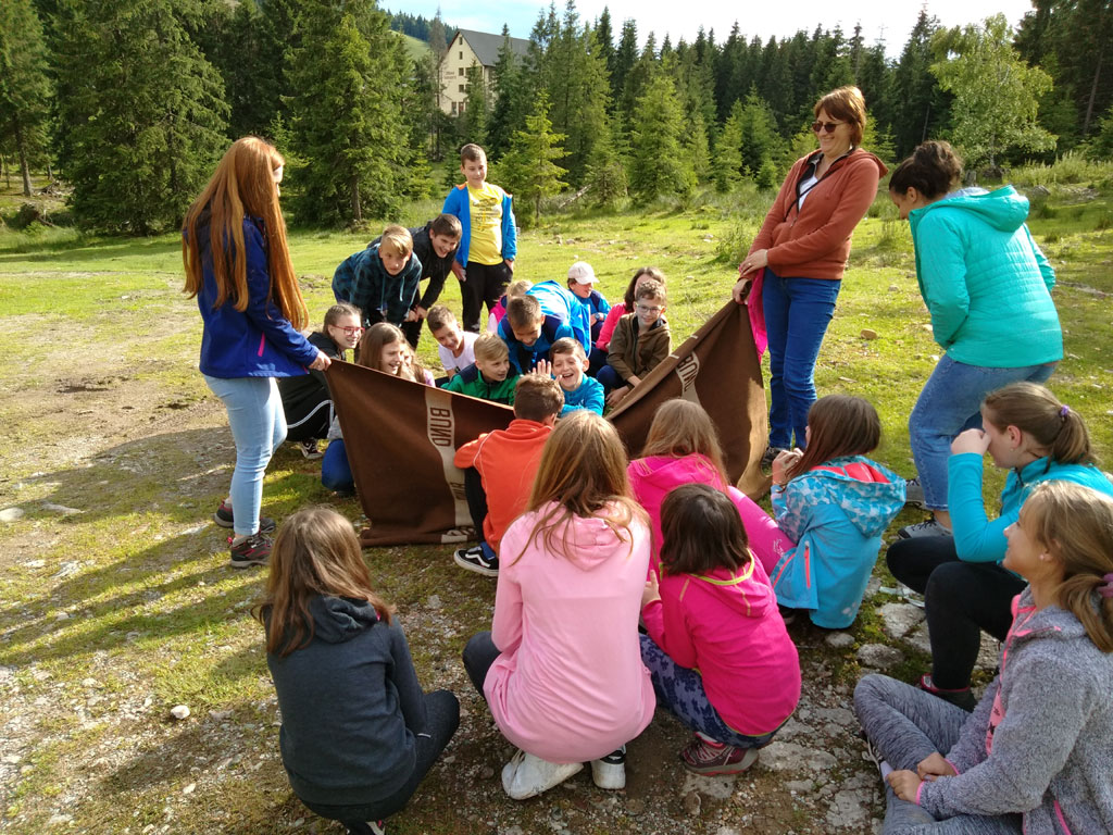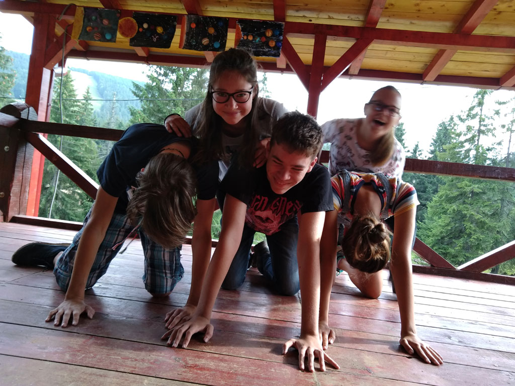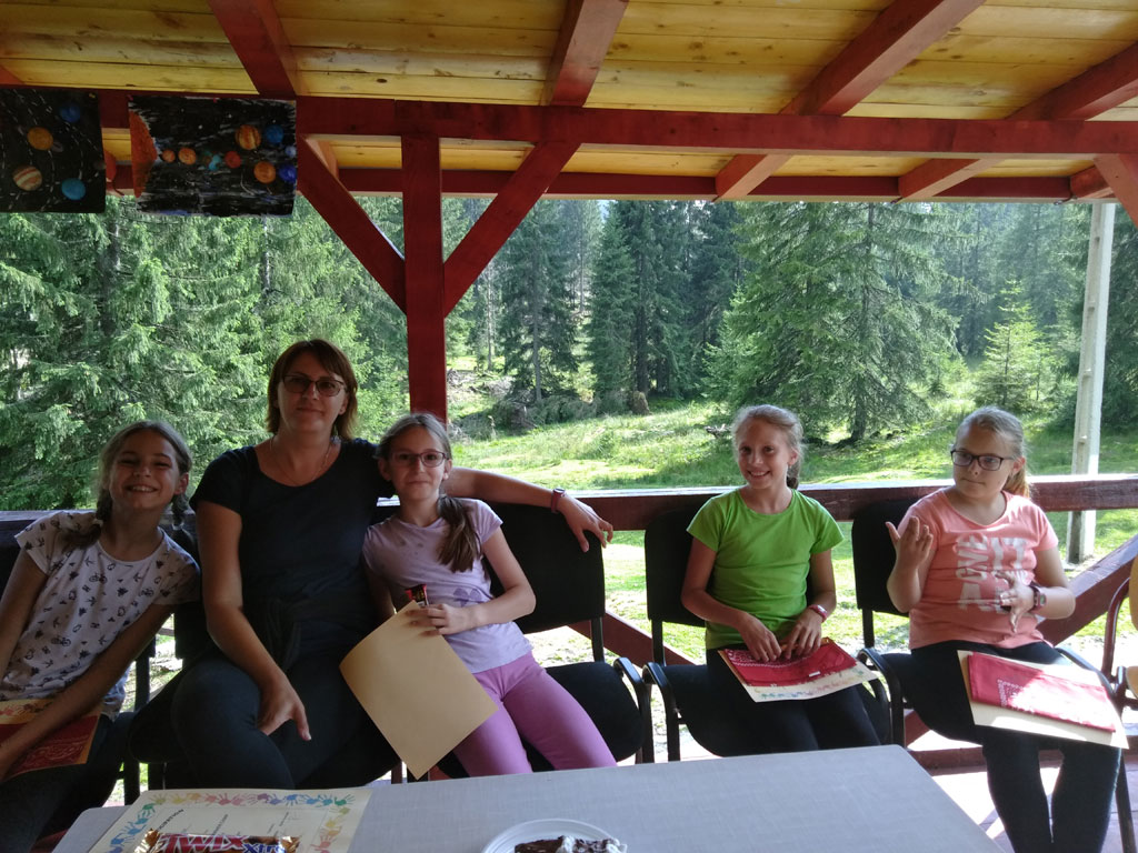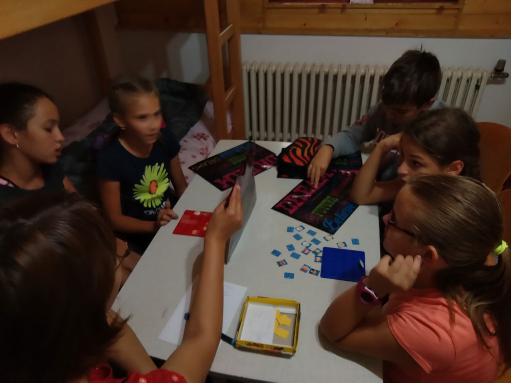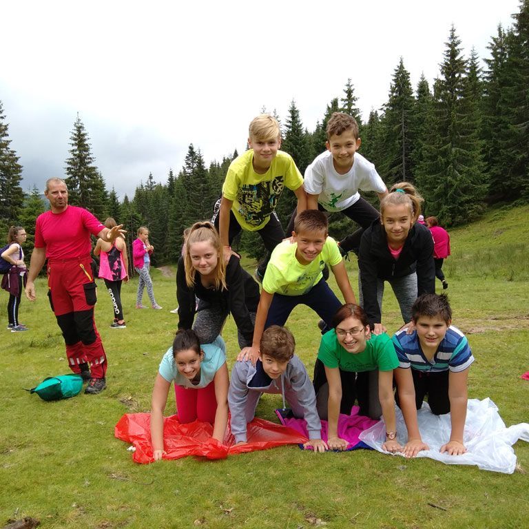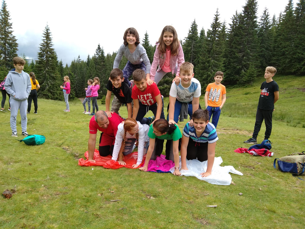 Amikor senki sem morcos, mert éppen kezdődik az angolóra, olyankor a tanár is lelkesen fog hozzá a naphoz. Egyik ötlet szüli a másikat, és észre sem veszed, hogy eltelt a nap, és még nem ültél le pihenni. Mindig akad egy hang, aki megkérdezi: “és ez után mit fogunk csinálni" vagy “és mikor lesz …”? És jutott idő mindenre! Építettünk emberpiramist a Rozsdánál, megnéztük Aranyoslápost madártávlatból, szerveztünk áfonyaszedő -versenyt, az áfonyából főztünk finom lekvárt, amit az áhított amerikai palacsintára csorgattunk, sokat gyalogoltunk, csapatot építettünk, megtanultunk tájékozódni az erdőben a turistajelzés alapján, és azt is, hogy néha az okostelefon segít, ha eltévednénk, megismertük a hegyimentők szerepét, és elcsodálkoztunk a munkájuk iránt mutatott alázaton, gyakoroltuk a mentést, megtanultuk, hogy a két napos esős idő pont jó ok egy társasjáték-maratonhoz, énekeltünk, táncoltunk (a fiúk is!), jókat ettünk, és sokat tanultunk. Volt, aki a munkalapoknak örült inkább, volt, aki a logikai feladatok kihívásainak, voltak, akik a történelem rejtelmeire voltak kíváncsiak, másokat a tudományok vagy éppen a művészet kötött le. Mindenki talált ínyére valót, és ez igy volt kerek.