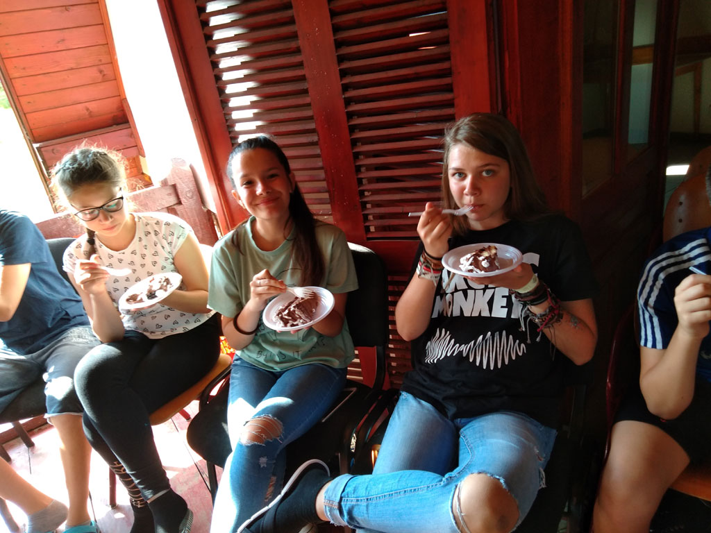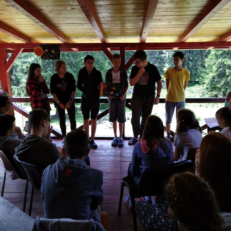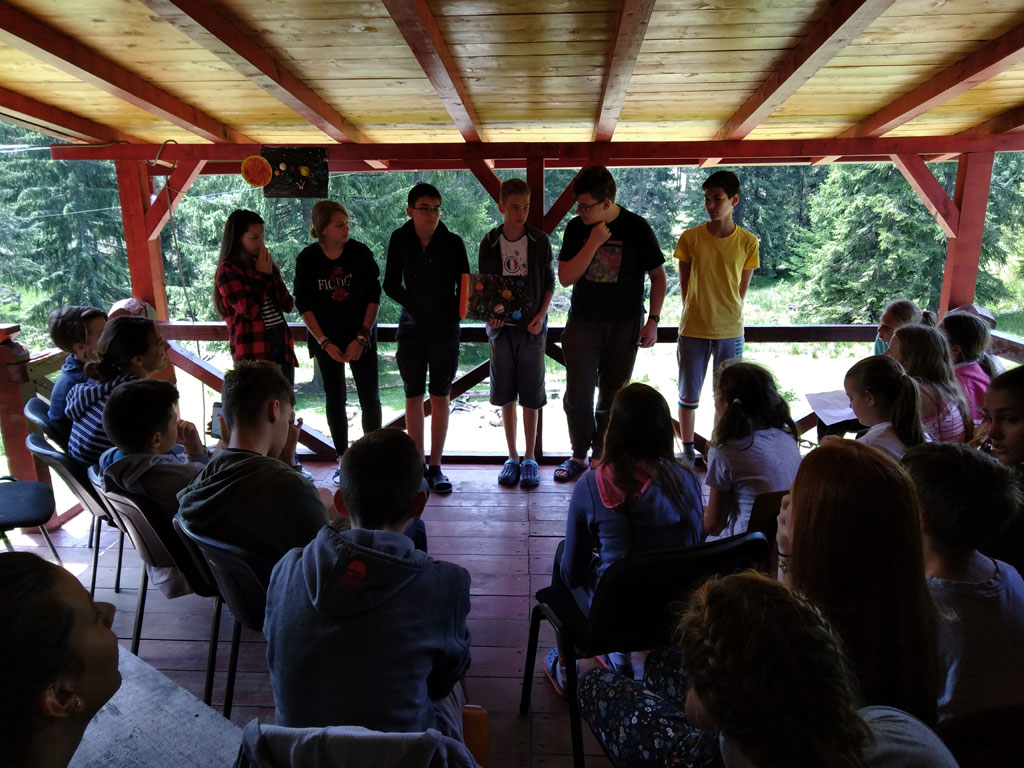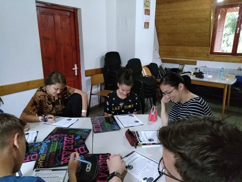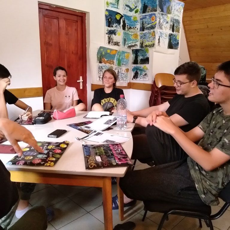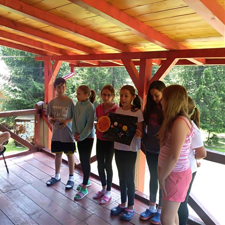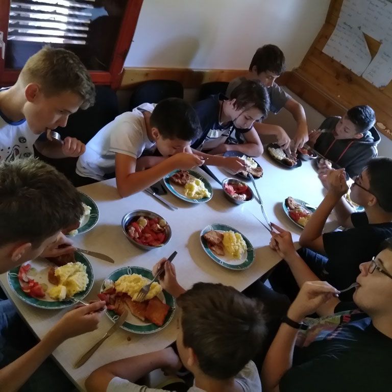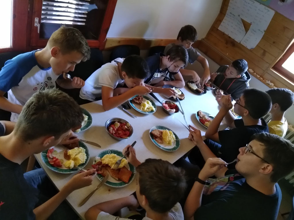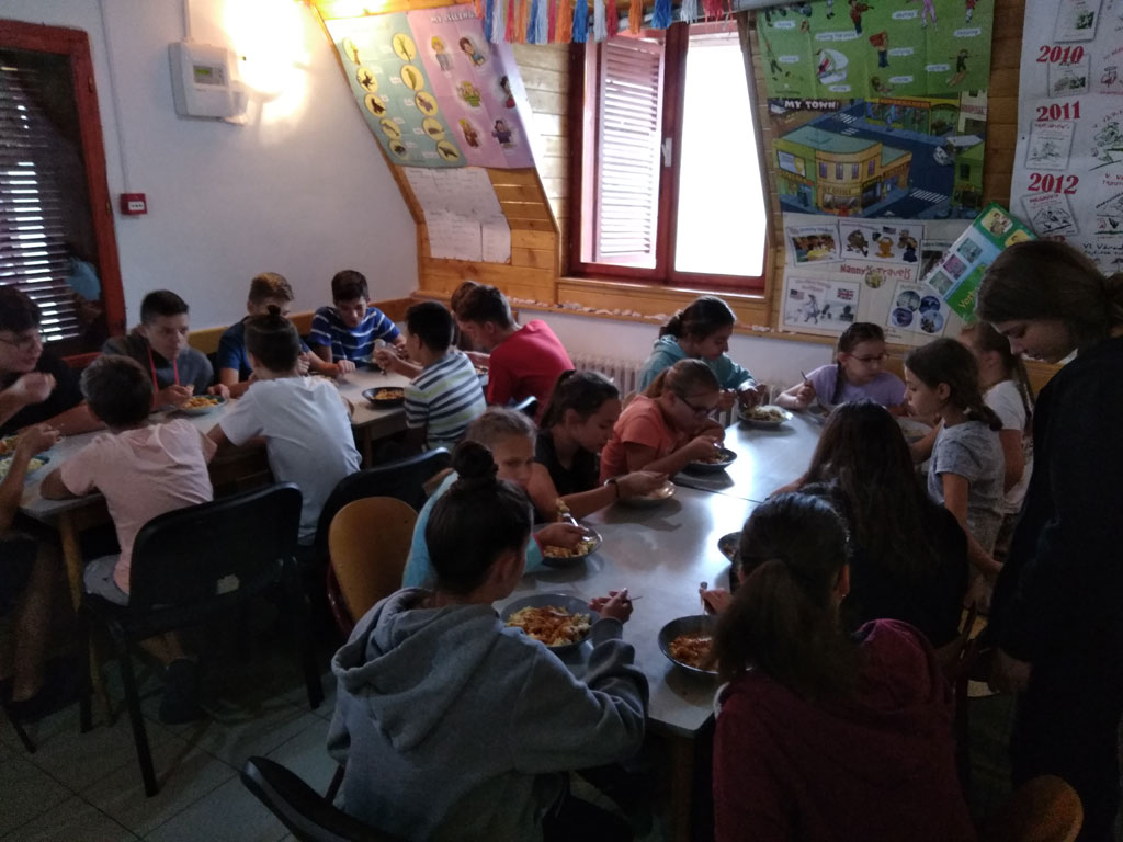 Amikor senki sem morcos, mert éppen kezdődik az angolóra, olyankor a tanár is lelkesen fog hozzá a naphoz. Egyik ötlet szüli a másikat, és észre sem veszed, hogy eltelt a nap, és még nem ültél le pihenni. Mindig akad egy hang, aki megkérdezi: “és ez után mit fogunk csinálni" vagy “és mikor lesz …”? És jutott idő mindenre! Építettünk emberpiramist a Rozsdánál, megnéztük Aranyoslápost madártávlatból, szerveztünk áfonyaszedő -versenyt, az áfonyából főztünk finom lekvárt, amit az áhított amerikai palacsintára csorgattunk, sokat gyalogoltunk, csapatot építettünk, megtanultunk tájékozódni az erdőben a turistajelzés alapján, és azt is, hogy néha az okostelefon segít, ha eltévednénk, megismertük a hegyimentők szerepét, és elcsodálkoztunk a munkájuk iránt mutatott alázaton, gyakoroltuk a mentést, megtanultuk, hogy a két napos esős idő pont jó ok egy társasjáték-maratonhoz, énekeltünk, táncoltunk (a fiúk is!), jókat ettünk, és sokat tanultunk. Volt, aki a munkalapoknak örült inkább, volt, aki a logikai feladatok kihívásainak, voltak, akik a történelem rejtelmeire voltak kíváncsiak, másokat a tudományok vagy éppen a művészet kötött le. Mindenki talált ínyére valót, és ez igy volt kerek.