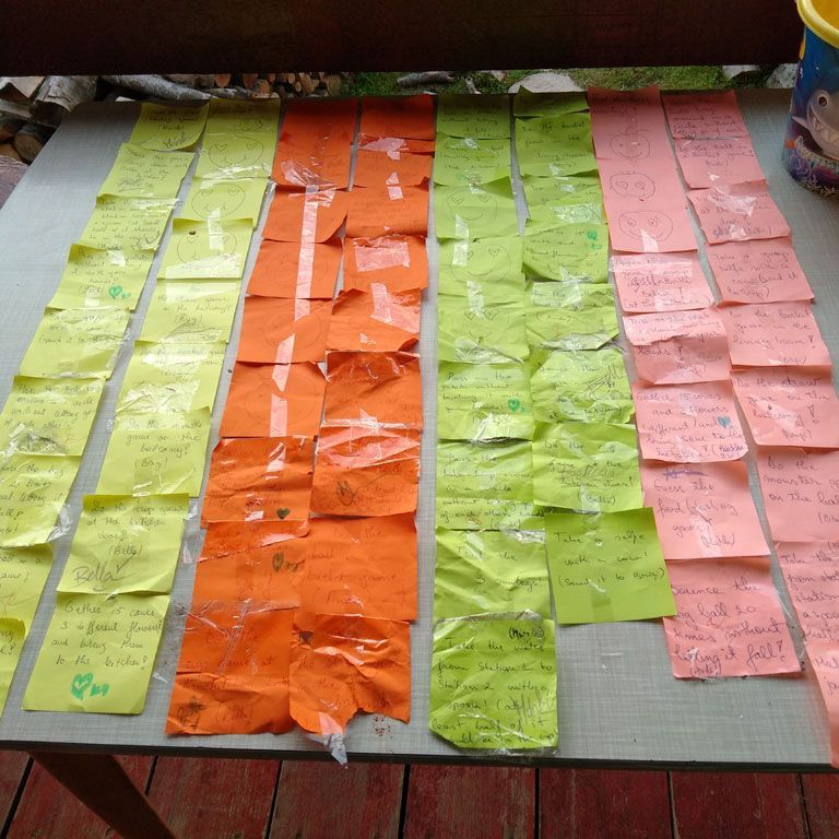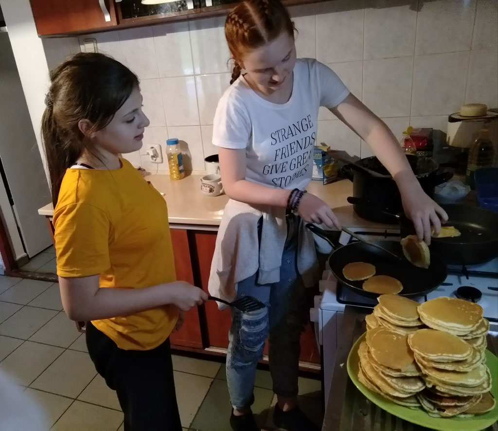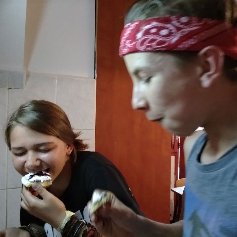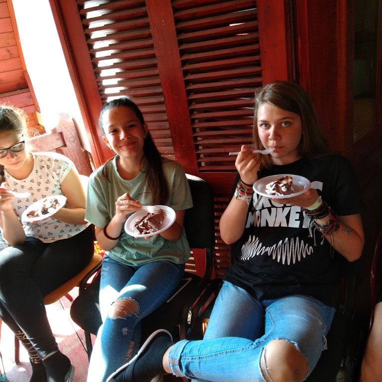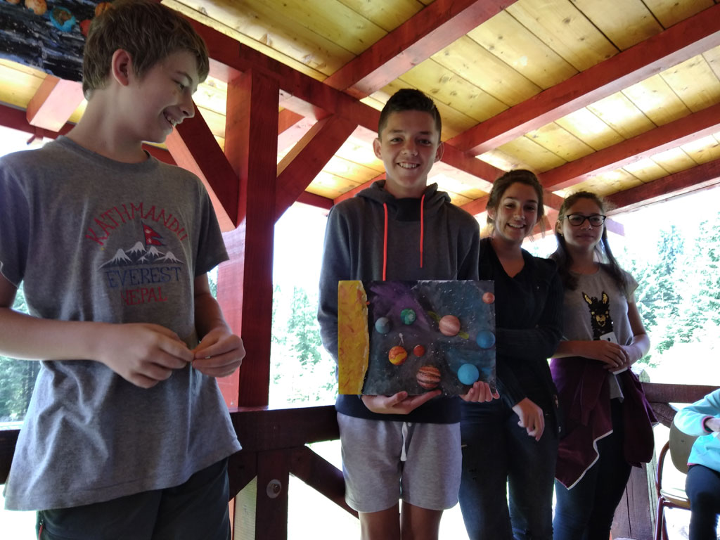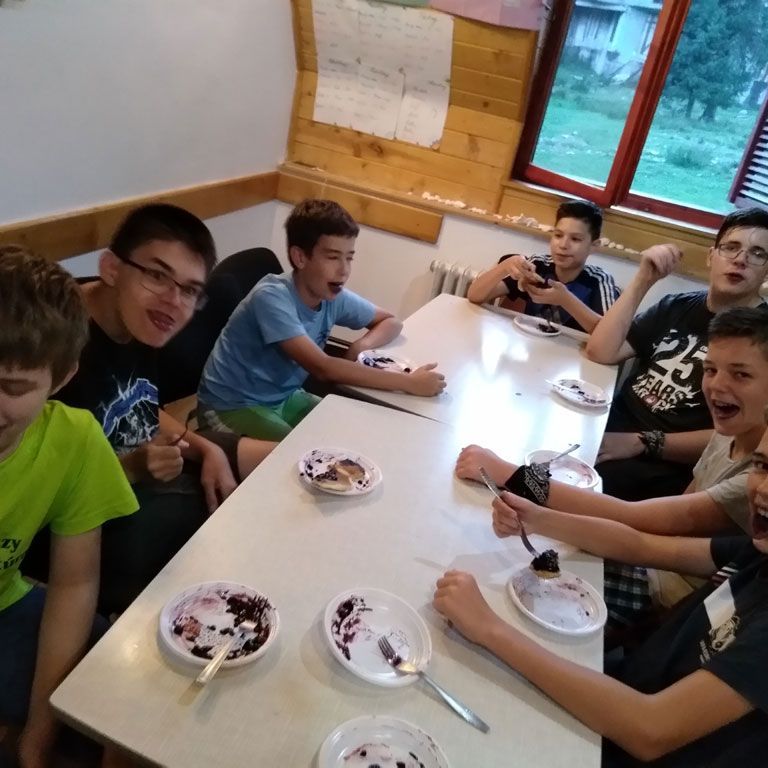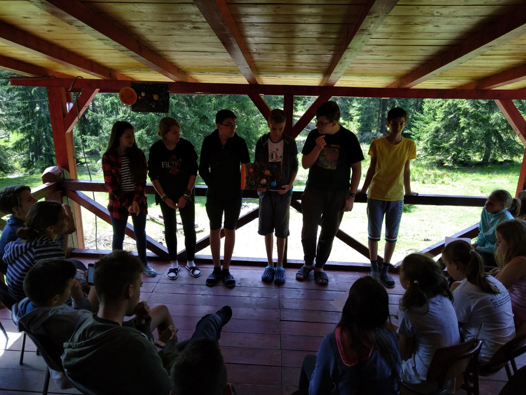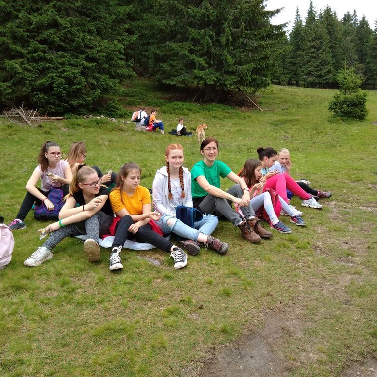 Amikor senki sem morcos, mert éppen kezdődik az angolóra, olyankor a tanár is lelkesen fog hozzá a naphoz. Egyik ötlet szüli a másikat, és észre sem veszed, hogy eltelt a nap, és még nem ültél le pihenni. Mindig akad egy hang, aki megkérdezi: “és ez után mit fogunk csinálni" vagy “és mikor lesz …”? És jutott idő mindenre! Építettünk emberpiramist a Rozsdánál, megnéztük Aranyoslápost madártávlatból, szerveztünk áfonyaszedő -versenyt, az áfonyából főztünk finom lekvárt, amit az áhított amerikai palacsintára csorgattunk, sokat gyalogoltunk, csapatot építettünk, megtanultunk tájékozódni az erdőben a turistajelzés alapján, és azt is, hogy néha az okostelefon segít, ha eltévednénk, megismertük a hegyimentők szerepét, és elcsodálkoztunk a munkájuk iránt mutatott alázaton, gyakoroltuk a mentést, megtanultuk, hogy a két napos esős idő pont jó ok egy társasjáték-maratonhoz, énekeltünk, táncoltunk (a fiúk is!), jókat ettünk, és sokat tanultunk. Volt, aki a munkalapoknak örült inkább, volt, aki a logikai feladatok kihívásainak, voltak, akik a történelem rejtelmeire voltak kíváncsiak, másokat a tudományok vagy éppen a művészet kötött le. Mindenki talált ínyére valót, és ez igy volt kerek.