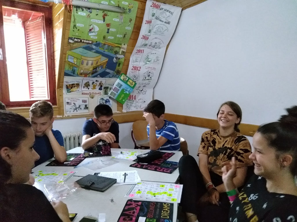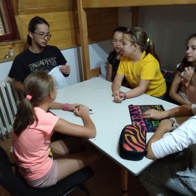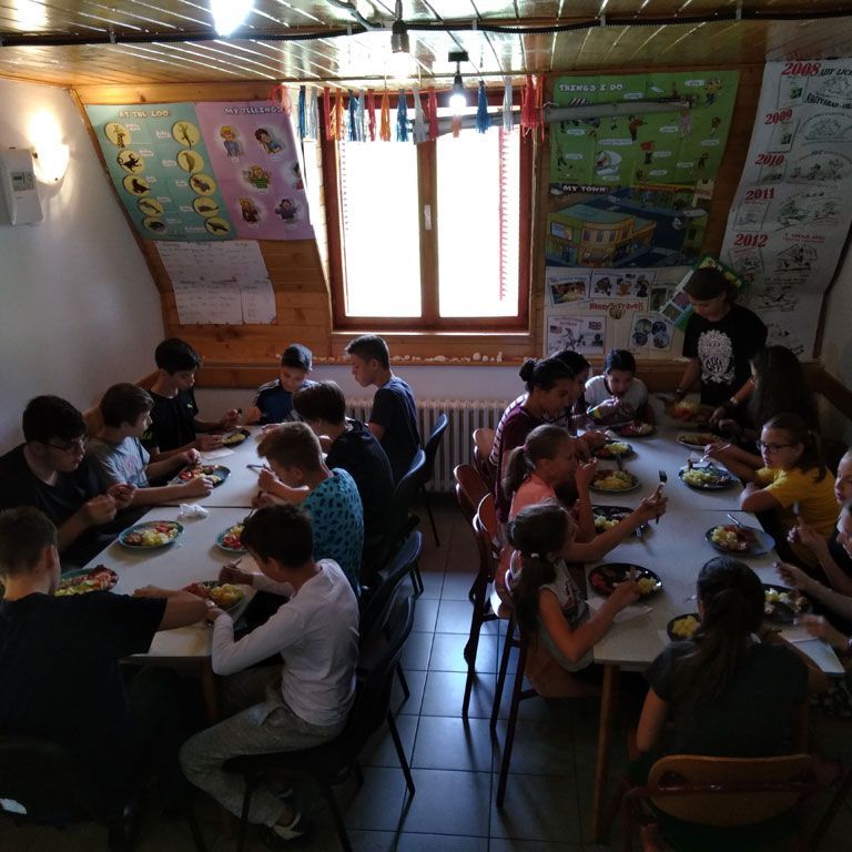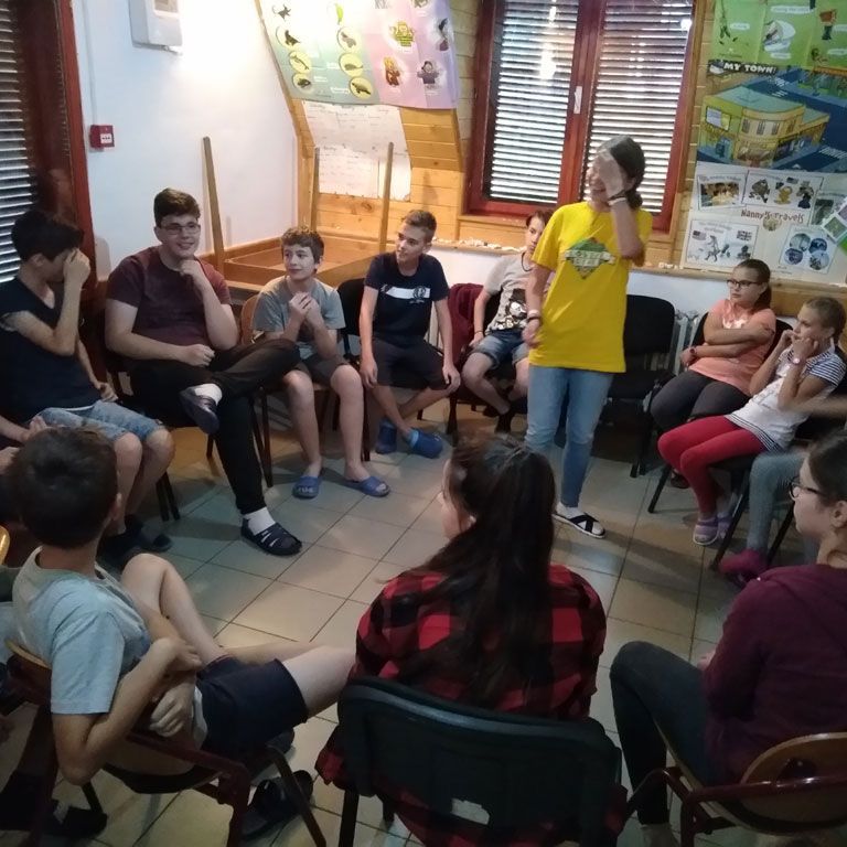 A bizonyíték arra, hogy az ember mindig tanul, és játszva tanul a legkönnyebben, akkor mutatkozik meg tisztán, amikor a gyerek saját kezébe veszi az irányítást. Az angol nyelvű táborok lényege az, hogy nemcsak néhány foglalkozás erejéig tanulunk angolul, hanem az ébrenlét minden pillanatában. Tanulunk kedvesek lenni egymáshoz, toleránsan elfogadni mások véleményét, vidám mosollyal és hangos “Good morning!”-gal kezdeni a napot, meghallgatni egymás mondandóját, amit néha könnyebb kibökni angolul, tanuljuk a rendrakást, a főzést, a mosogatás fortélyait, tanulunk kitartóan túrázni és örülni minden percnek, egyszóval élni tanulunk egymással, egymásért, egymás mellett!