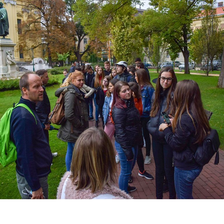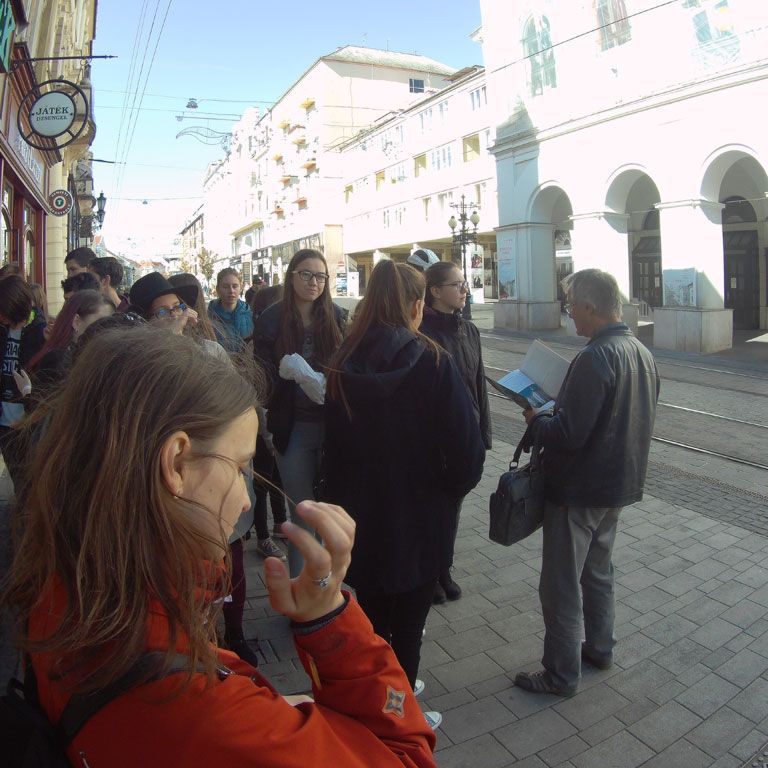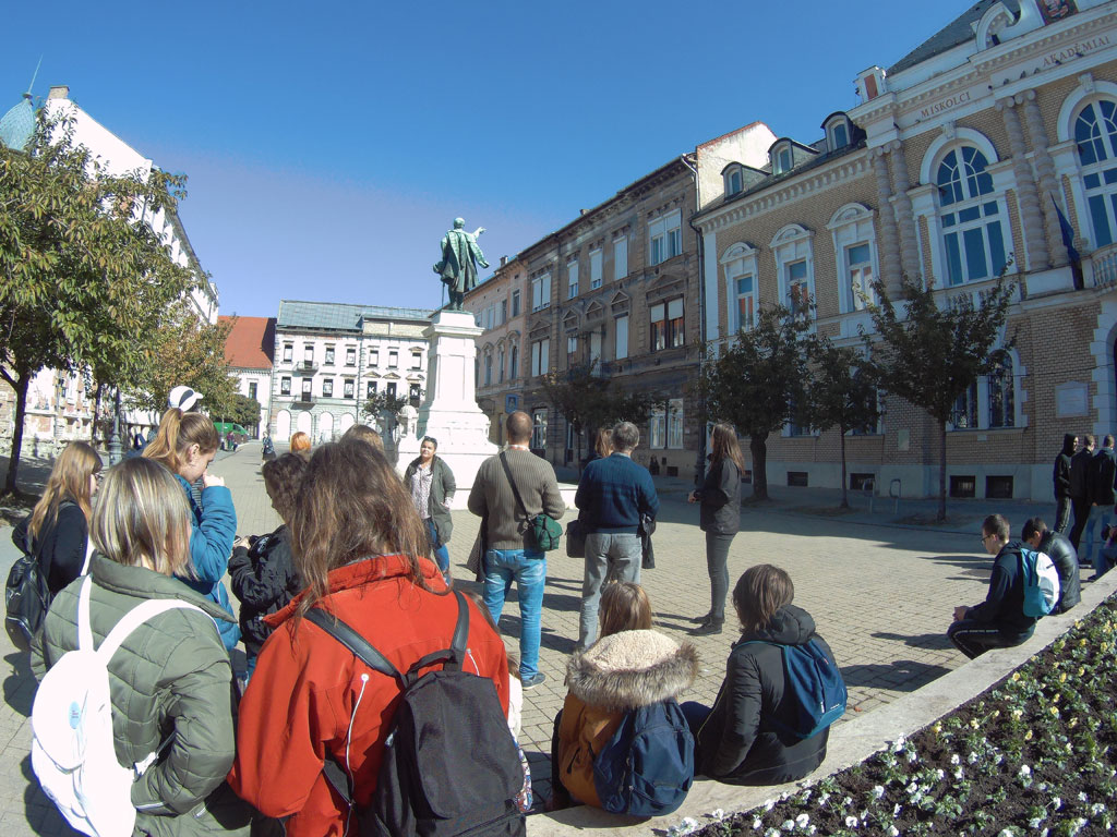 Utolsó nap közös belvárosi sétán vettünk részt, megnéztük a templomokat, múzeumokat (Pannon Tenger-, Színész Múzeum), nevezetes épületeket (Városháza, Megyeháza, Akadémia, Erdészeti székház, Zenepalota), tereket (Kossuth, Deák, Szent István), szobrokat. Megnéztük csonka Magyarország első kőszínházát, a Miskolci Nemzeti Színház épületét, valamint Mancsnak, a híres mentőkutyának a szobrát, aki sok embernek megmentette az életét.