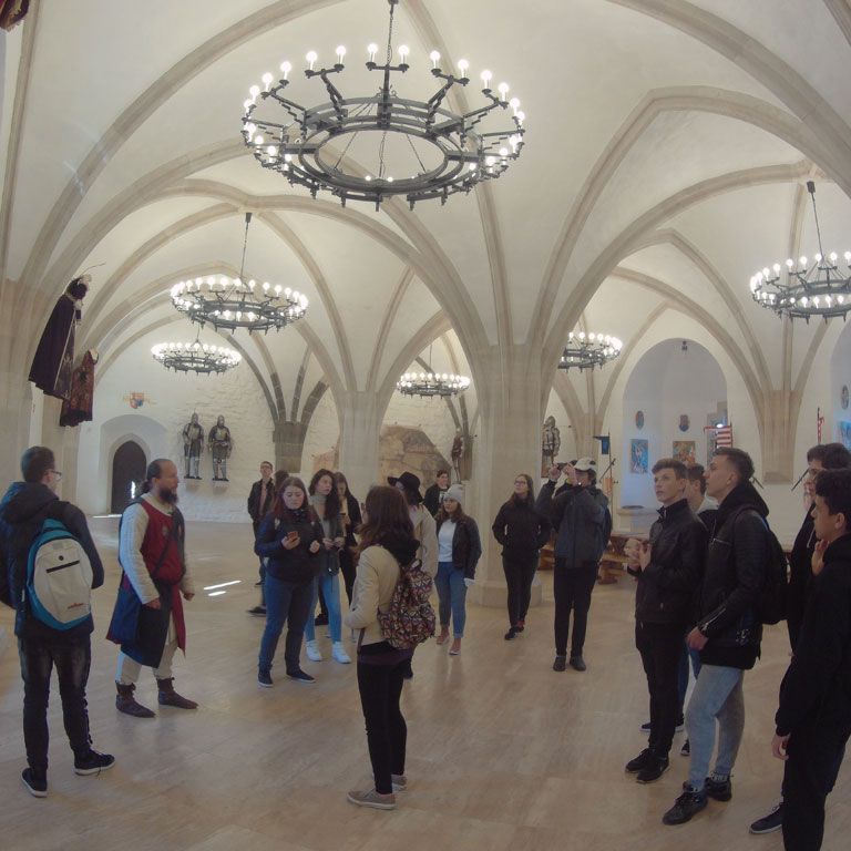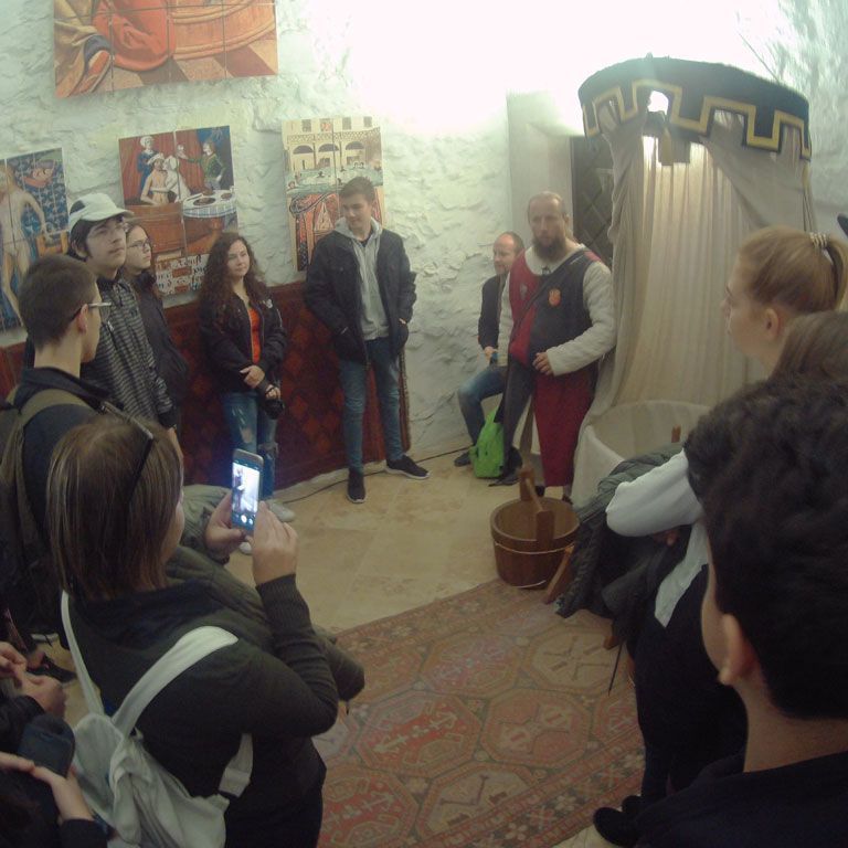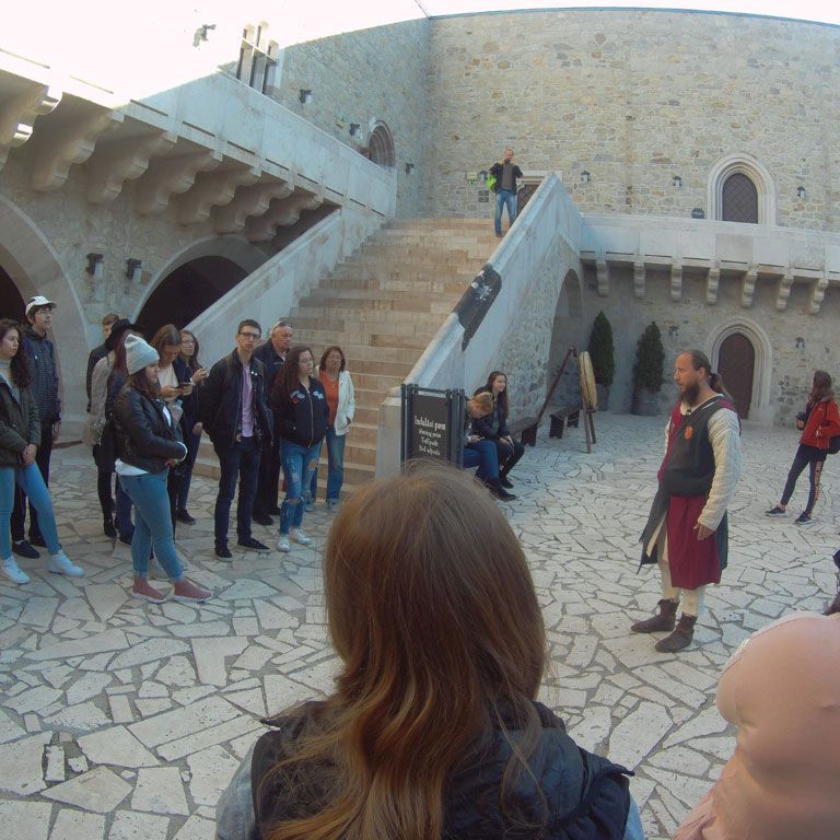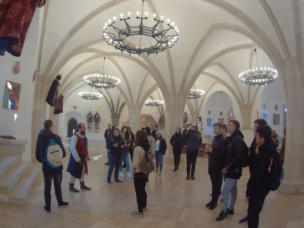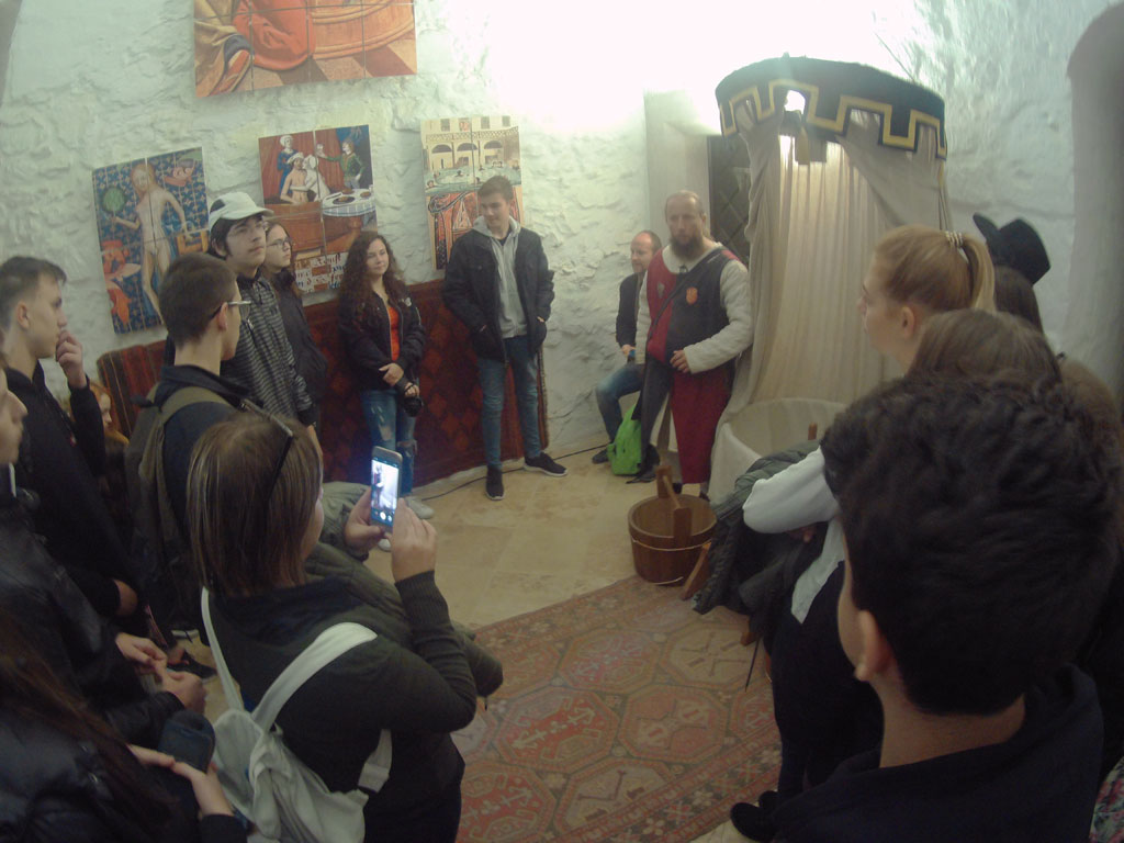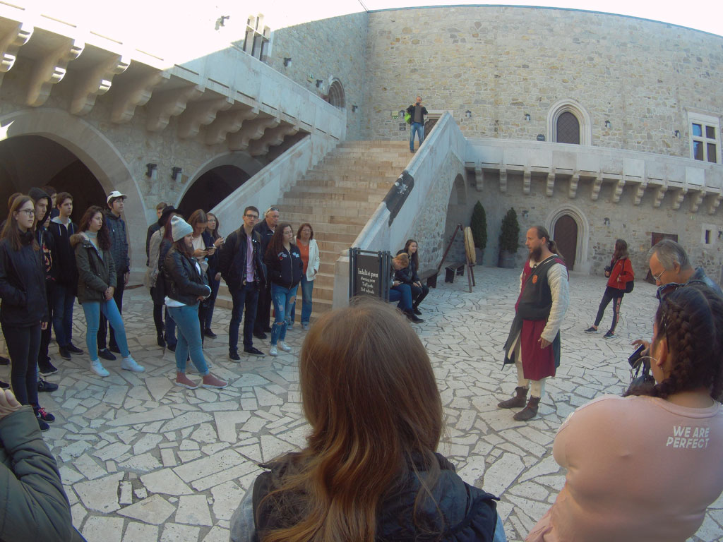 Csütörtökön a tanulmányút a diósgyőri várban folyatódott, amely fénykorát Nagy Lajos király uralkodása alatt érte el. Itt idegenvezetőnk korabeli stílusban mutatta be a várat, amin mindenki nagyon jól szórakozott. Megnéztük a különféle régi szakmák kiállításait, s Közép-Európa legnagyobb lovagtermében korhű muzsikát hallgatunk. Az edzettebbek a vártoronyba is felkapaszkodhattak, ahonnan pazar kilátás nyílt a tájra. A bejáratnál megkoszorúztuk Nagy Lajos király szobrát, és kihelyezett történelemórán vettünk részt. A vár mellett megnéztük Déryné Széppataki Rózának, a vándorszínészet hőskora jeles alakjának a házát és emléktábláját. Ebéd után kiutaztunk Lillafüredre, a Bükkbe. Megcsodáltuk a Palotaszállót, a felújított függőkerteket, a Szinva-patak vízesését és a Hámori-tavat, amelyen télen korcsolyázni, nyáron csónakázni lehet. József Attila szobránál irodalomórán vettünk részt. Megnéztük a Szent István-cseppkőbarlangot, valamint megismerkedtünk Herman Ottó – korának utolsó polihisztora – munkáságával. Hámorban megtekintettük a Fazola család által alapított kohászati múzeumot és az Őskohót.