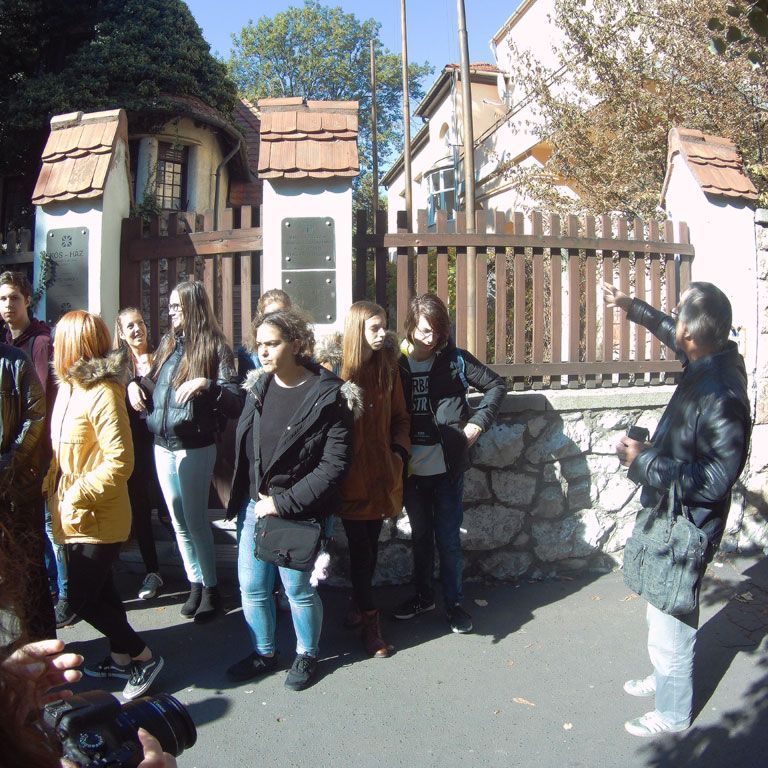 Kedden egy egész napos kiránduláson vettünk részt Budapesten. Az állatkertben megnéztük a Kós Károly által tervezett épületeket, a bejárati főkaput, a madár-, bivaly-, majom-, bölény- és elefántházat, valamint a sziklát. Kihelyezett építészet- és művészettörténet órán beszéltünk Kós Károly munkásságáról, a népi építészet stílusjegyeiről, magyarországi építészeti munkásságáról. Ezután megnéztük a Hősök terét, végigsétáltunk a világörökség részeként ismert Andrássy úton, megnéztük a Szent István bazilikát és a Szabadság téren át eljutottunk az Országház épületéhez, ahol egy érdekes történelemórán vettünk részt. Hazafele menet meglátogattuk a Wekerle-telepet. Kós Károly a főtér kialakítására kiírt 1912-es pályázat során zártsorú beépítést javasolt. Előírásához alkalmazkodtak az általa meghívott építészek. Kós zsenialitását a téren álló 2-es és 3-as számú házak, valamint a köztük feszülő kapu dicséri. A főtéren – ma Kós Károly tér – áll az építész-polihisztor szobra. Itt előadást hallgattunk munkásságáról.