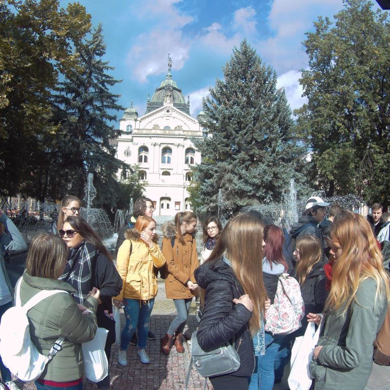 A program első állomásaként Debrecen belvárosával, jeles épületeivel ismerkedtünk meg, valamint rövid látogatást tettünk a helyi Civil Ifjúsági Centrumban.