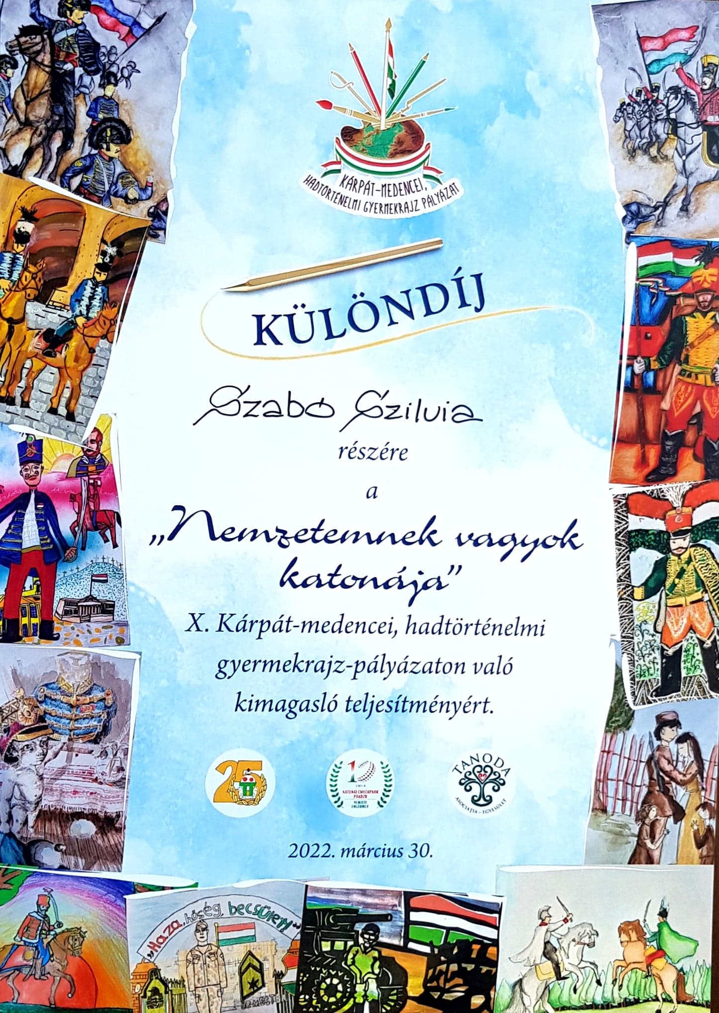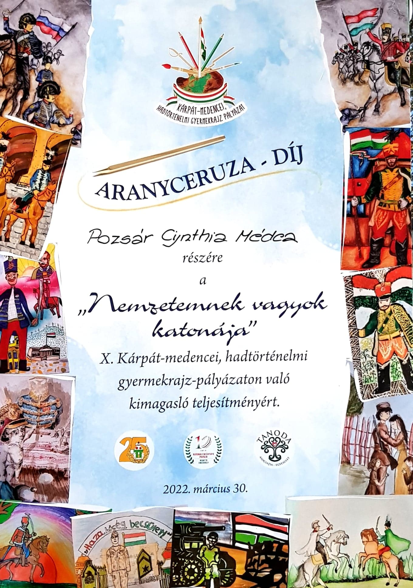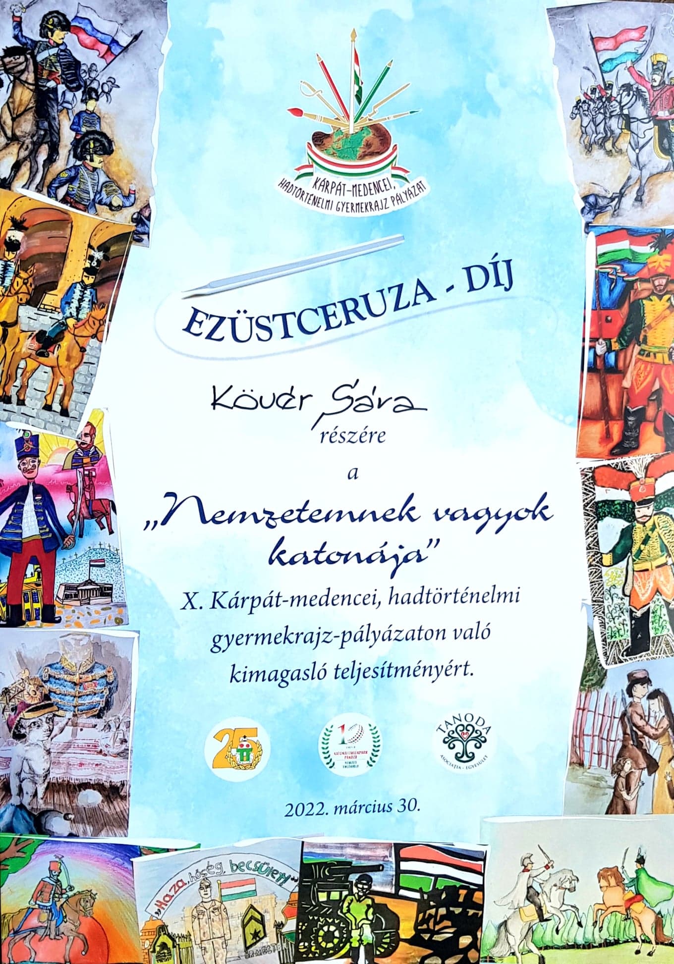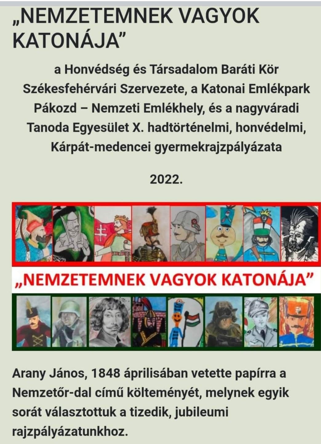 A Honvédség és Társadalom Baráti Kör Székesfehérvári Szervezete, a Katonai Emlékpark Pákozd – Nemzeti Emlékhely, és a nagyváradi Tanoda Egyesület X. hadtörténelmi, honvédelmi, Kárpát-medencei gyermekrajzpályázata immár tizedik éve teremt alkalmat hadtörténelmünk, s annak ismert vagy névtelen hősei, fontos eseményei vagy meghatározó helyszínei jobb megismerésére, s az ahhoz kapcsolódó egyéni vagy csoportos alkotásra.