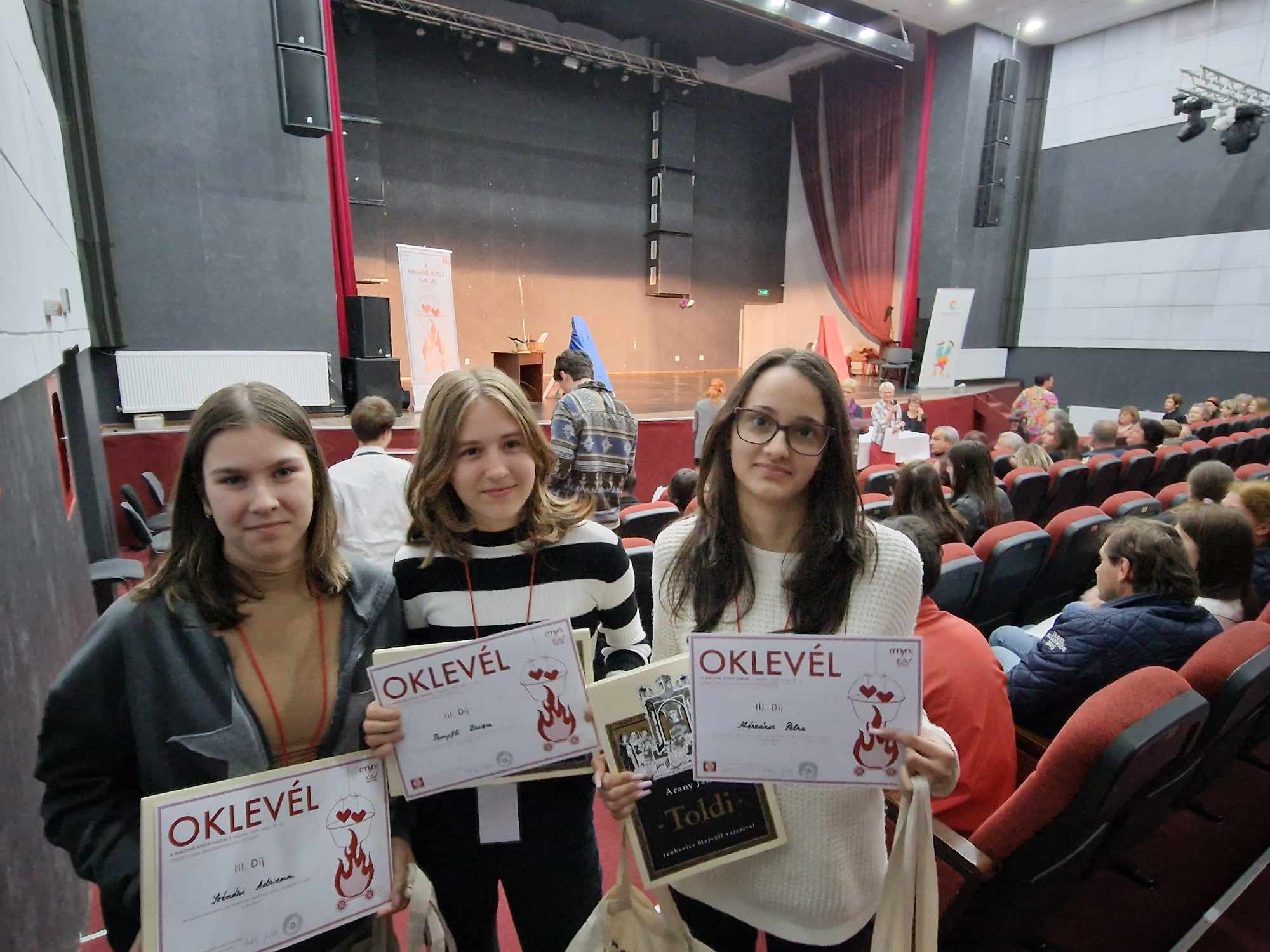 A Brassó megyei Négyfaluban rendezték meg idén a Kőrösi Csoma Sándor Anyanyelvi Vetélkedő országos szakaszát, melyre – megyei első helyezésével – 2 adys csapat is megszerezte a részvételi jogot. Az 5-8. osztályos korcsoportban a nyolcadikos Mészáros Petra, Szénási Adrienn, Tempfli Zsuzsa alkotta Pergelt tészták csapatnak az Eszem-iszom, dínom-dánom a szólásainkban témakörből kellett felkészülnie: evéssel, étkezéssel kapcsolatos szólásaink jelentését és eredetét kellett felkutatnia, illetve olyan filmes prezentációt kellett bemutatnia, melyben egy hagyományos magyar ételt készítenek el, miközben bemutatják a települést is (történelmét, nevének eredetét), ahonnan az étel származik. A csapat a Bihar megyei Anton főzött pergelt leves elkészítését, az étel nevének jelentését, az irodalomban való megjelenését mutatta be a verseny népes közönségének. Teljesítményüket III.díjjal jutalmazta a zsűri.