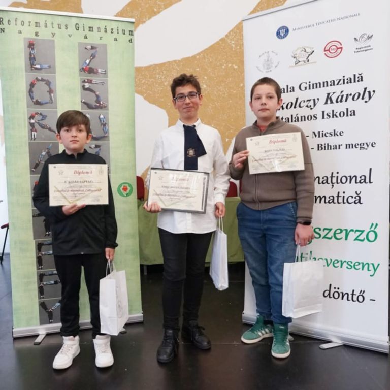Sikeresen szerepelt iskolánk a Csillagszerző matematikaverseny országos szakaszán. Idén négy diák nyerte el a jogot, hogy szerepelhessen az országos fordulóban. A megmérettetésen a tanulók kiváló eredményeket értek el: Kulcsár Rafael (5. osztály) és Bors Balázs (6.A. osztály) dicséretben részesült kitartó munkájuk és szép teljesítményük elismeréseként, míg Nagy Mózes Dániel (6.A. osztály) tanulónk a dobogó harmadik fokára állhatott fel. Az újabb sikeres verseny nemcsak a diákok szorgalmát, hanem iskolánk matematikai felkészítésének magas színvonalát is bizonyítja. Gratulálunk minden résztvevőnek, és további sikereket kívánunk!