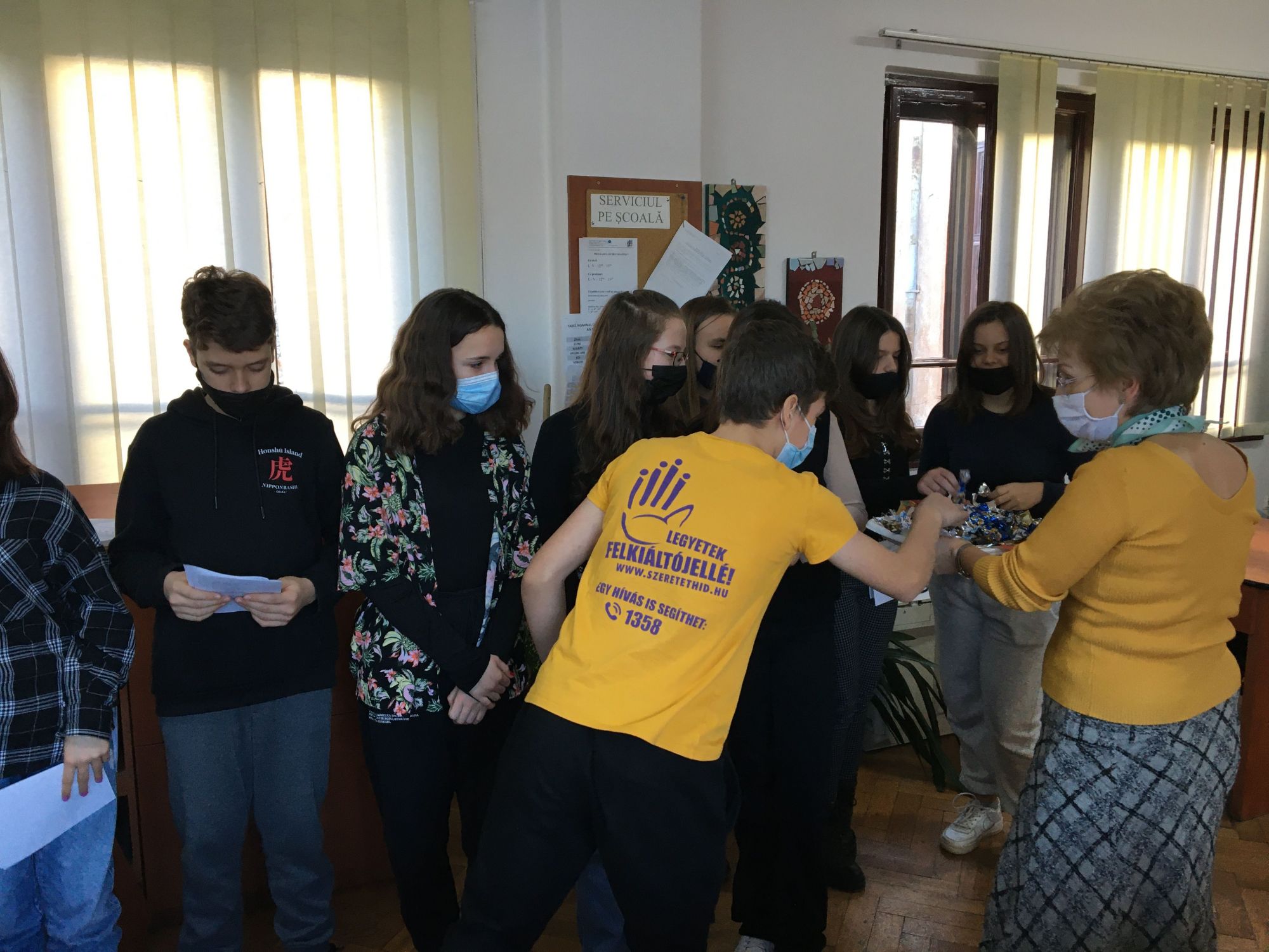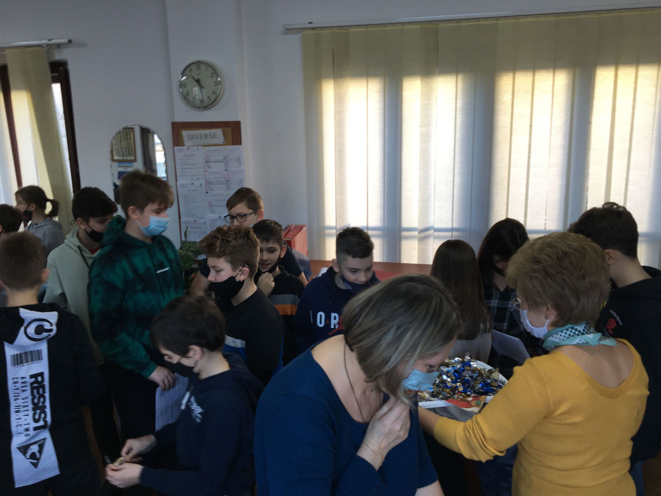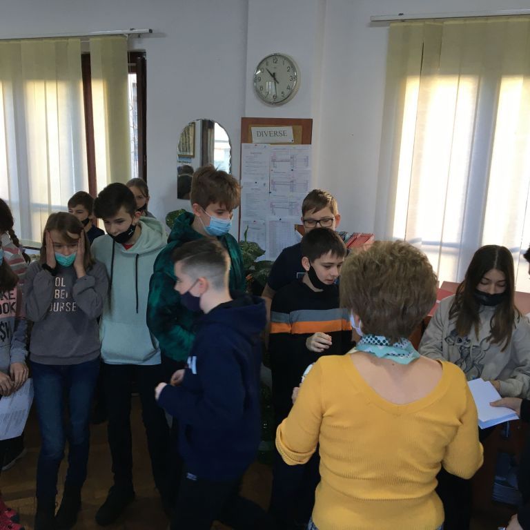 A 6.A-sok dalolásával kezdődött diákjaink karácsonyi köszöntése. Minden évben, a karácsonyi szünet előtt, az adys kis-és nagydiákok ezzel kedveskednek tanáraiknak, és előidézik a közelgő ünnep hangulatát is. A 6.A-sok karácsonyi éneklését Csepregi Imola tanárnő, osztályfőnök, készítette elő.