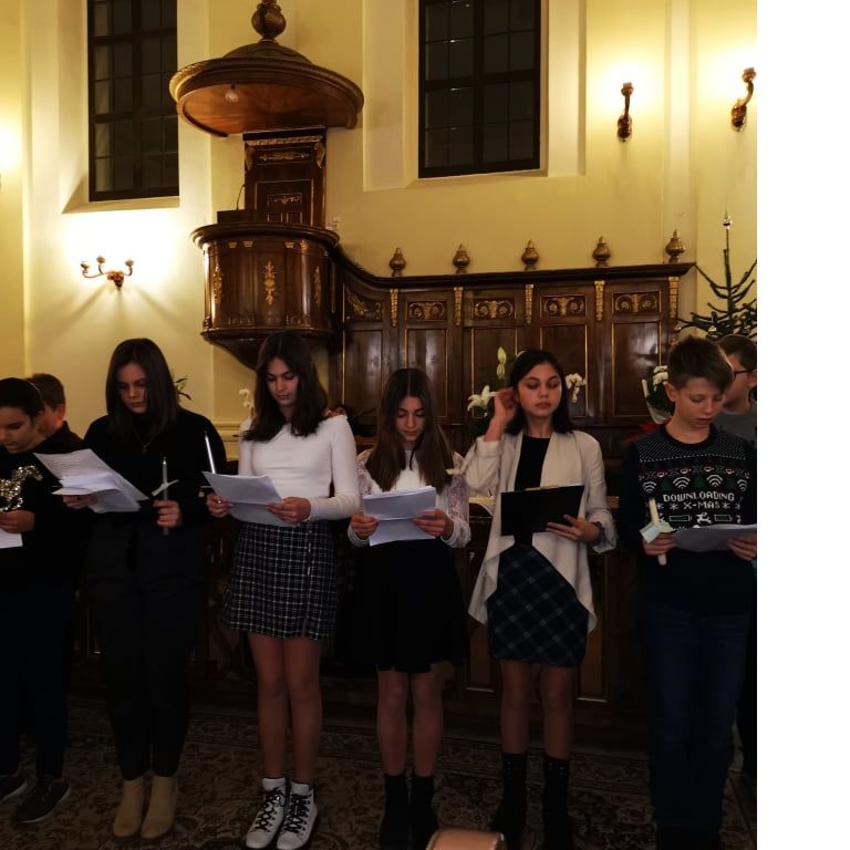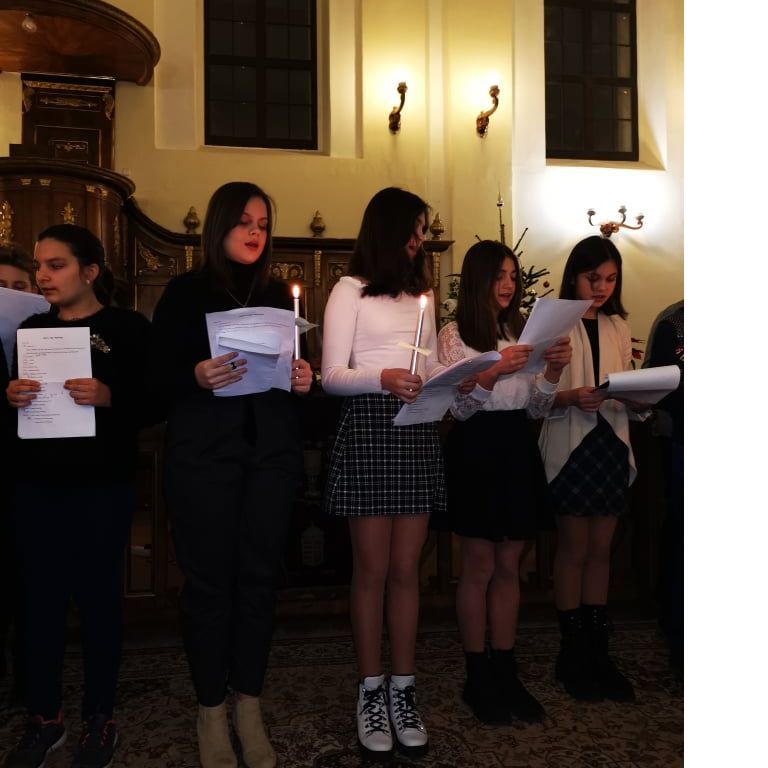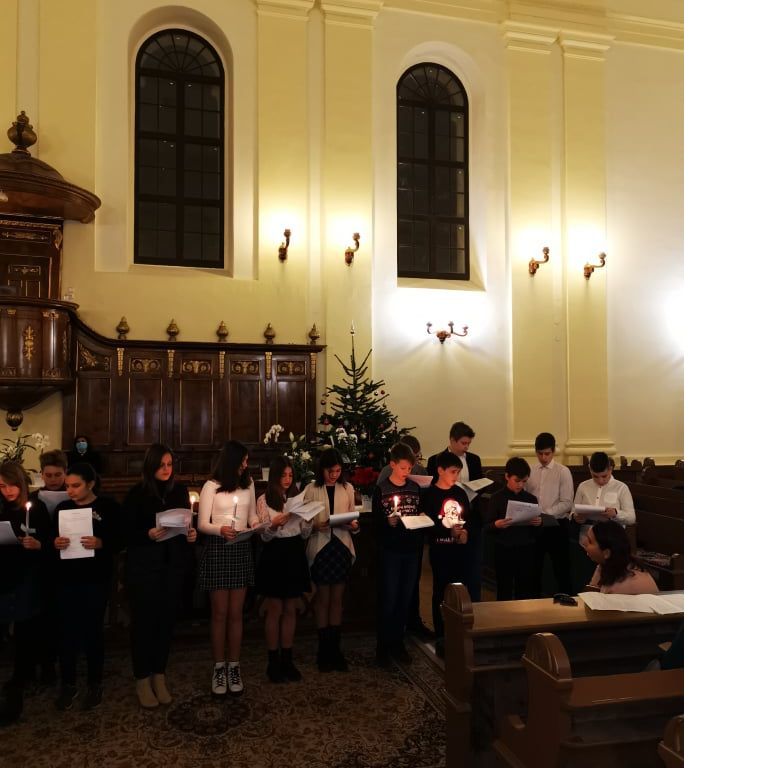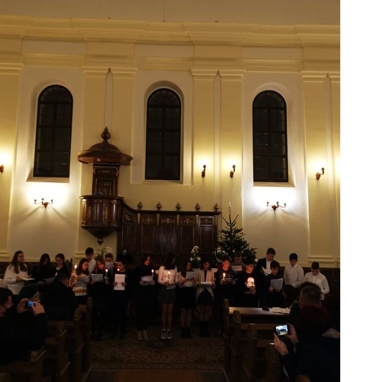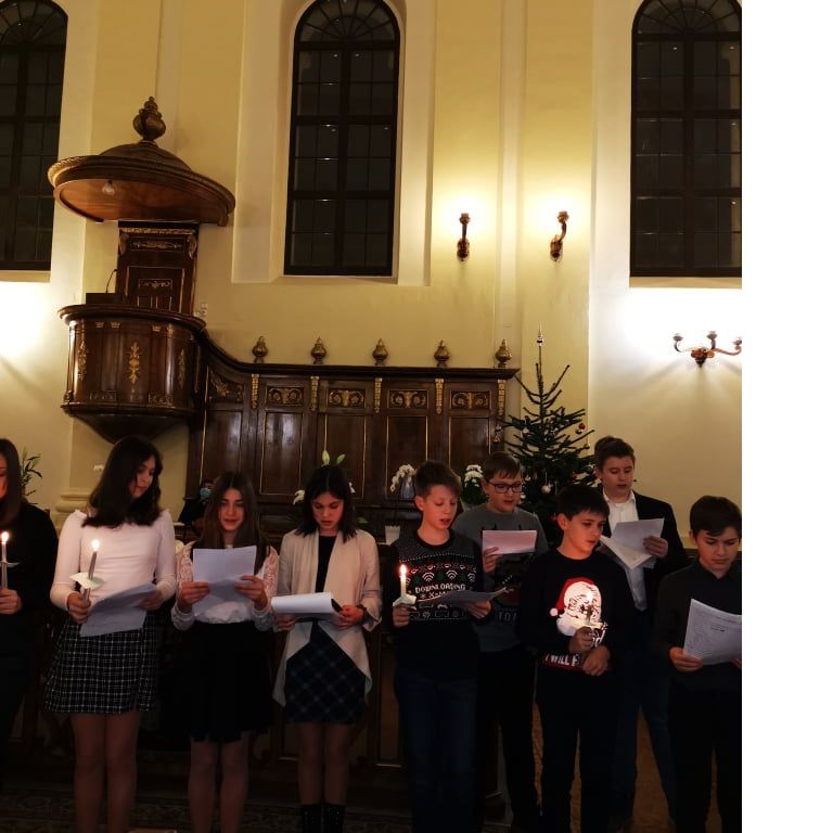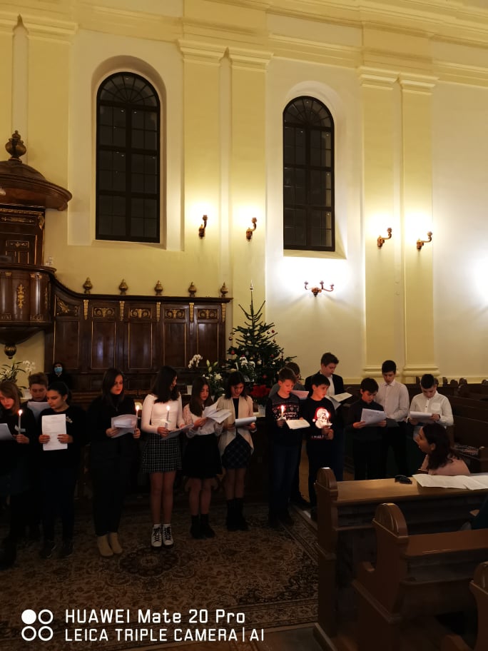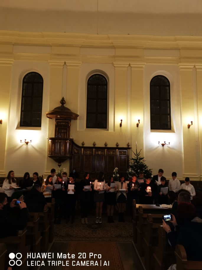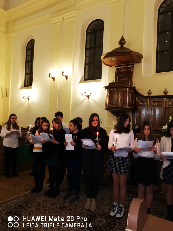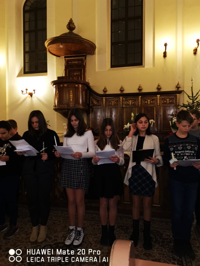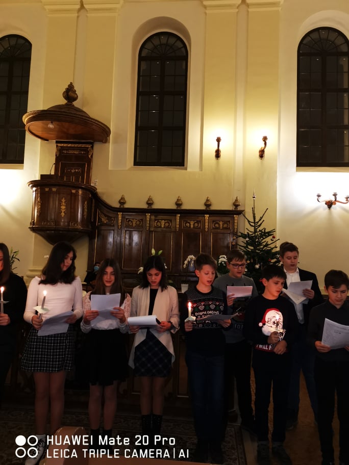 „Kelj fel, tündökölj, mert eljött világosságod, rád ragyogott az Úr dicsősége. Bár még sötétség borítja a földet, sűrű homály a nemzeteket, de fölötted ott ragyog az Úr, dicsősége meglátszik rajtad.” (Ézsaiás 60,1-2) – hangzott a gyermekek hitvallása december 21.-ének estéjén a Nagyvárad-Úvjárosi Református Templomban, mely otthont adott a 6.A osztály diák adventi műsorának. Hálásan köszönjük a gyülekezet lelkészeinek, akik lehetőséget biztosítottak az együtt ünneplésre ezen az Adventen. A 6.A osztály diákjai örömmel, izgalommal telve, hálás szívvel tettek bizonyságot a várakozás csodájáról , amire sajnos tavaly nem volt lehetőségük a járványhelyzet miatt. Nagy öröm, hogy ez megvalósulhatott.