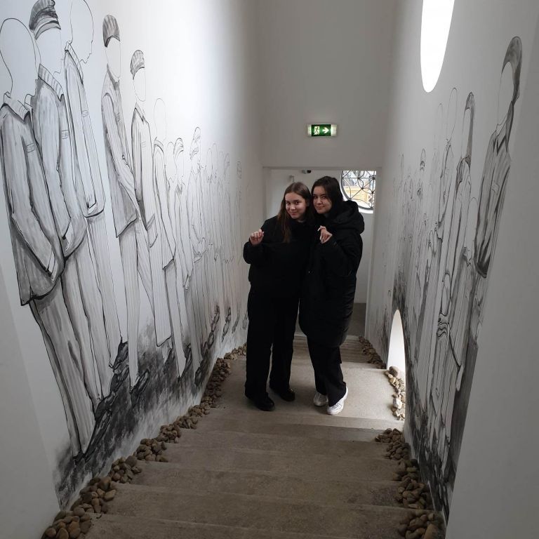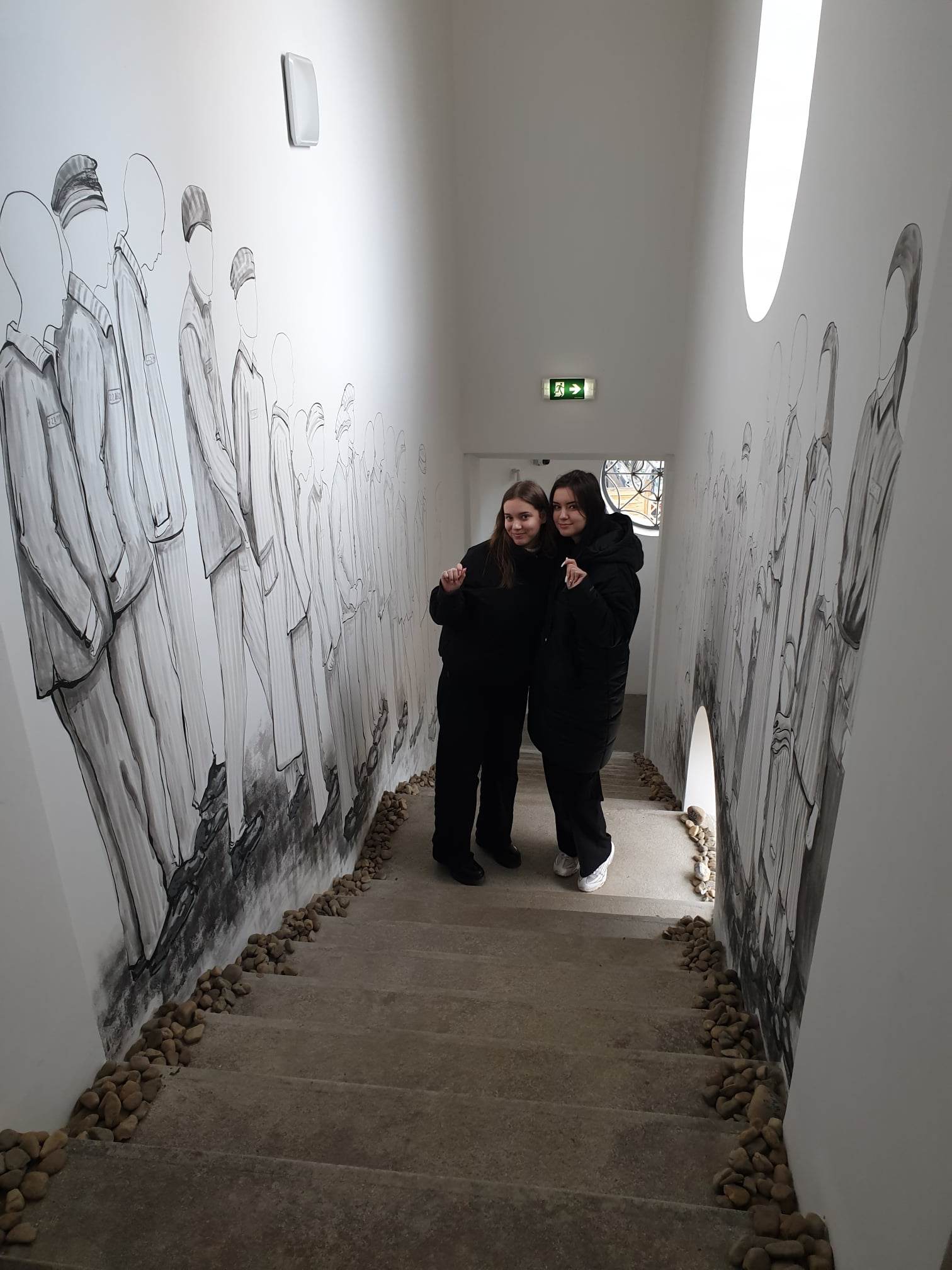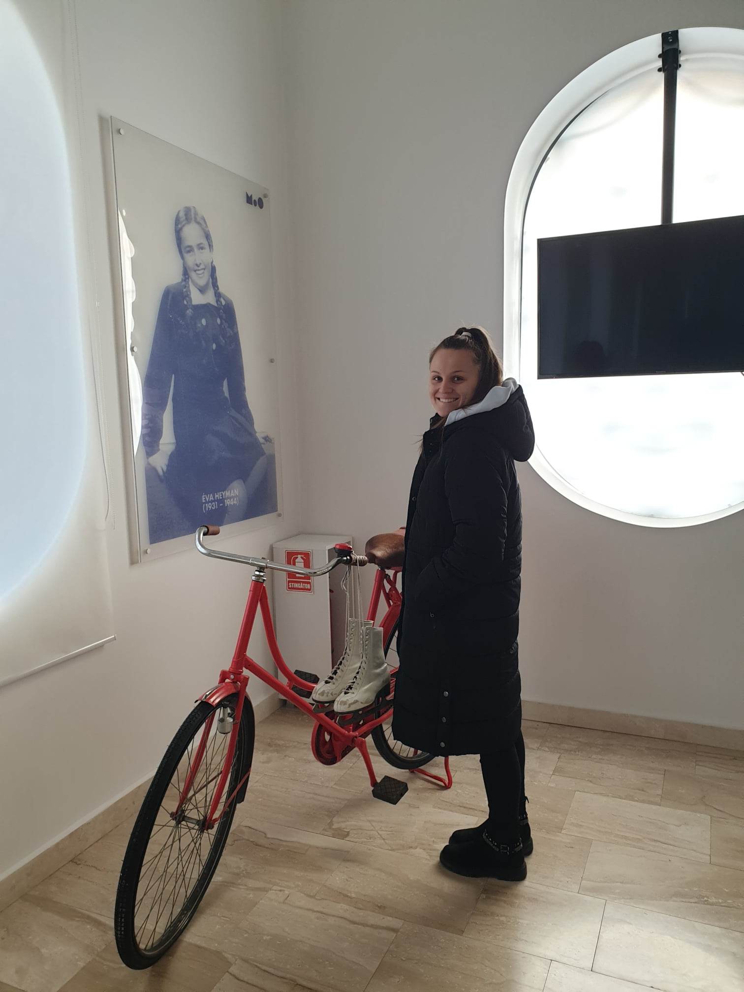 Az emeleten, közvetlenül a lépcsősor melletti falakra a holokausztban elpusztult zsidók nevei vannak felírva, ugyanakkor egy interaktív kijelzőn is olvashatók az áldozatok nevei. A tárlókban különböző dokumentumok, fényképek láthatók ebből az időszakból, az emeleti rész egyik sarkában pedig Heyman Évát idézik meg fényképekkel, a naplójából vett idézetekkel, valamint egy, a naplóban említett piros bicikli kiállításával. A szépen berendezett, átgondolt tárlat egyetlen szépséghibája az, hogy pannók magyar nyelvű szövegeiben sok zavaró helyesírási és nyelvhelyességi hiba van.