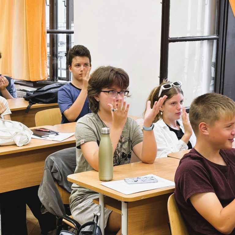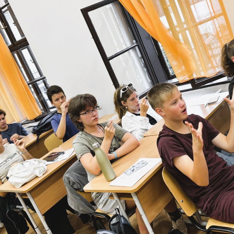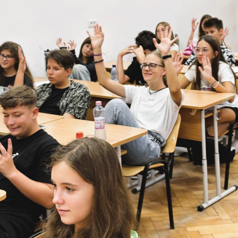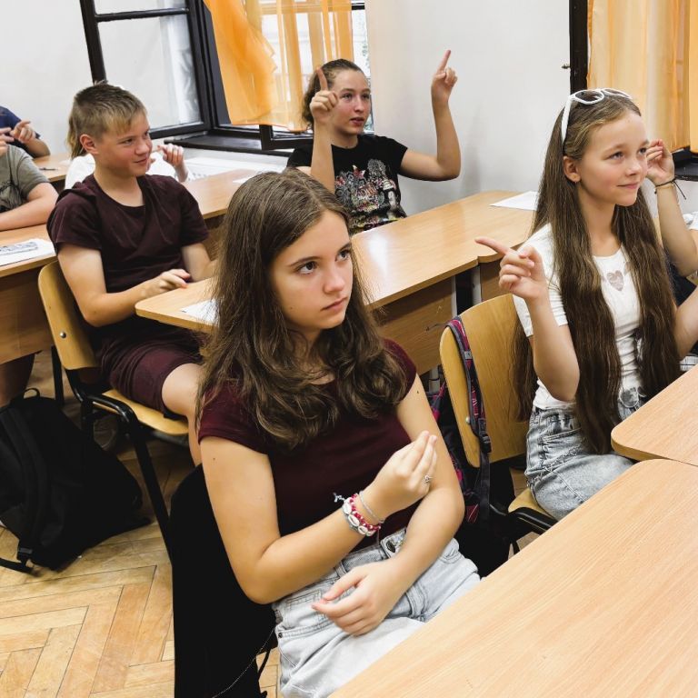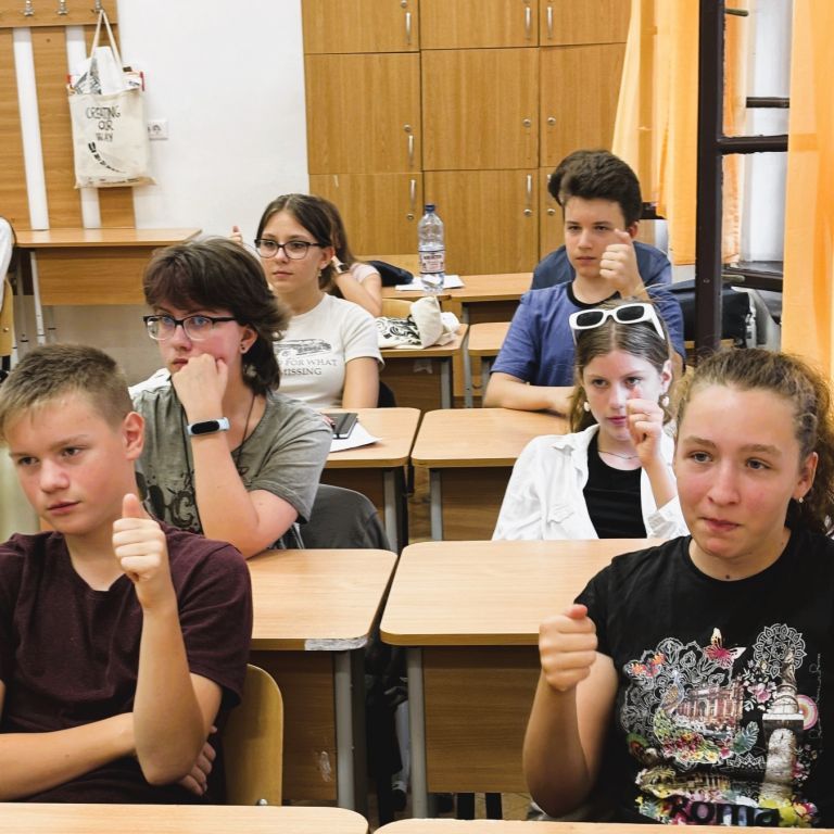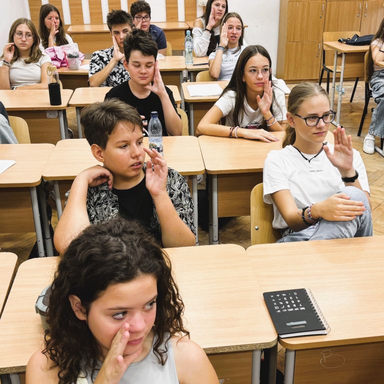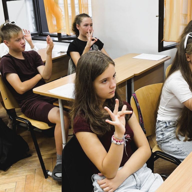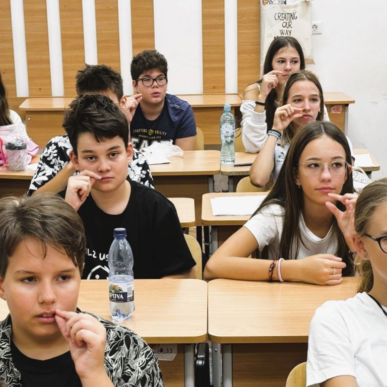 În data de 10.09.2024 l-am avut invitat la clasa a VII-a B pe artistul și formatorul surd Remus Ilisie care i-a învățat pe elevi câteva lucruri legate de cultura surzilor, de limbajul mimico-gestual și de dactileme. Copiii au învățat diferite formule de salut, precum „Bună dimineața!”, „Bună ziua!”, „Bună seara!” și „Noapte bună!”, cum să indice în limbaj gestual gradele de rudenie (mama, tata, bunic, bunică, frate, soră, fiică, fiu), anotimpurile, zilele săptămânii și cum să își spună numele folosind dactilemele.