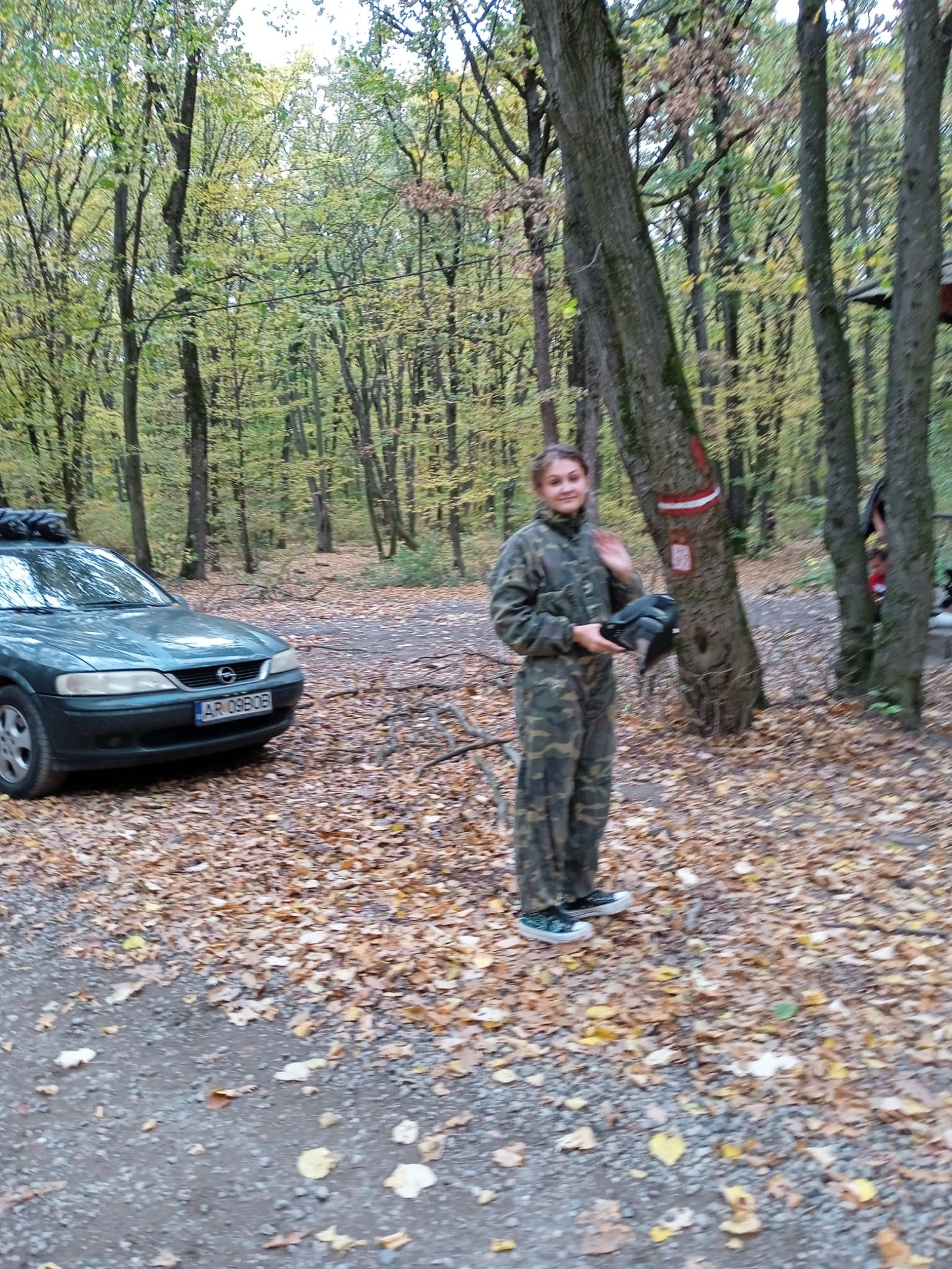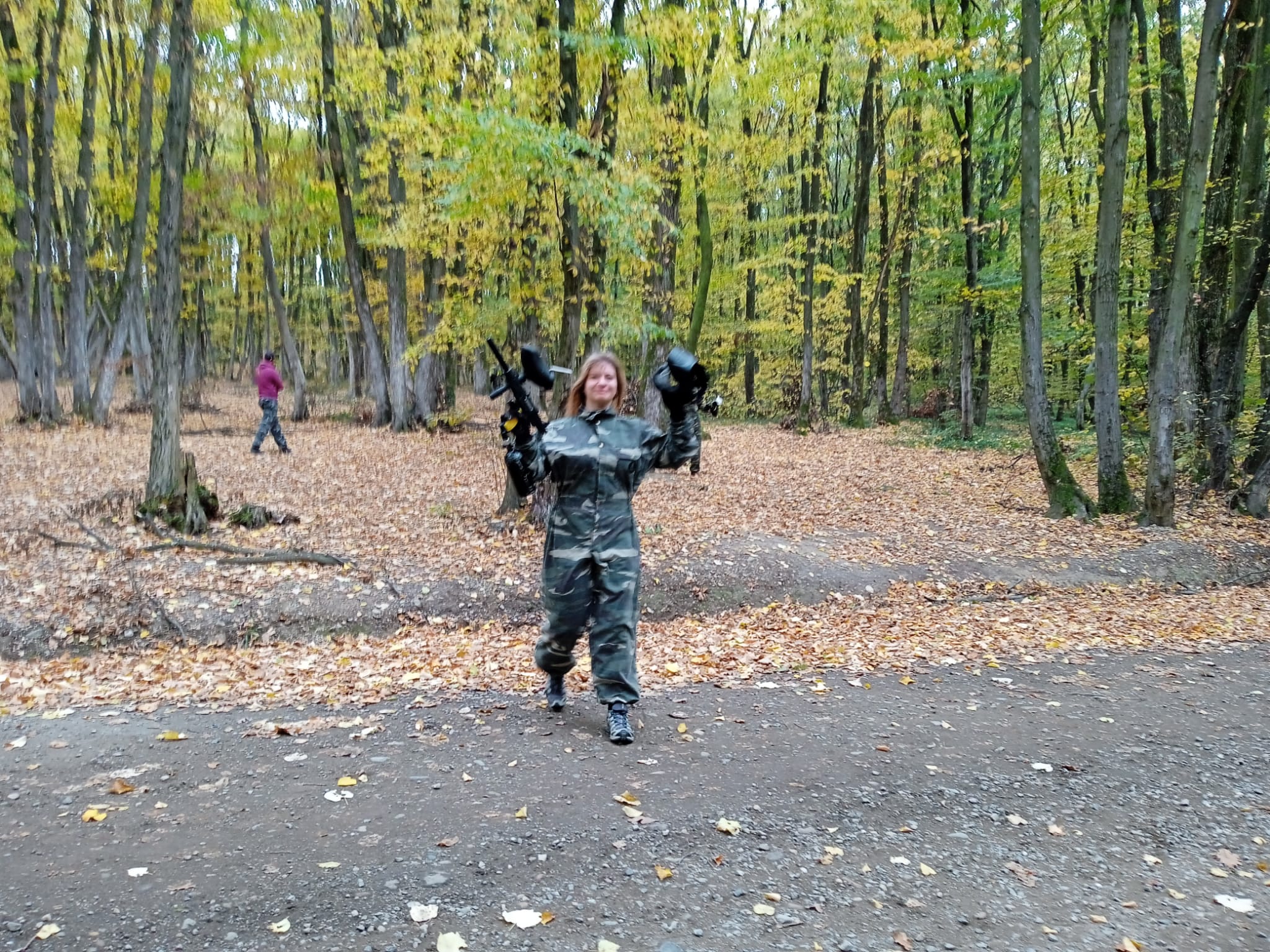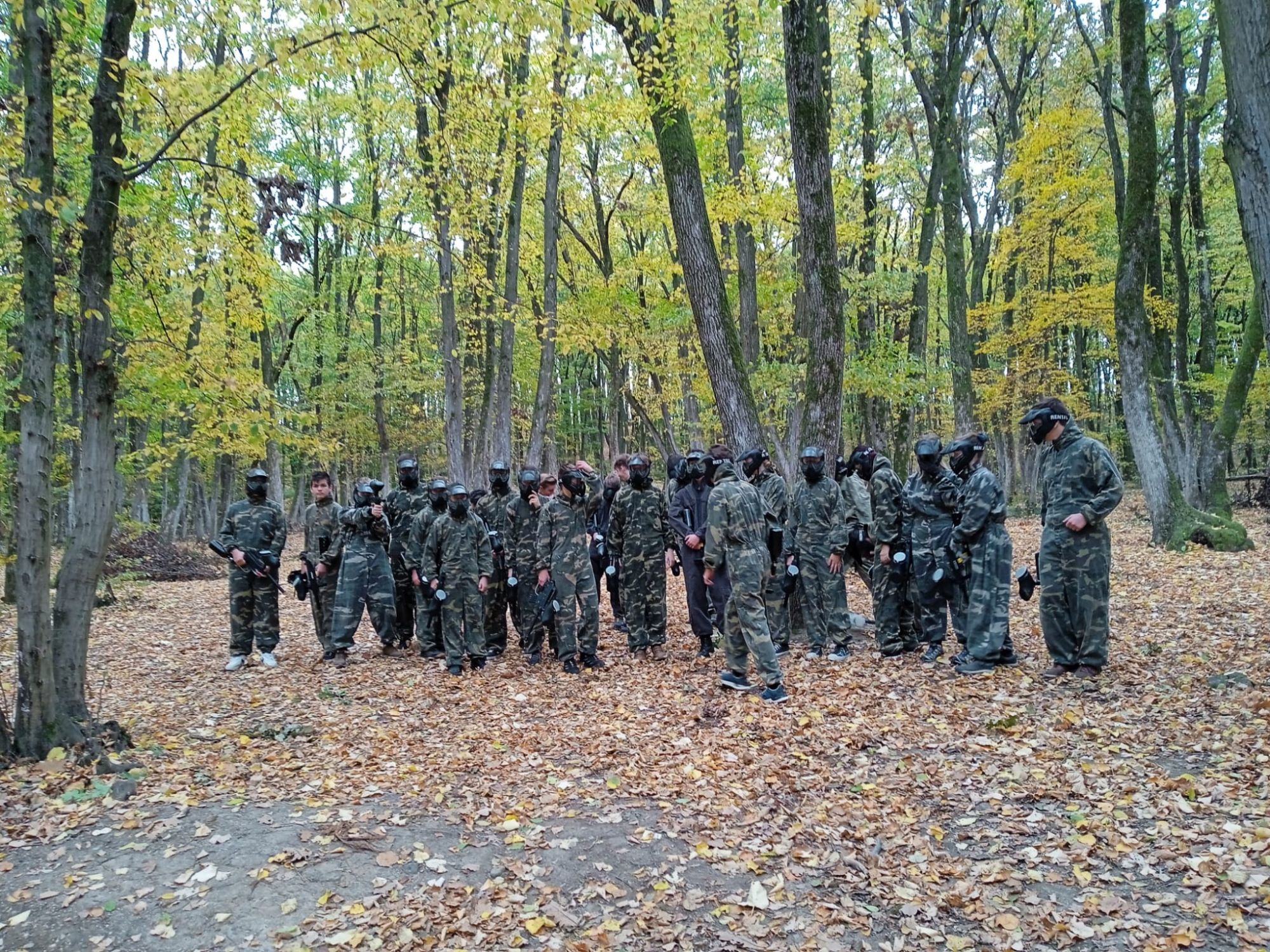 Az erdőbe érve a feszültség levezetéseként, illetve az agresszív viselkedés megelőzése érdekében kipróbáltuk a paintballt.